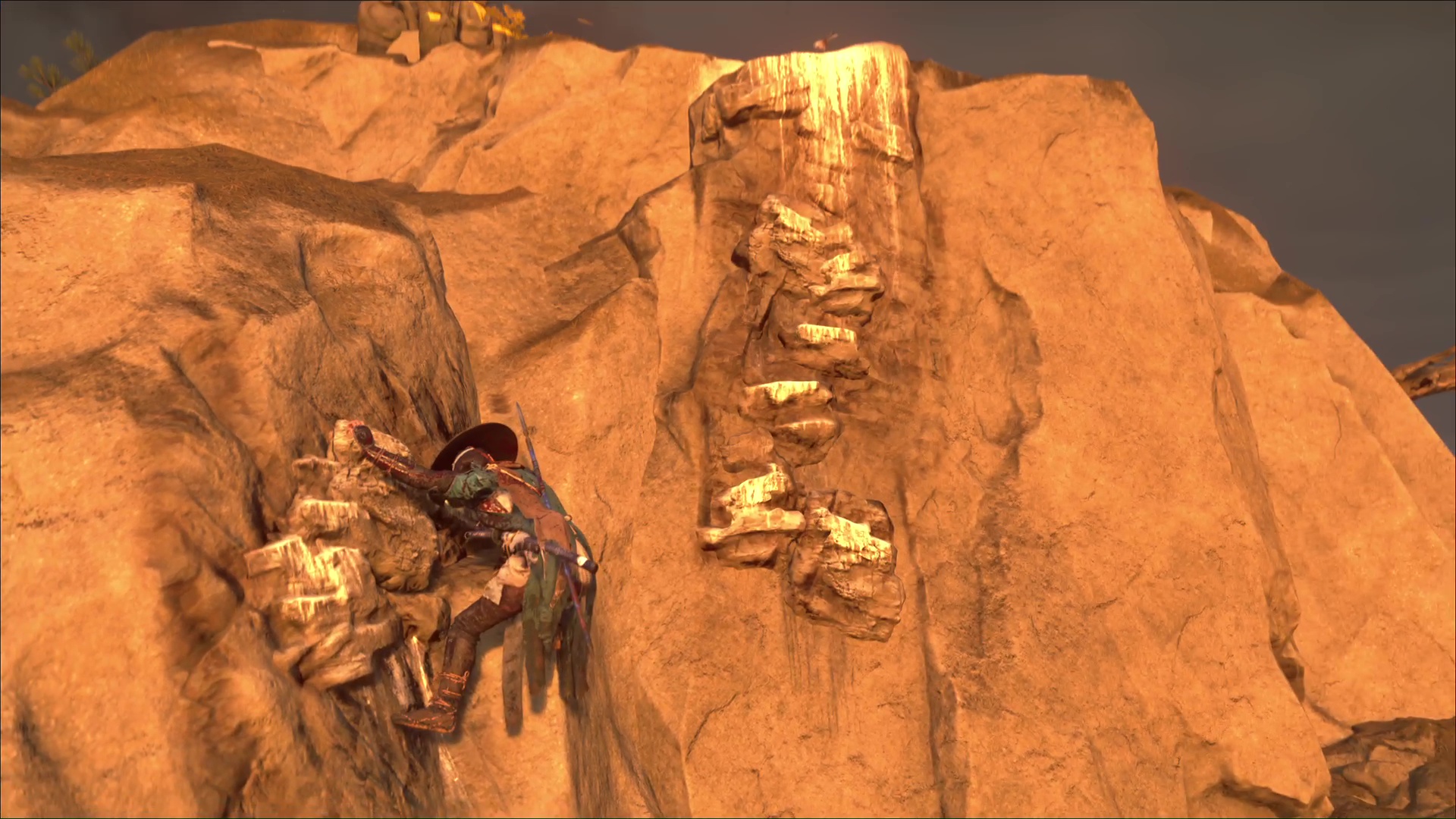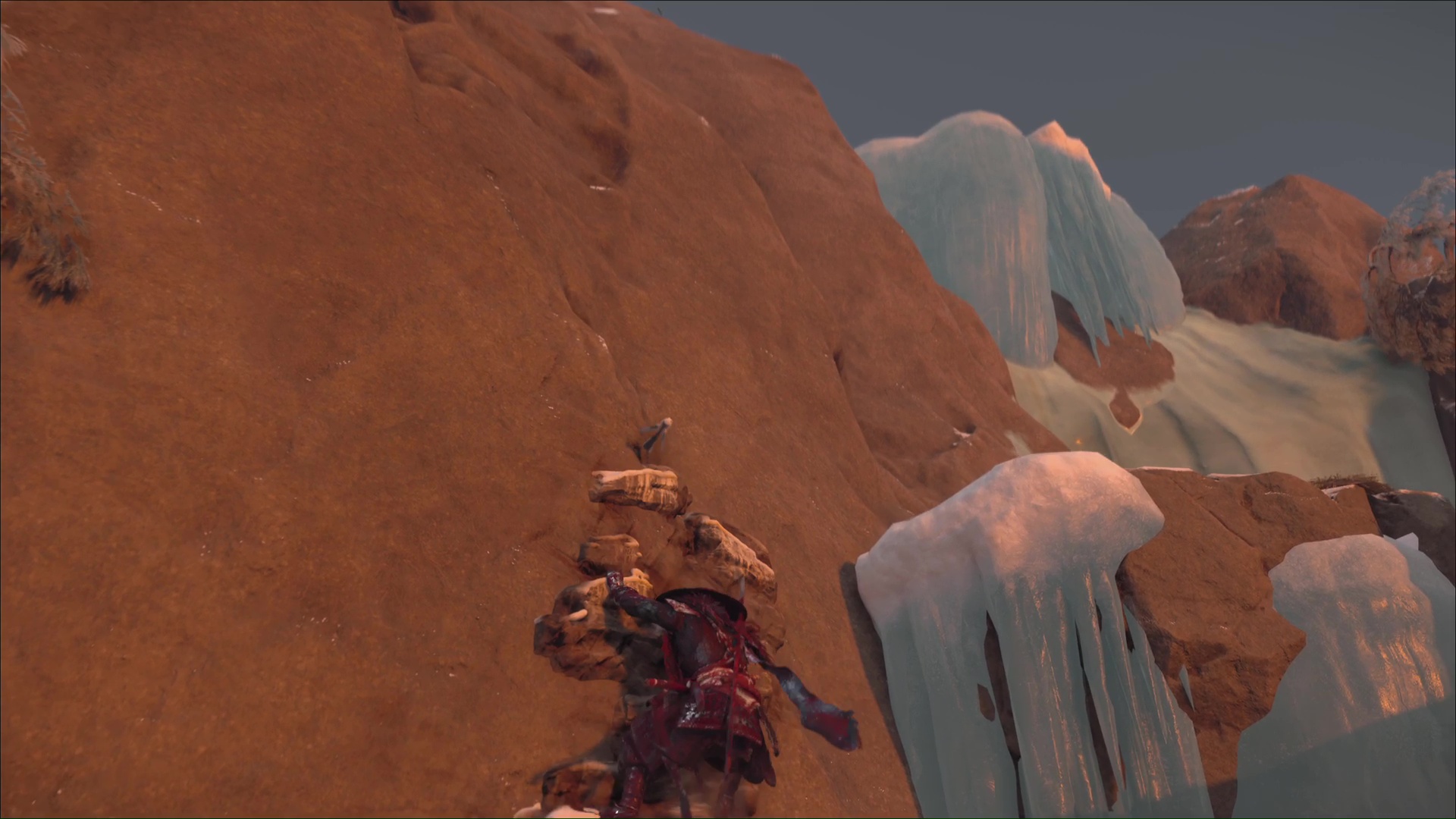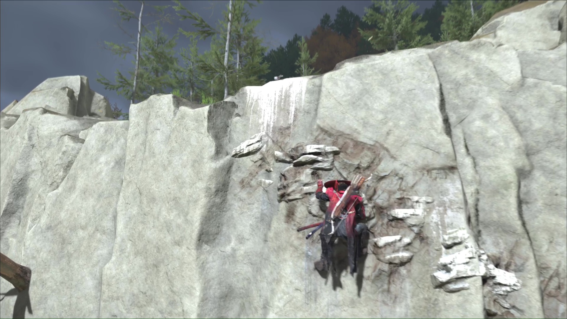 Une fois à l’extérieur, retournez-vous et remarquez les prises rocheuses près d’un feu. Montez par ici. Poursuivez votre escalade pour finir par vous hisser au niveau de l’autel, situé en bord de falaise.