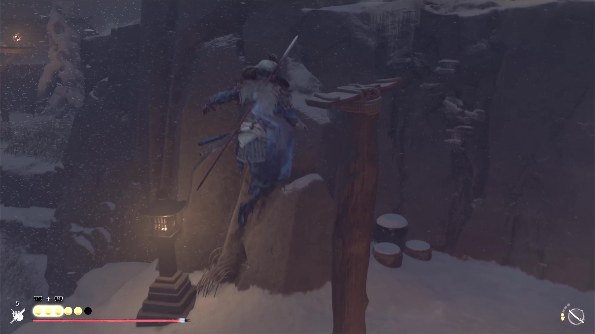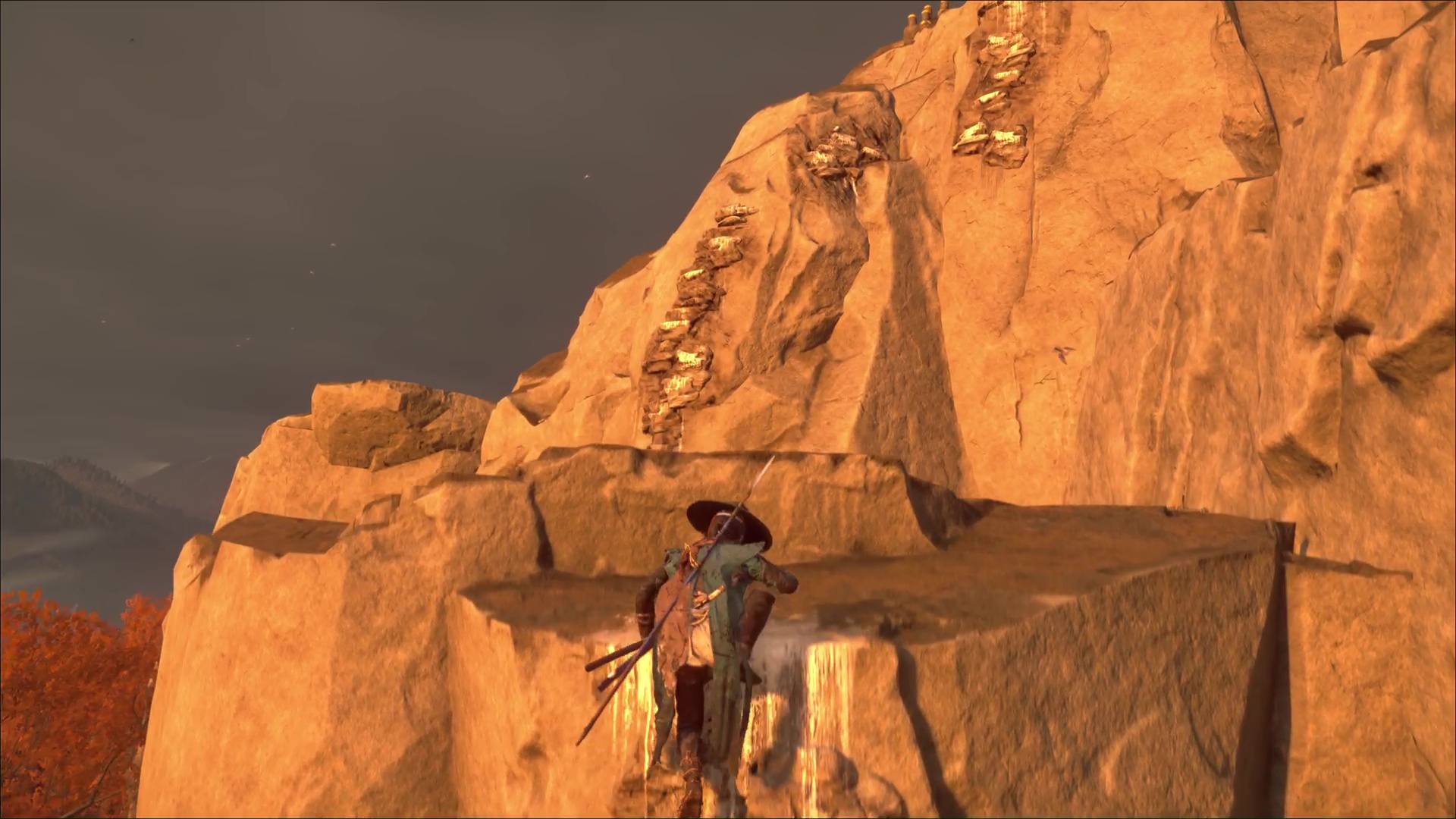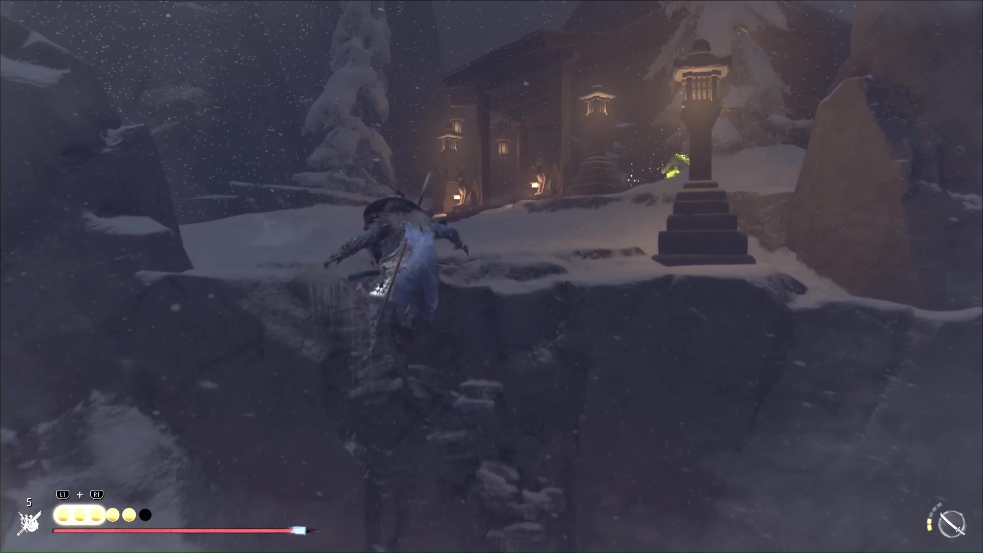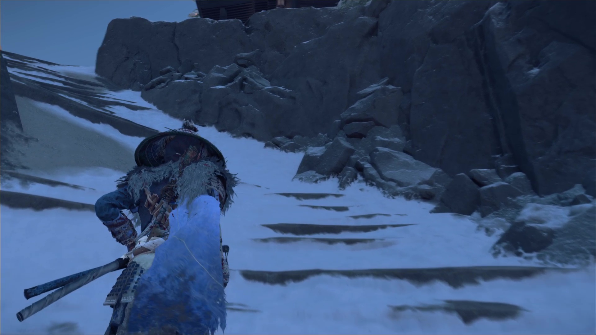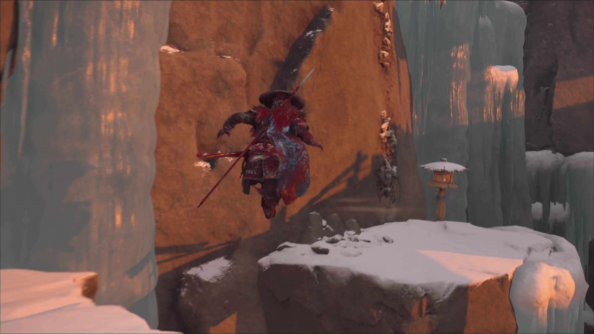 Au bout de quelques instants, un ronin se présente et se plaint d’avoir été réveillé. Après quelques échanges, la conversation se termine. Redescendez grâce aux prises situées juste sous vos pieds.