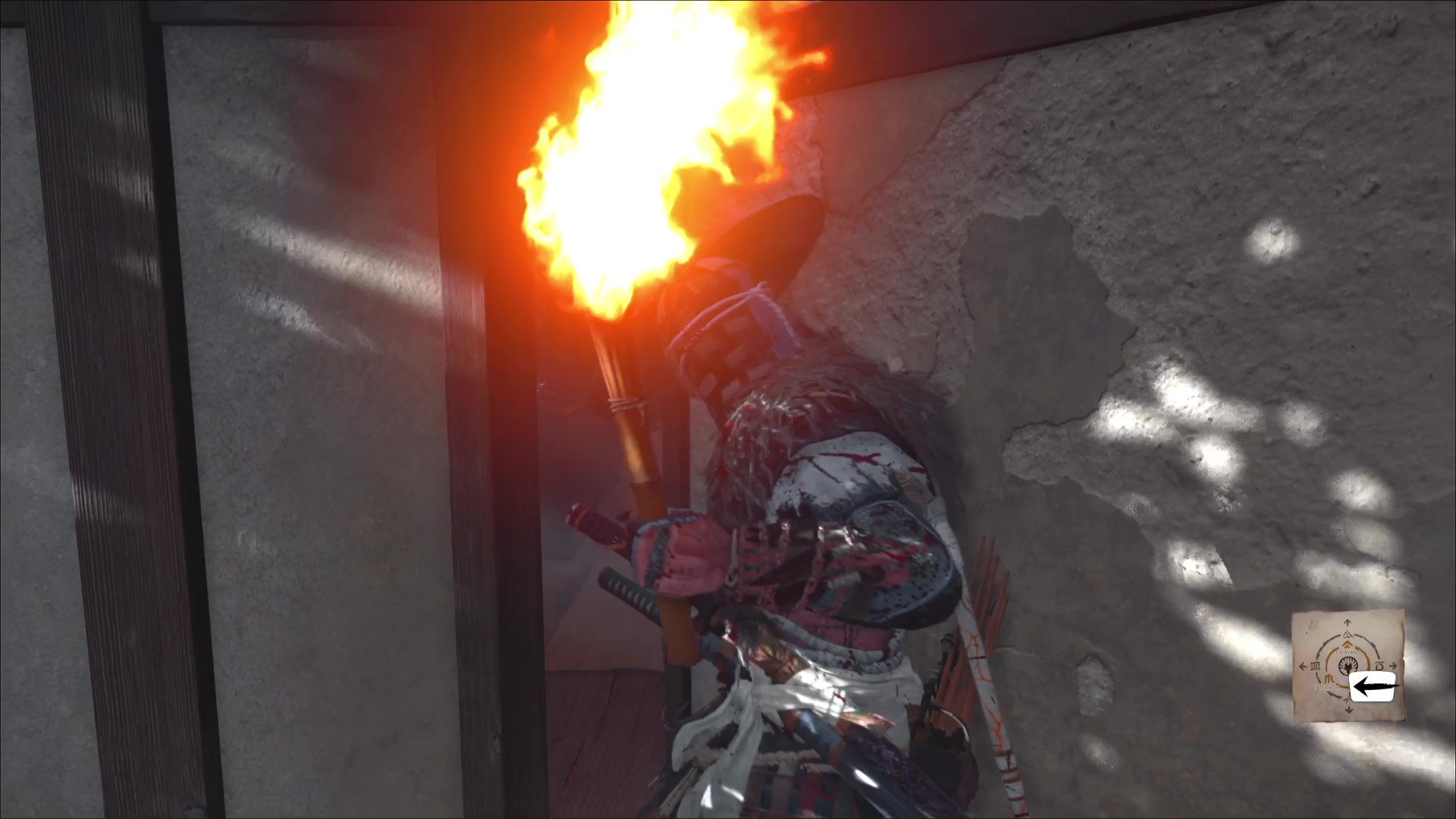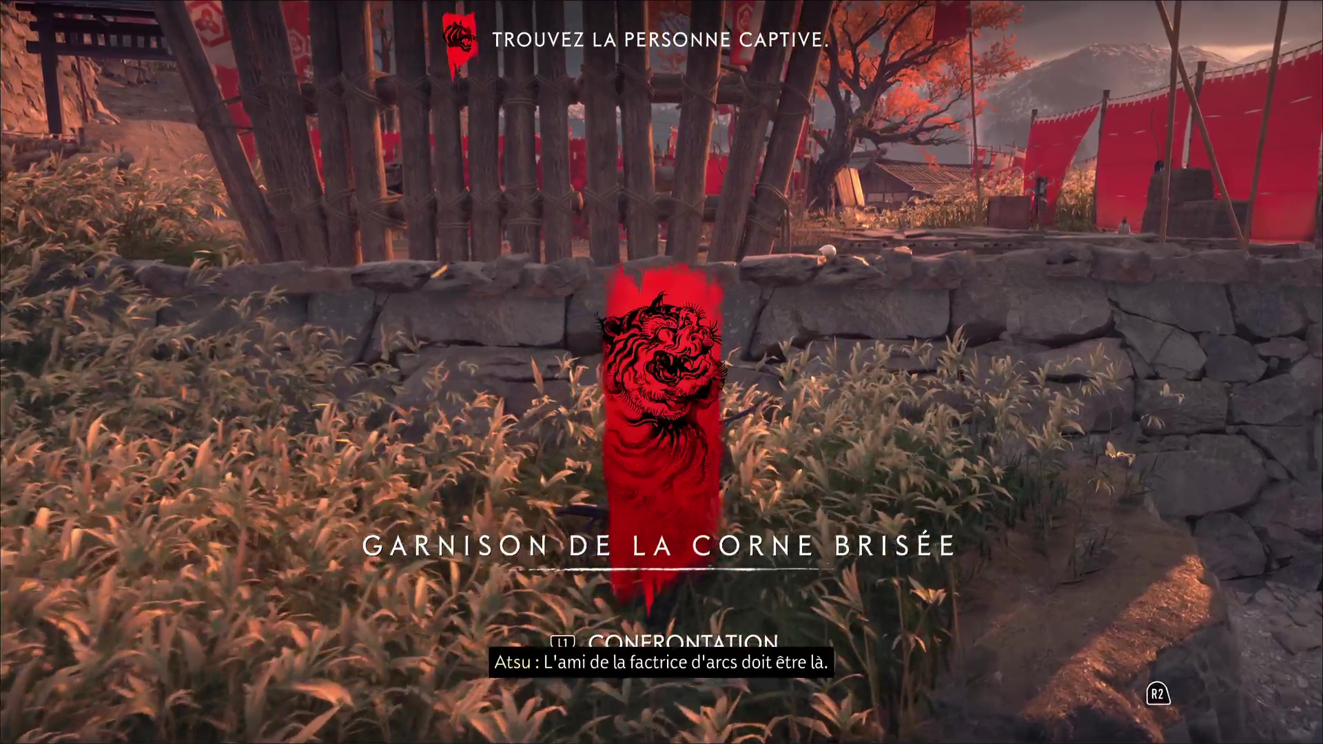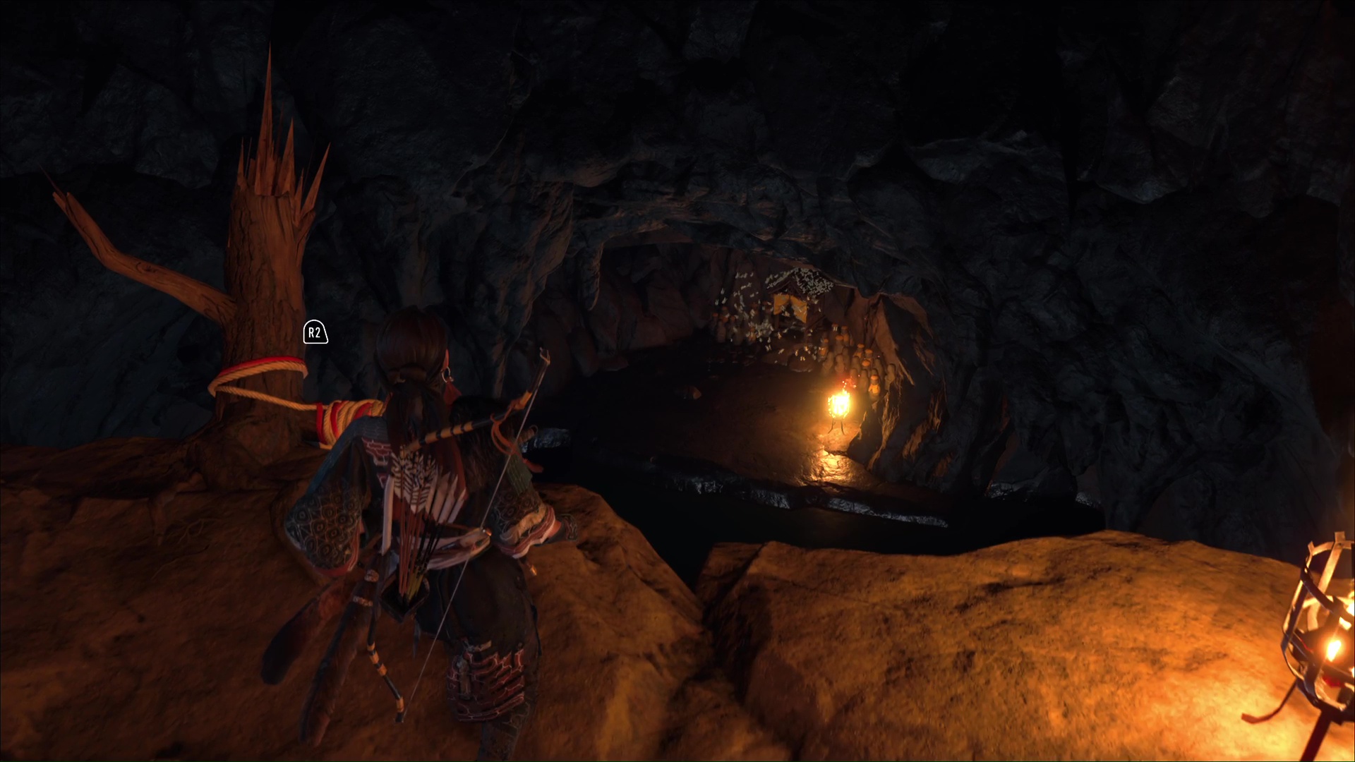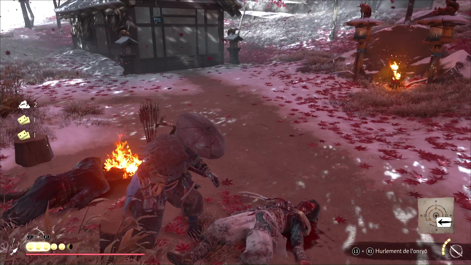 Outre les ennemis à tuer, vous aurez aussi à illuminer des lanternes de renard pour progresser. Dans la première et la deuxième partie du camp, la torche et la lanterne à allumer se trouveront à gauche du pont brisé, lorsque vous lui faites face.