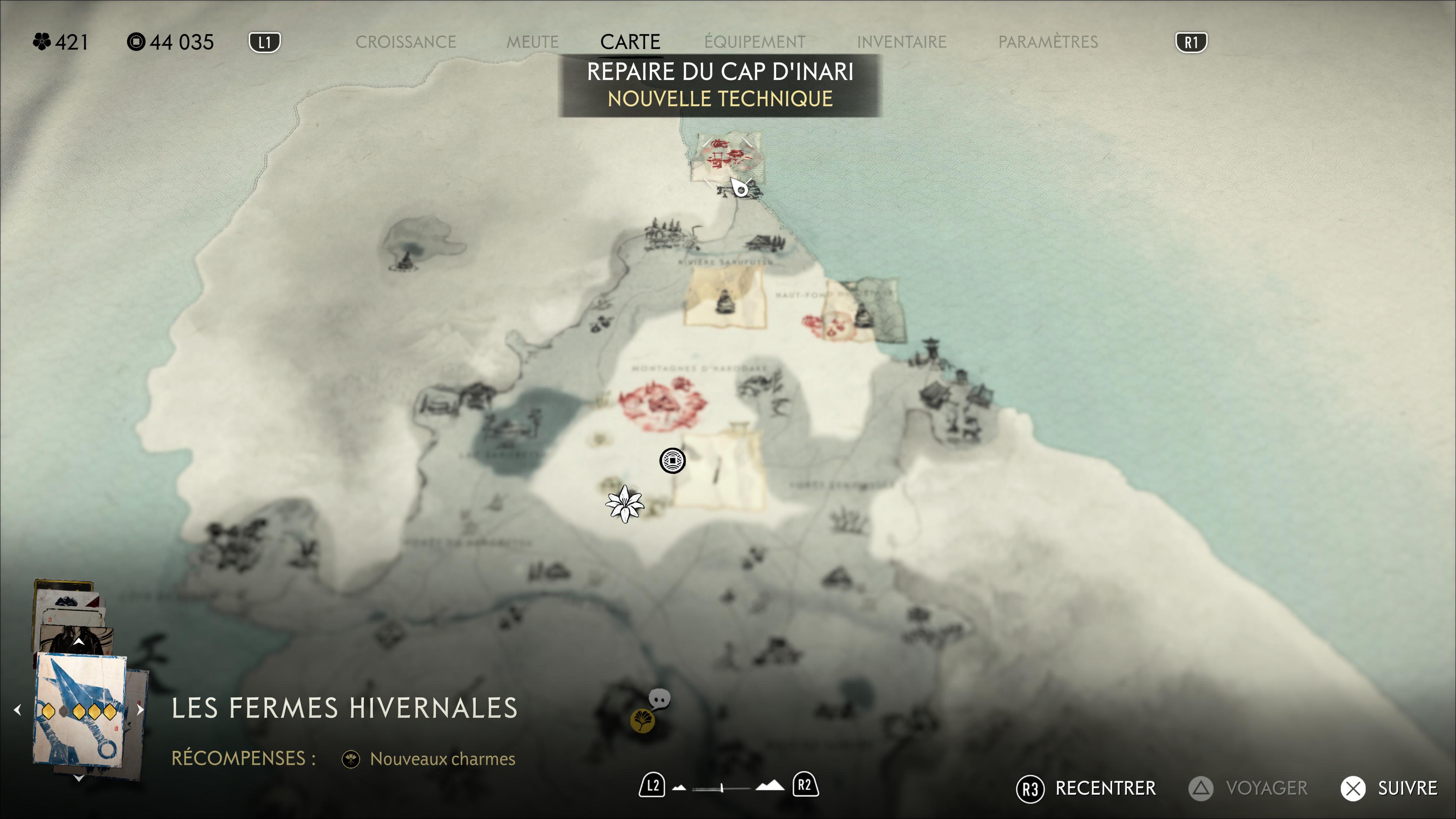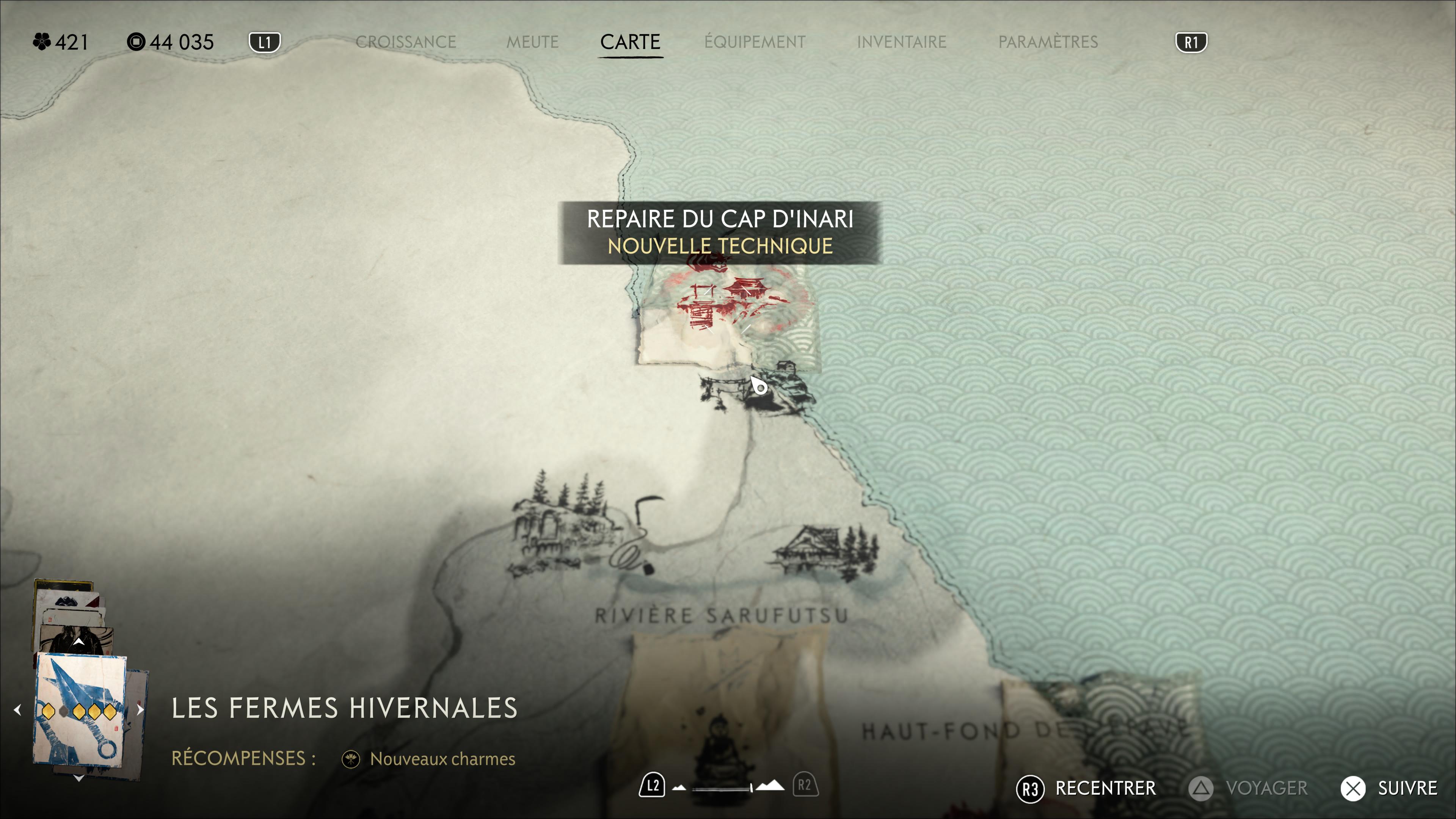Direction l’extrême-nord de la Crête de Teshio pour rejoindre le Sanctuaire du cap d’Inari puis le Repaire du cap d’Inari. À l’intérieur du repaire, avancez en éliminant tout le monde.