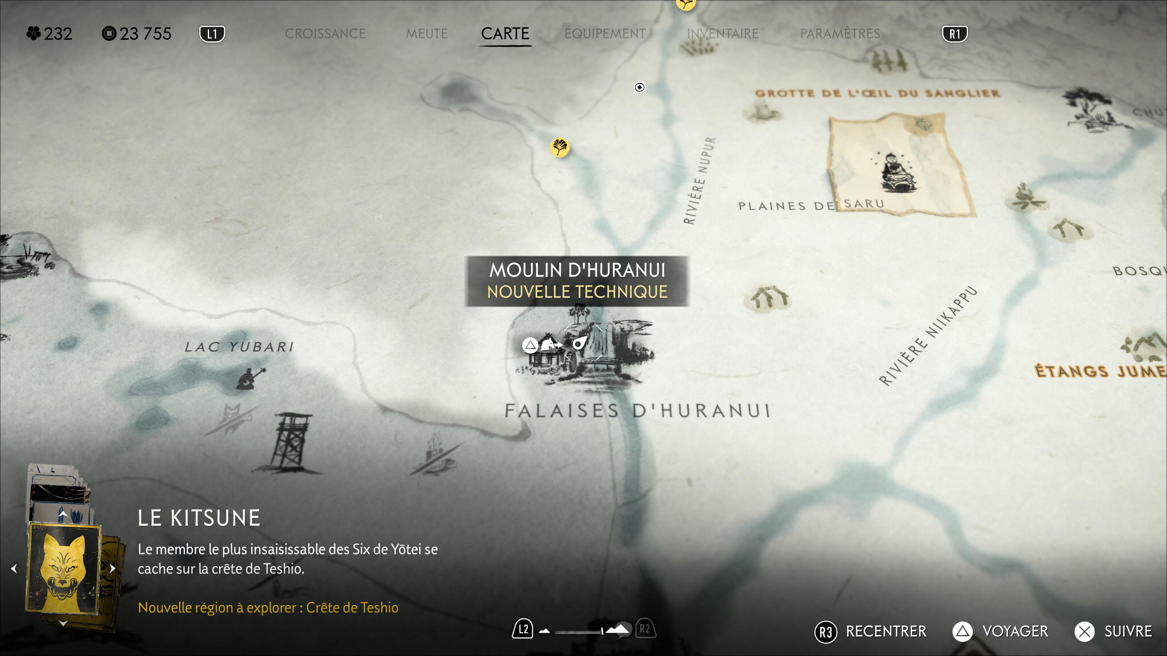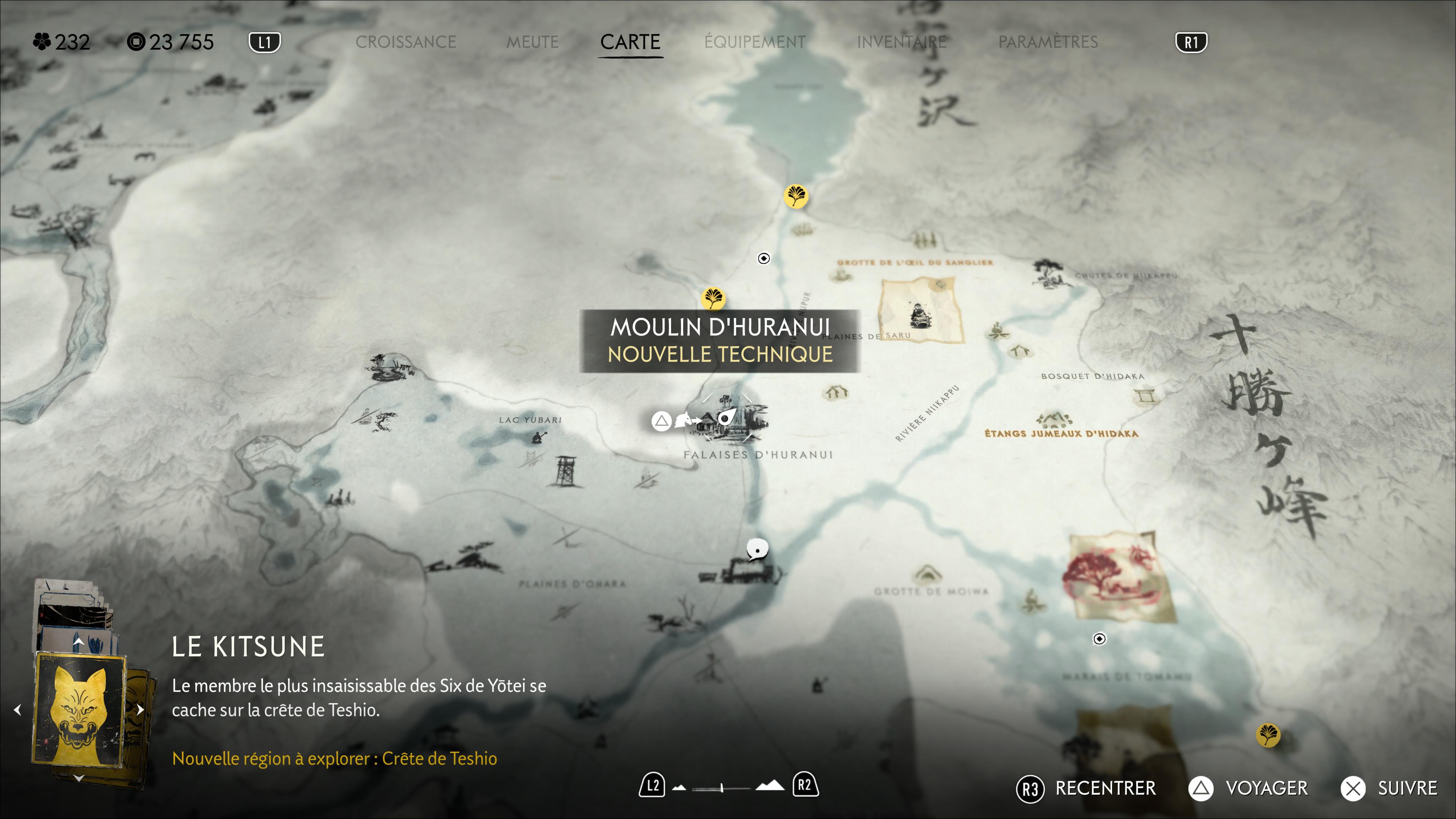 Vers le centre-nord des Monts Tokachi, vous pourrez rejoindre le Moulin d’Huranui, dans la zone des Falaises d’Huranui. Libérez le moulin en capturant Inokichi l’Insatiable et en tuant tous ses soldats.