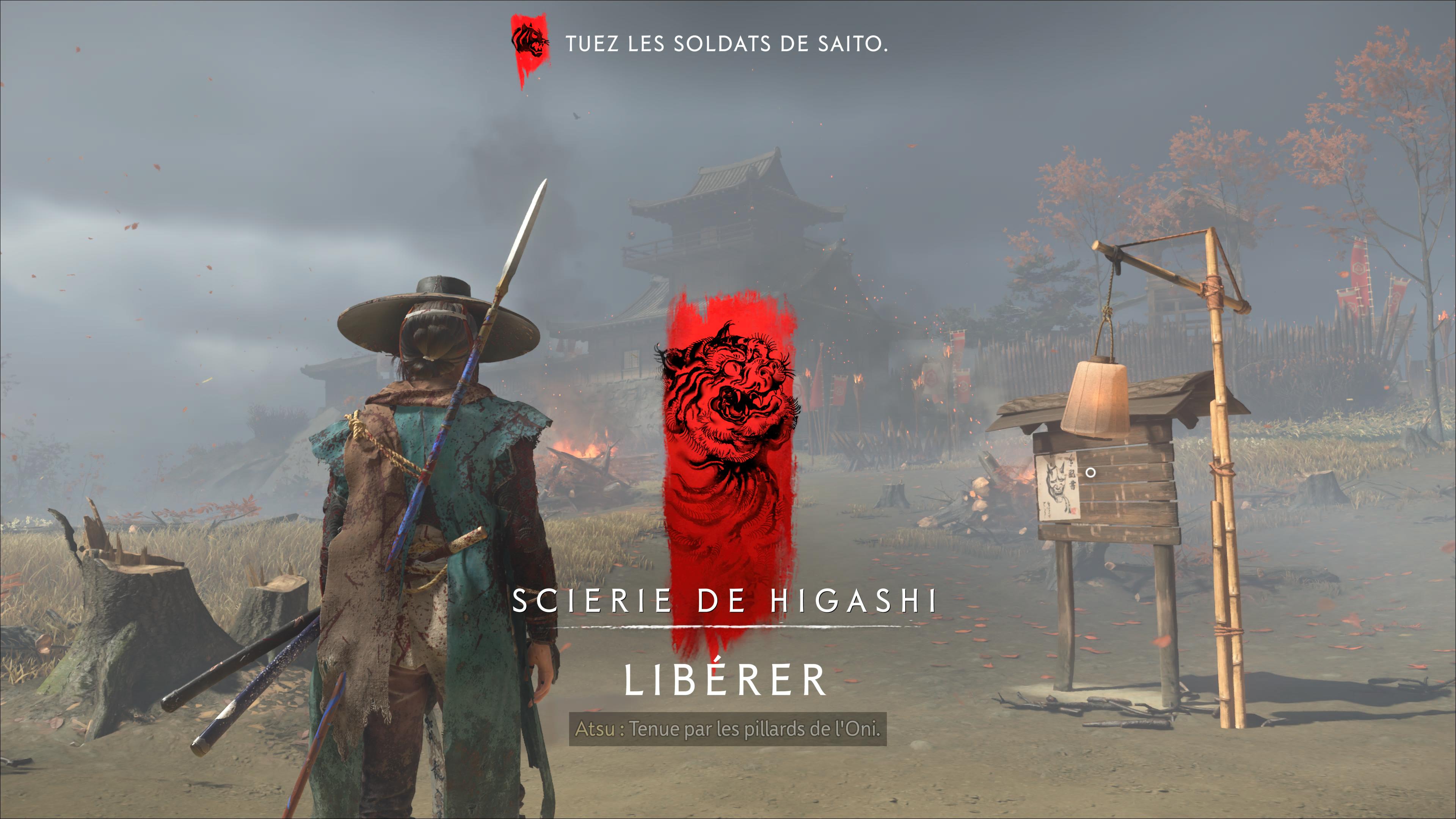 Rendez-vous à l’est de la Côte d’Oshima, au bord de la rive droite de la Rivière Oyobe, pour localiser l’Avant-poste d’artillerie de Saito. Tuez l’intégralité des soldats de Saito afin de libérer le camp et être amené directement à l’autel de réflexion.