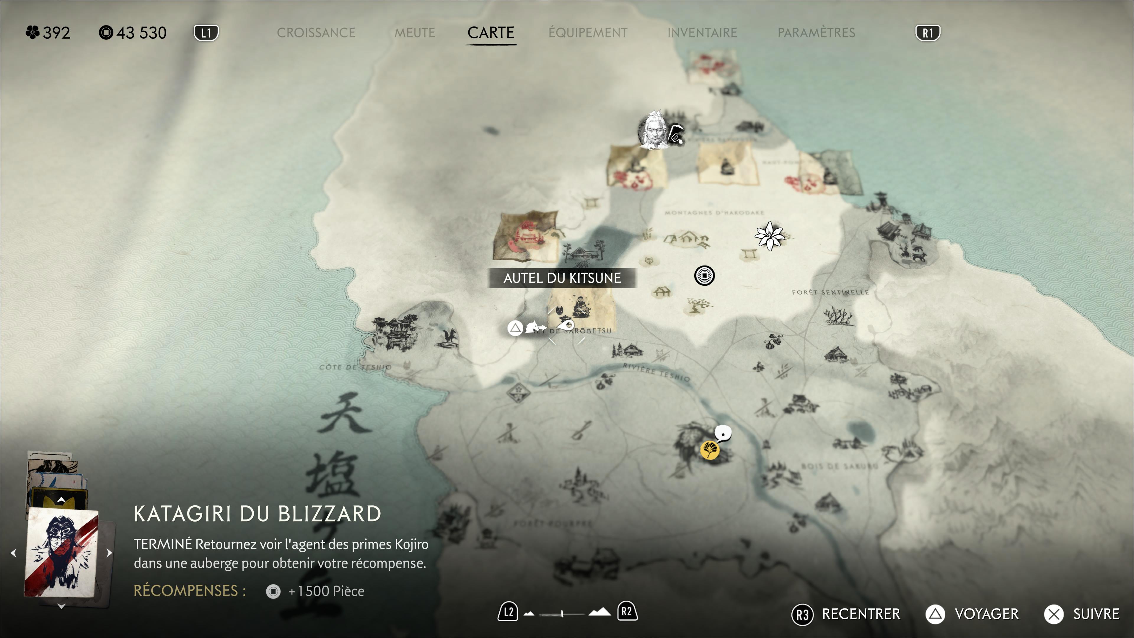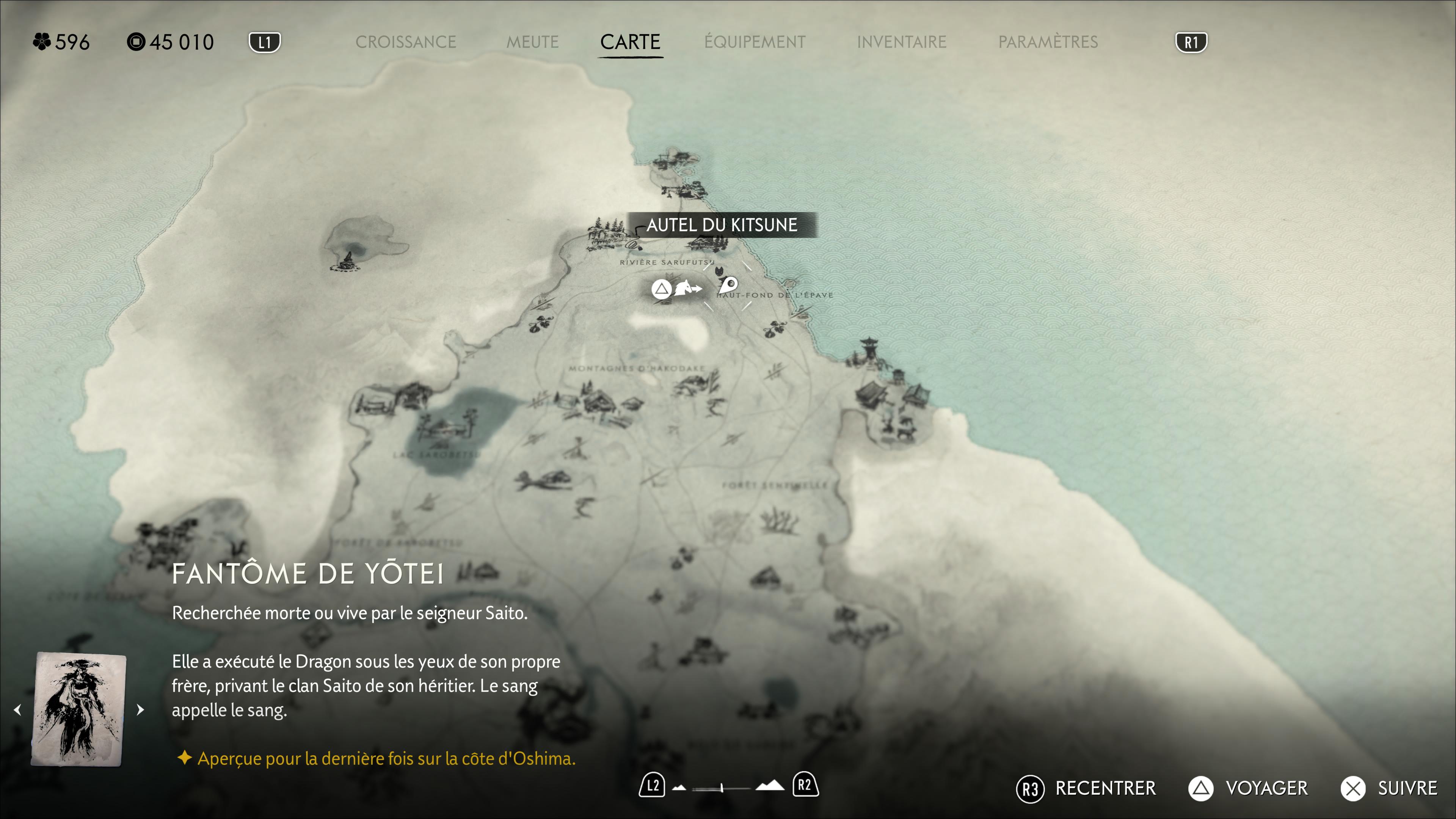 Bien que l’on retrouve les collectibles de Ghost of Yōtei dans chacune des régions, les boîtes casse-têtes sont exclusives à la région de la Crête de Teshio. On les trouve dans 90% des cas soit au pied d’un autel de réflexion d’une zone occupée ou d’un repaire des Neufs-Queue, soit sur un Autel du Kitsune.