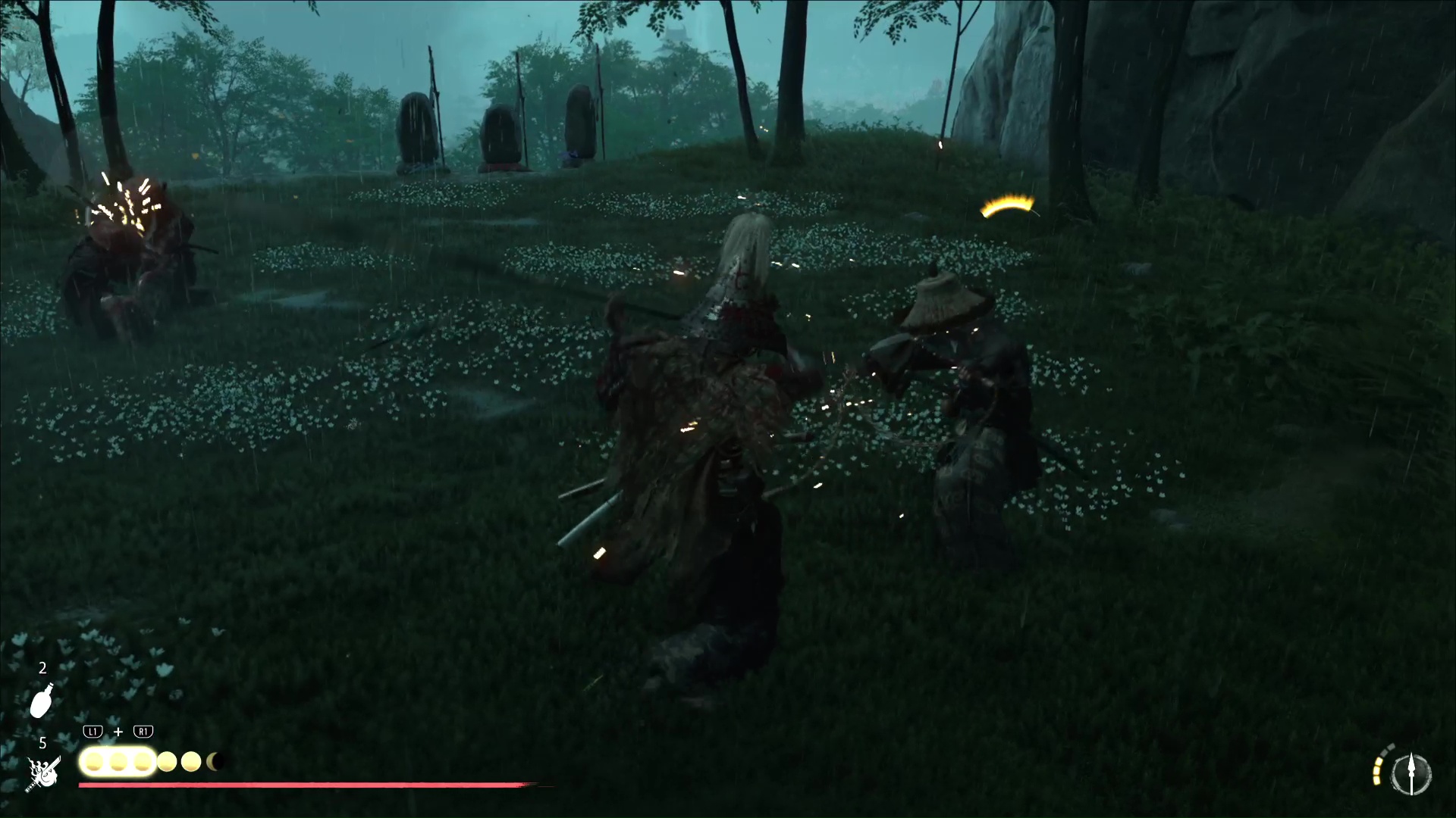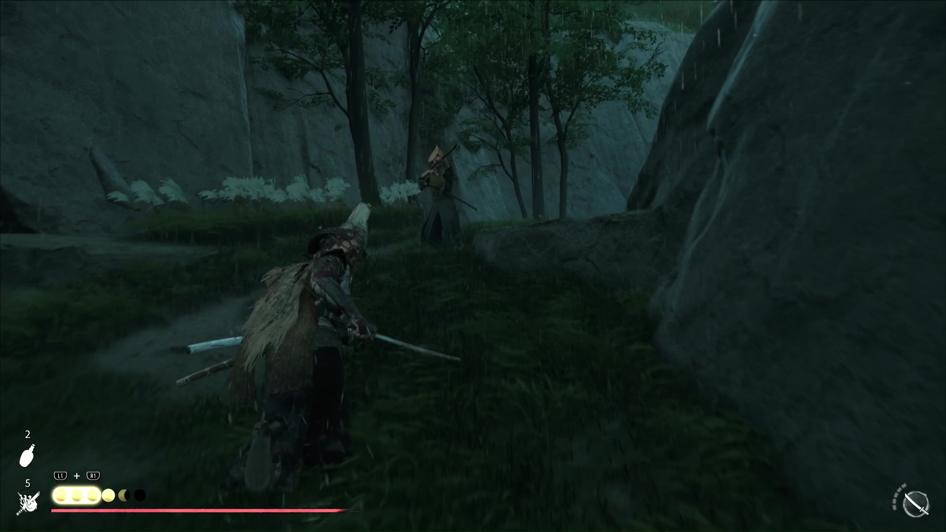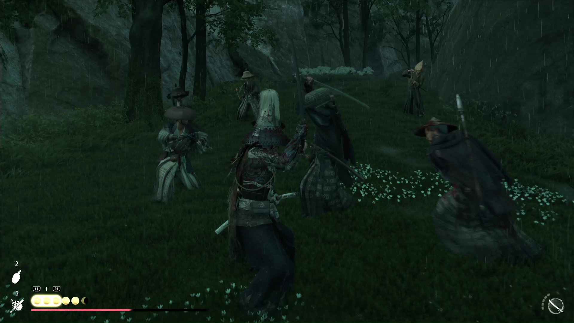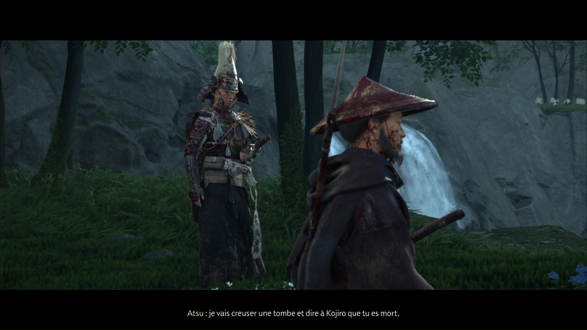 Progressez encore un peu pour arriver à une rivière avec trois ronin dans les parages. Difficile de tous les éliminer d’un coup, donc exécutez un premier ennemi puis débarrassez-vous des deux autres, désormais alertés. Le dernier ennemi en vie sera interrogé par Atsu pour en savoir plus sur le Dernier Frère.