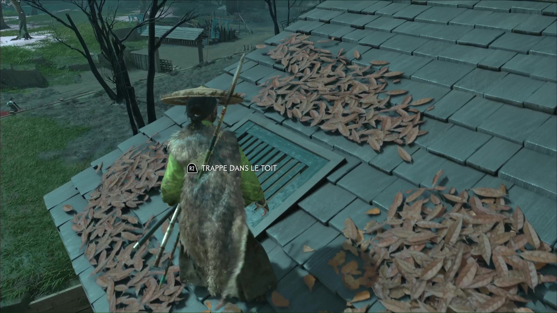 Rendez-vous à l’autel de l’onryō du Porte de Benten, et observez les toits sur la droite. Montez sur celui qui est le plus haut et cherchez une trappe.