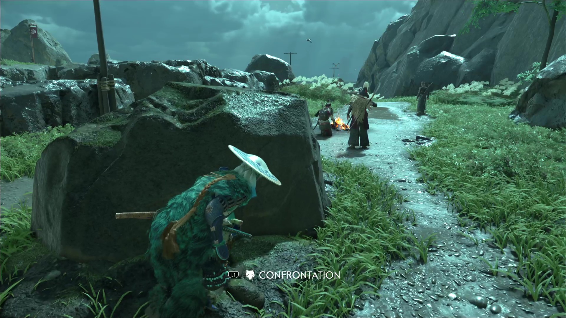 Hissez-vous ensuite jusqu’à des hautes herbes et passez par la droite. Continuez et vous surplomberez alors la zone de Kondo. De là, vous pouvez l’exécuter d’un seul coup. Il ne vous restera plus qu’à vous occuper des tireurs qui, avec un peu de chance, ne vous ont pas vu.