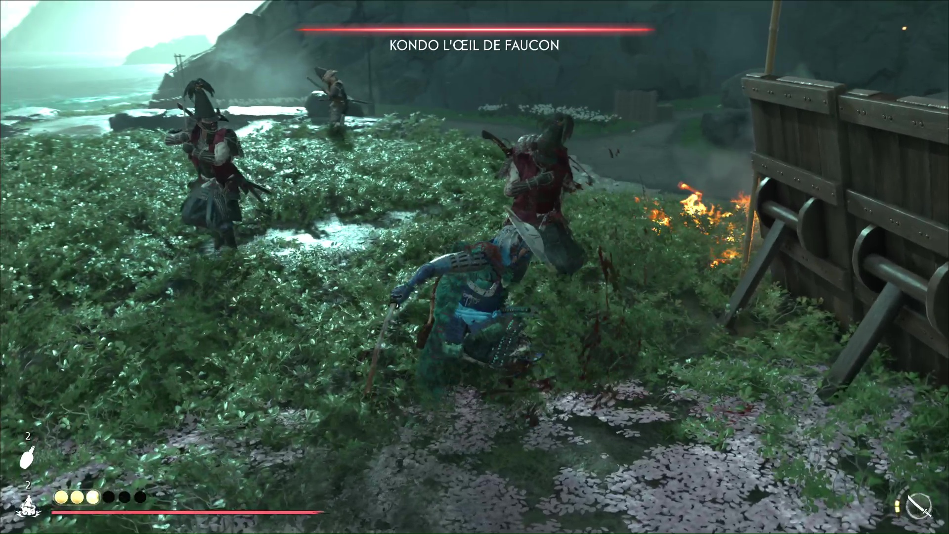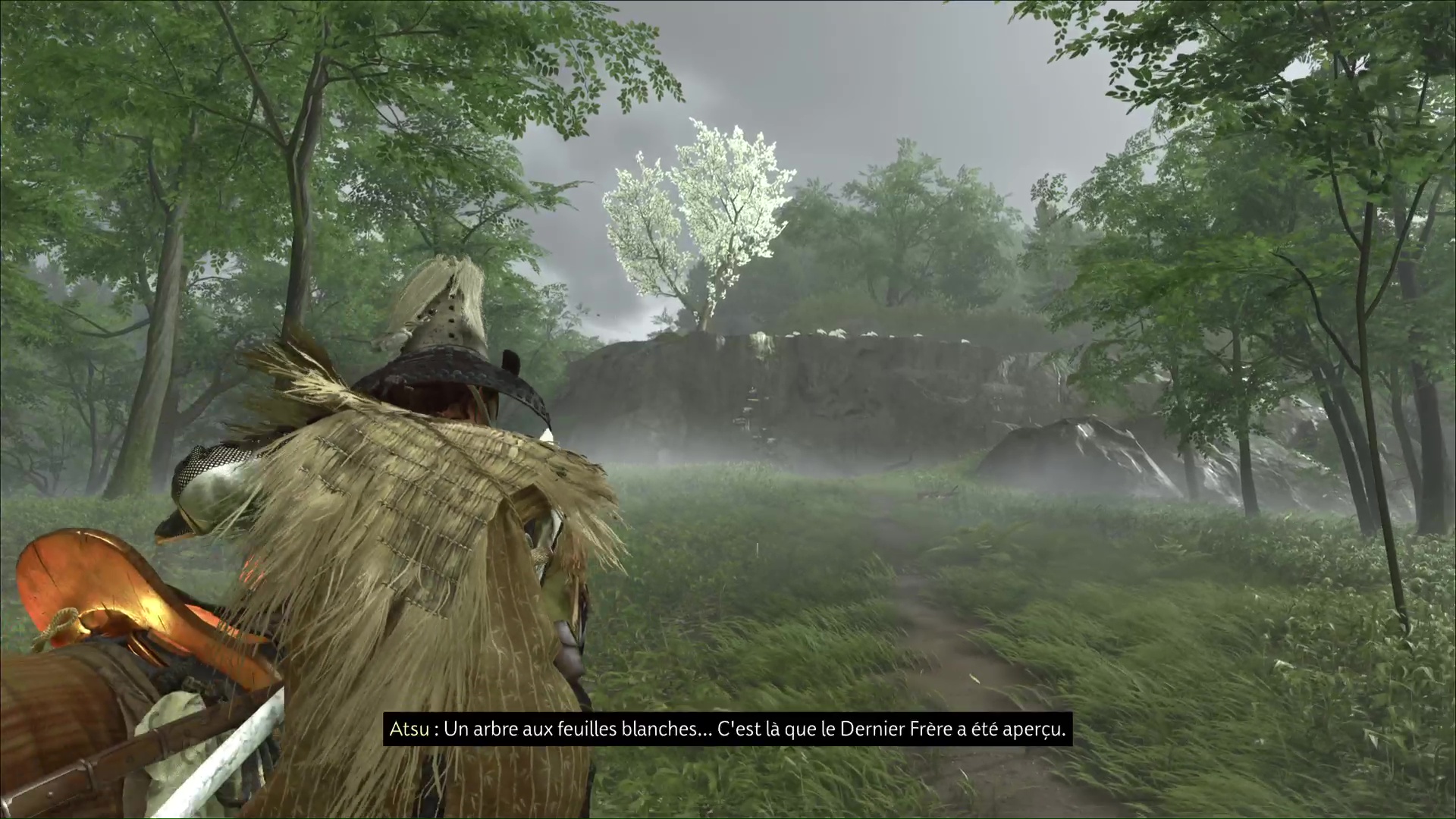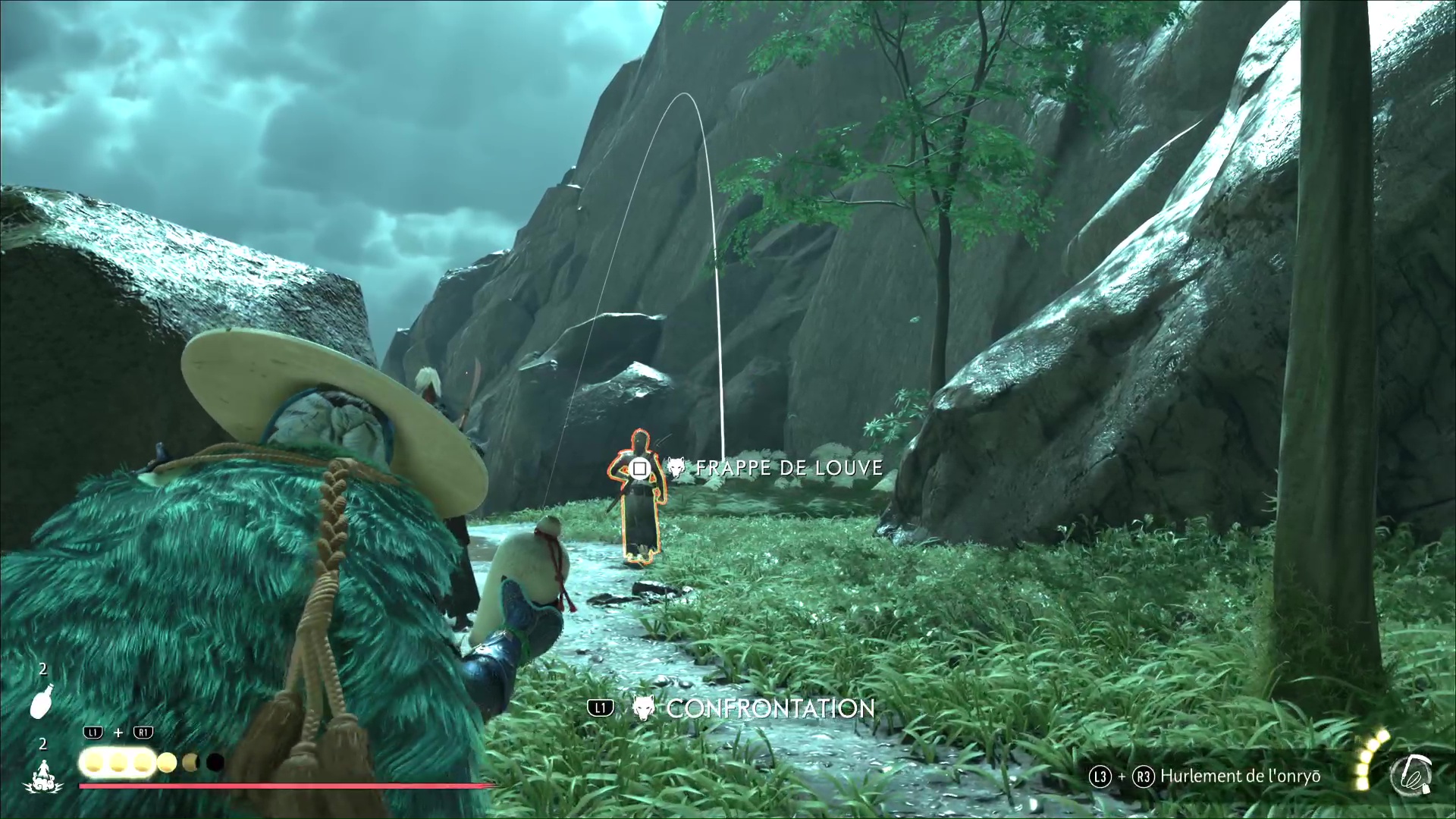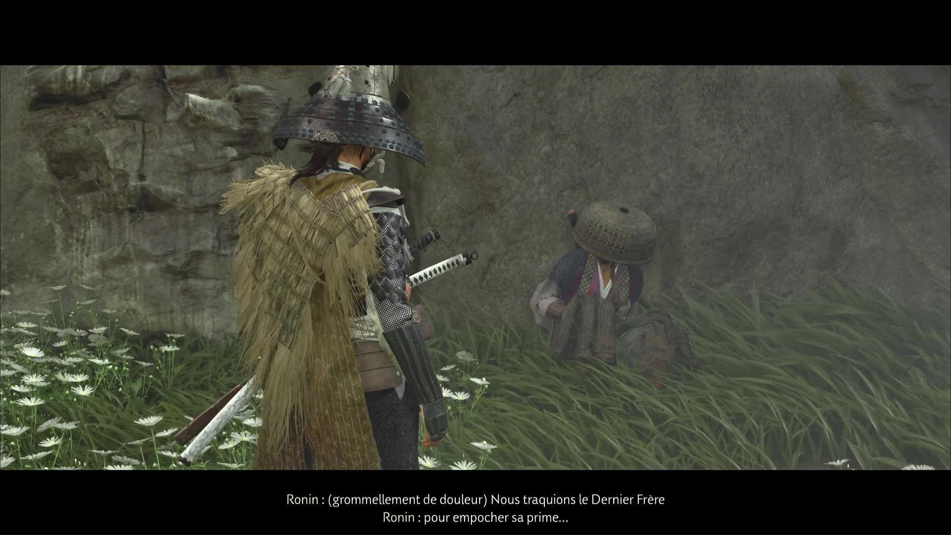 Au pied de la paroi rocheuse que vous pourrez escalader, un ronin blessé attire votre attention. Il vous racontera que d’autres ronin vous attendent plus haut, à la recherche eux aussi du Dernier Frère. Grimpez le mur.
