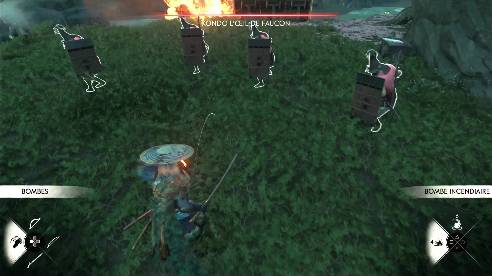 Vous allez donc devoir vous faufiler jusqu’à Kondo tout en faisant attention aux oiseaux et aux gardes. Vous pouvez tuer les faucons à l’arc mais il est possible que vous attiriez l’attention d’un ennemi proche.