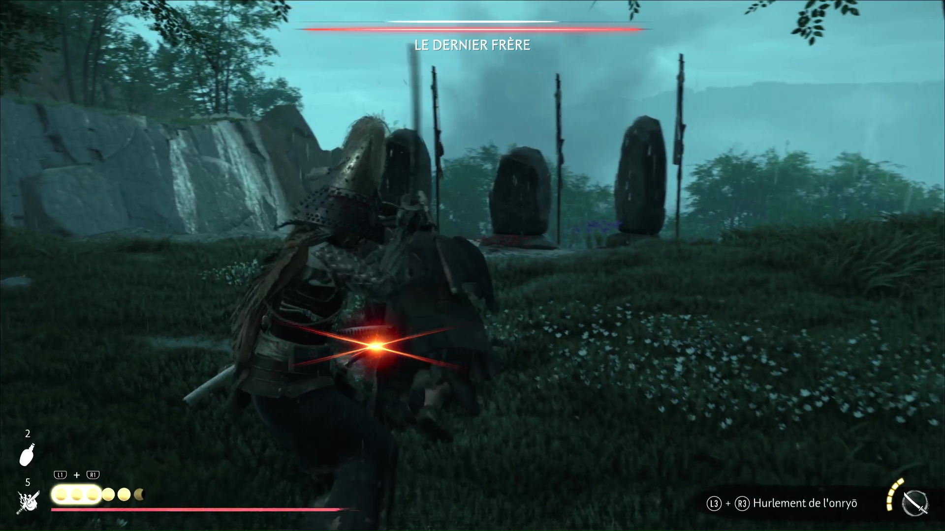 Avancez et examinez chacune des trois tombes érigées au bout du chemin, avant d’être interrompu par le Dernier Frère. Le duel ne tarde pas à se lancer.