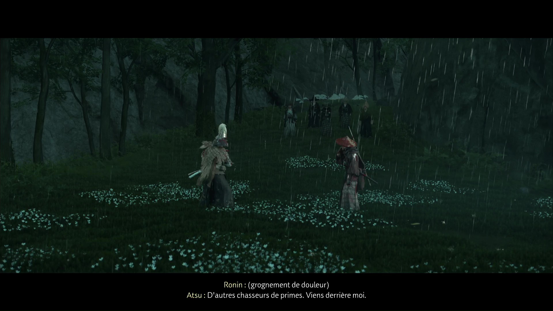 C’est l’œuvre de ronin venus récupérer la prime. Ensemble, défendez-vous. Allez tuer le tireur relativement en retrait puis éliminez les autres ronin. Vu que vous êtes deux, ce sera plus simple qu’à l’accoutumée.