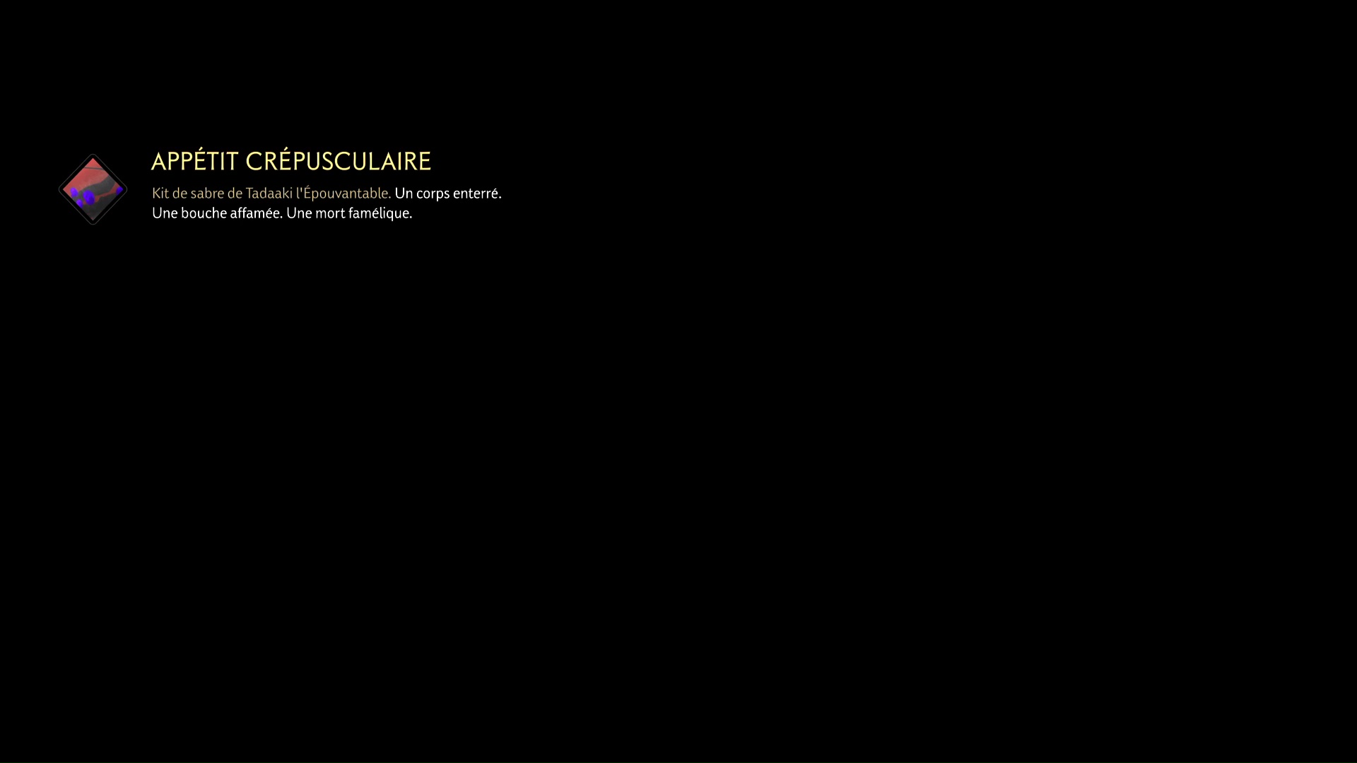 - Récompense : 2 000 pièces, Kit de sabre Appétit crépusculaire