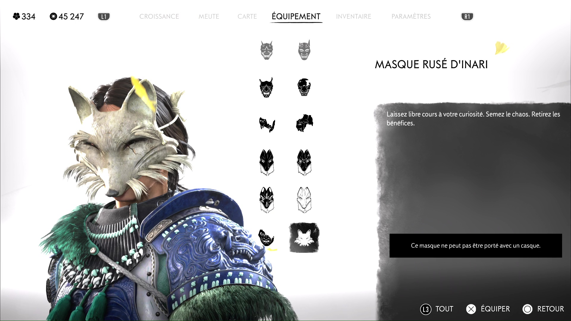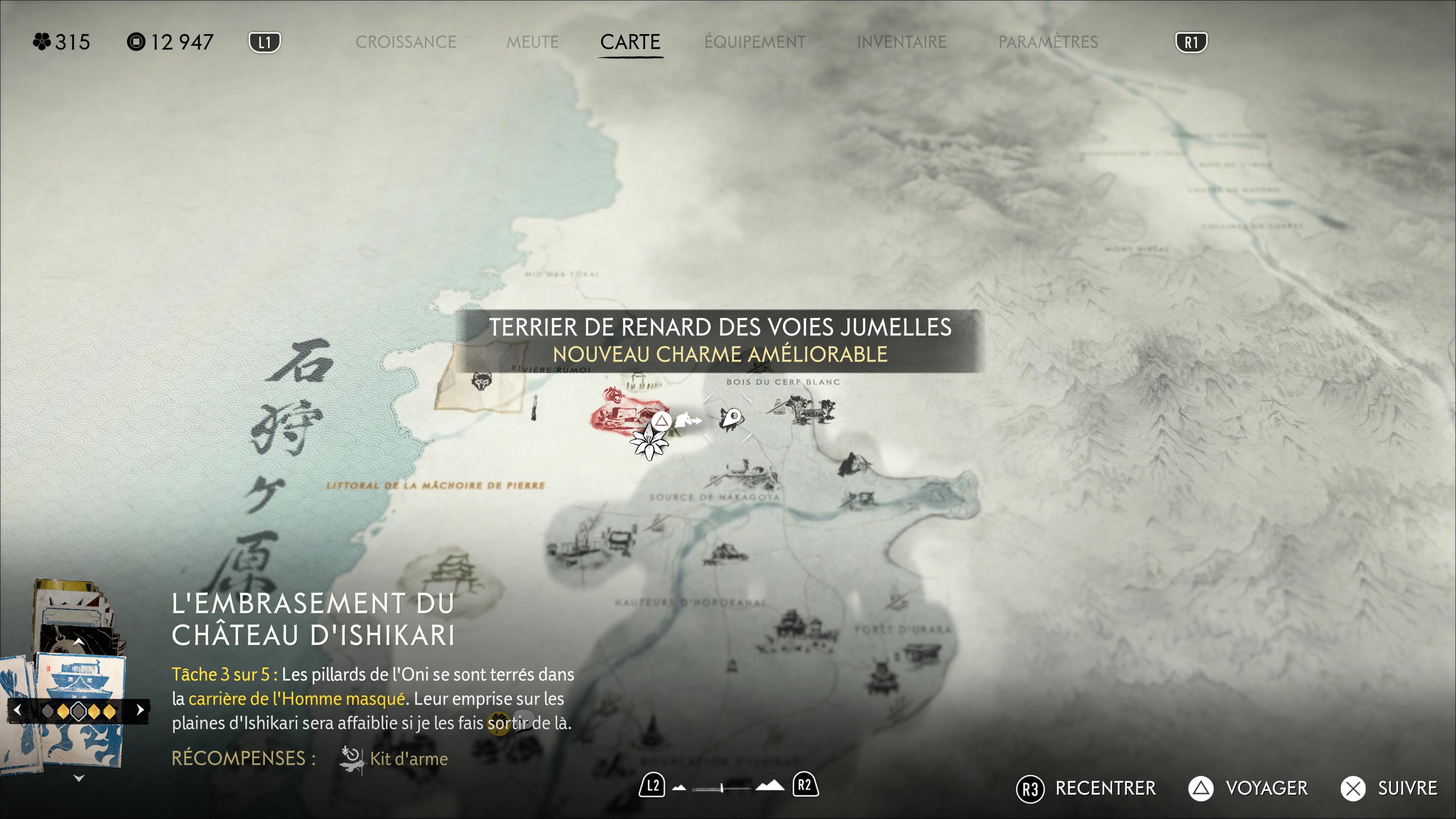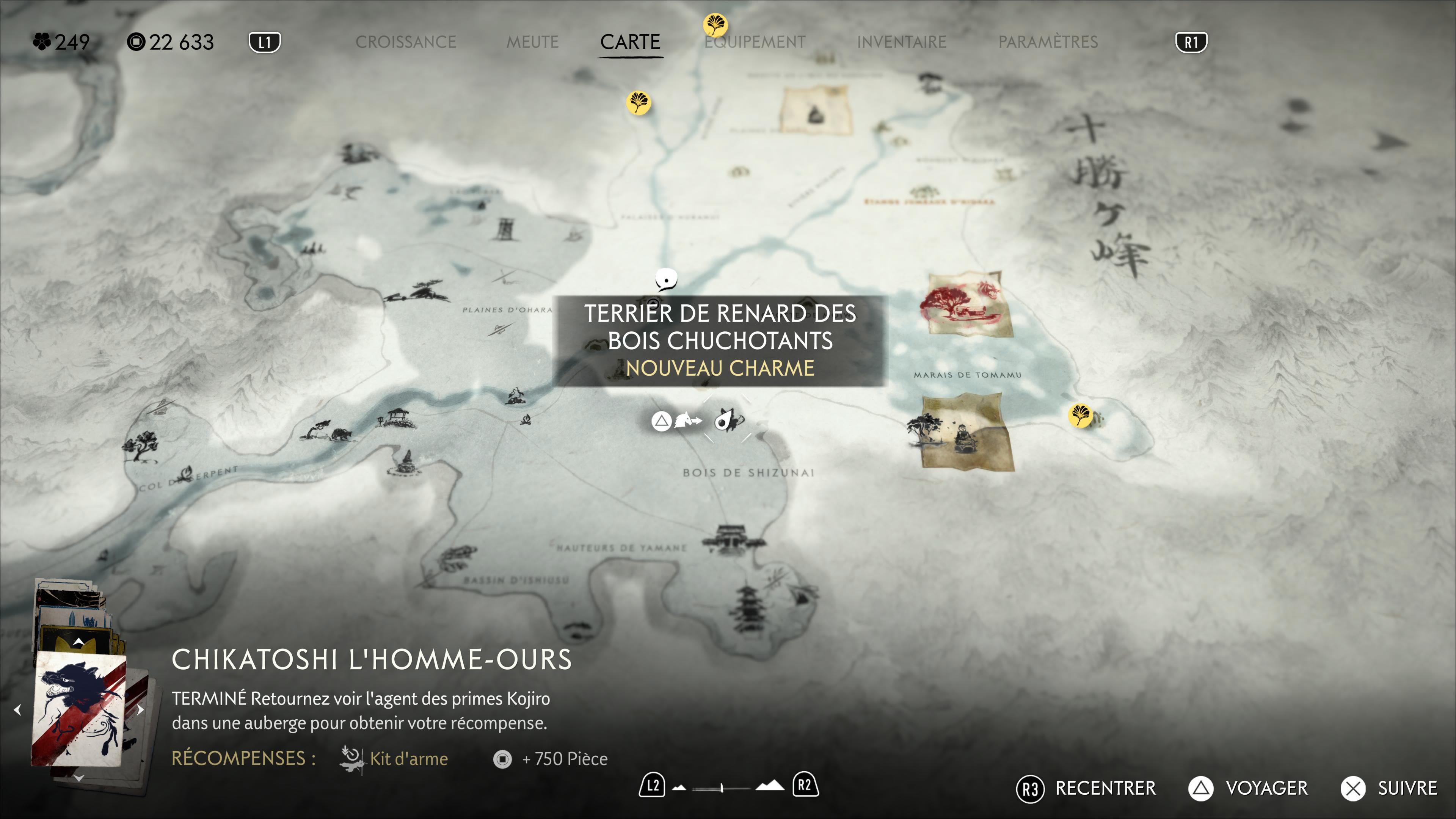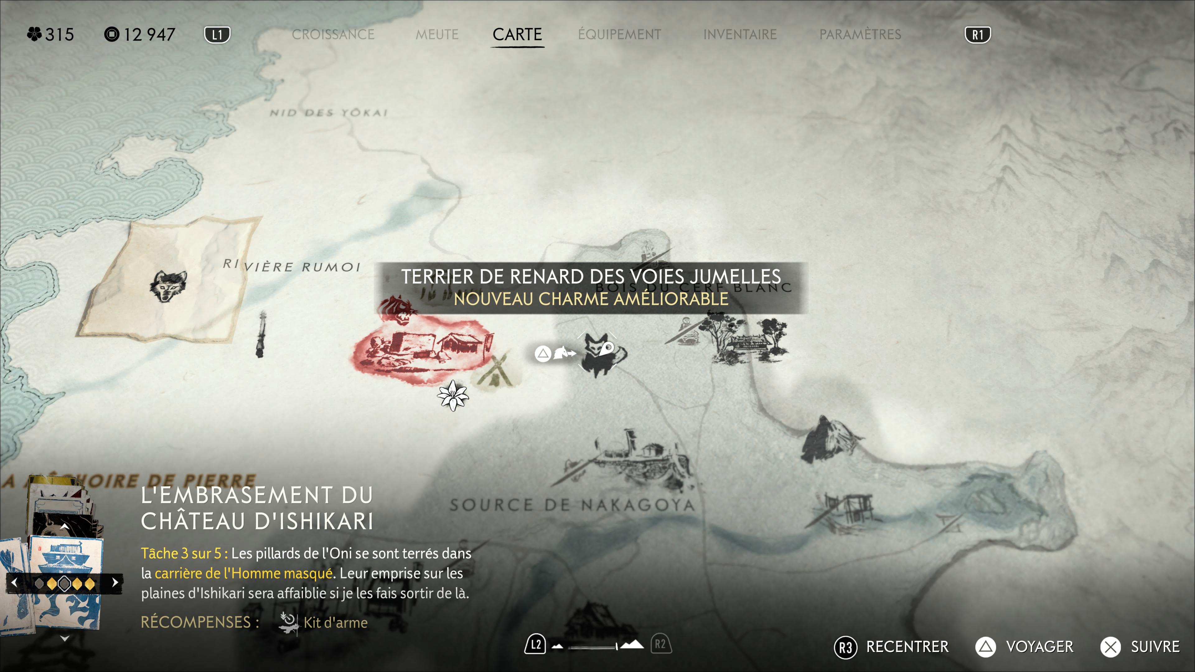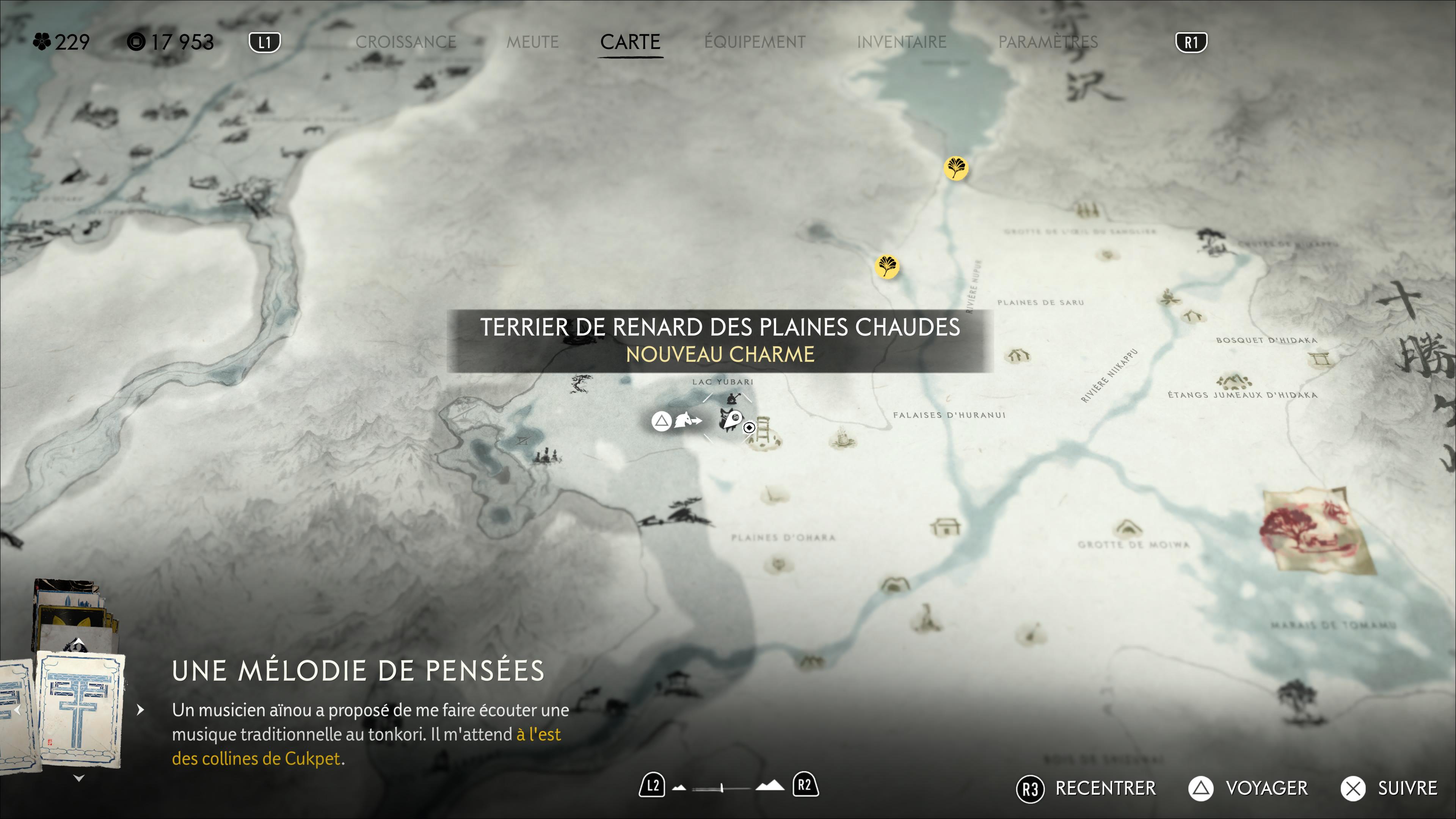 Notez enfin que sauver l’intégralité des renards vous donnera un Masque rusé d’Inari à récupérer dans le Refuge du bosquet, à la Crête de Teshio, débloquant par la même occasion le trophée 🏆 Gardienne d’Inari.