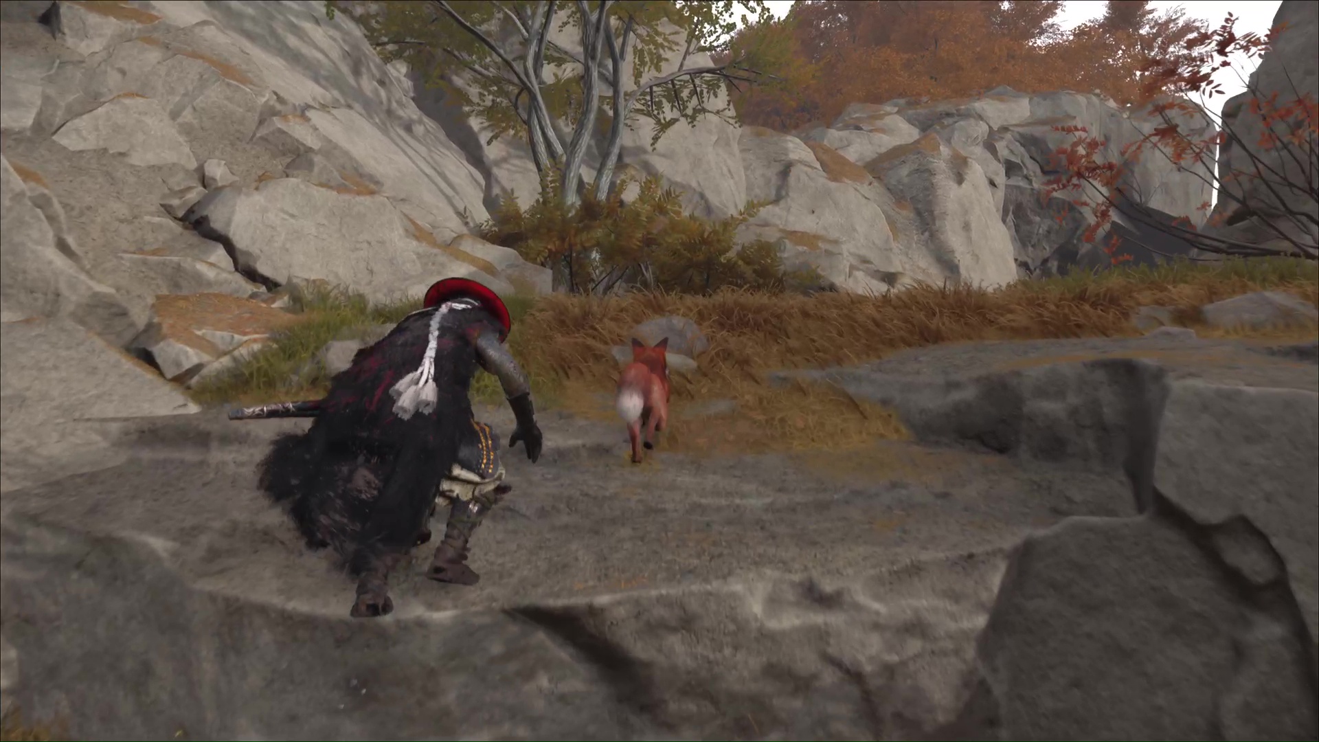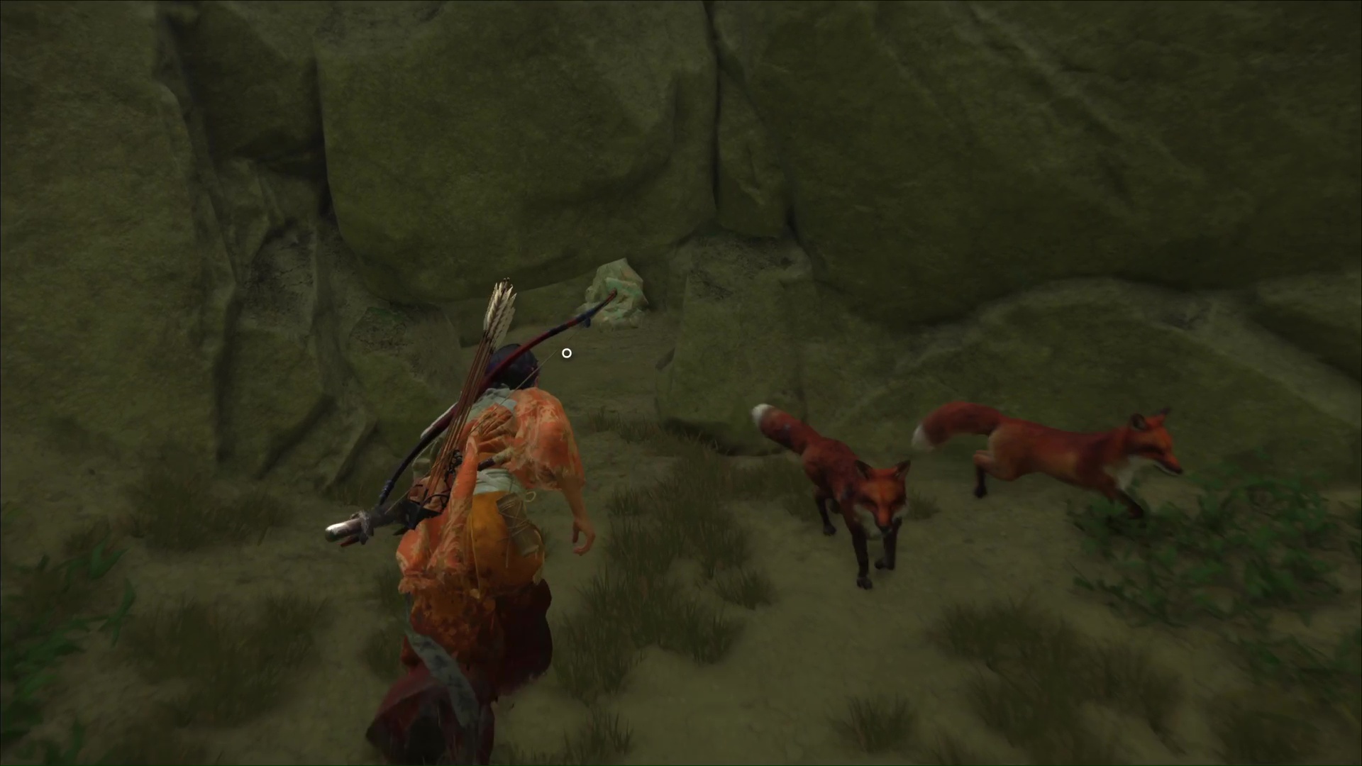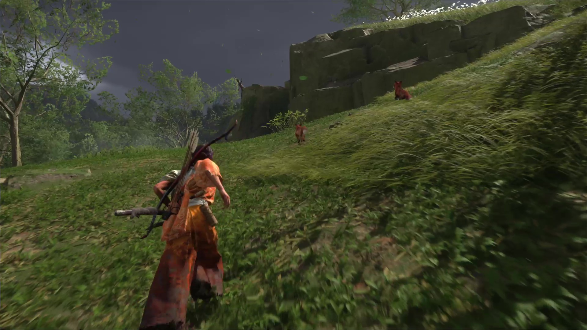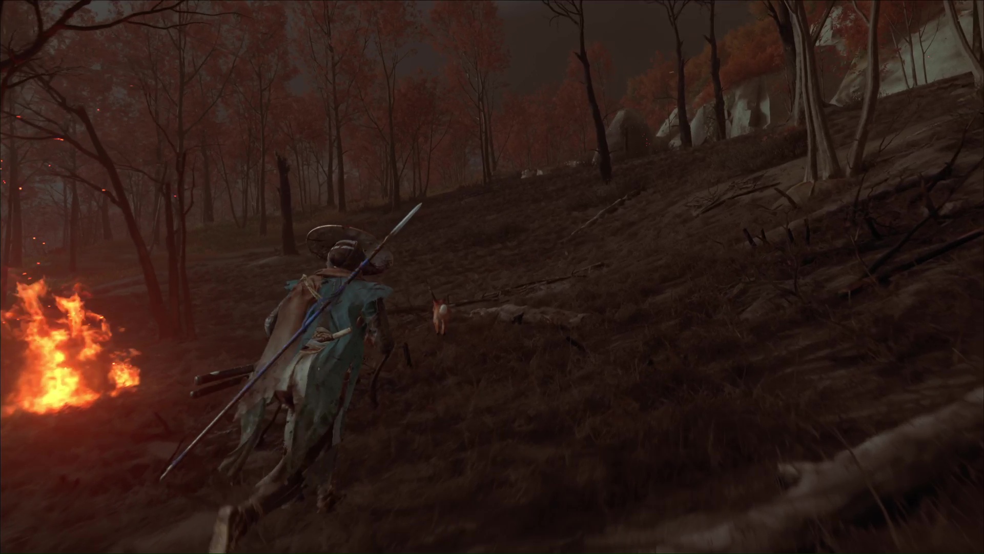 Celui-ci vous remercie et veut vous amener à une grotte. Accrochez le grappin à la barrière devant l’entrée, et tirez tous les deux. Passez de l’autre côté pour arriver au sanctuaire de la renarde. Priez et vous obtiendrez le Charme de salve brutale, un charme améliorable.