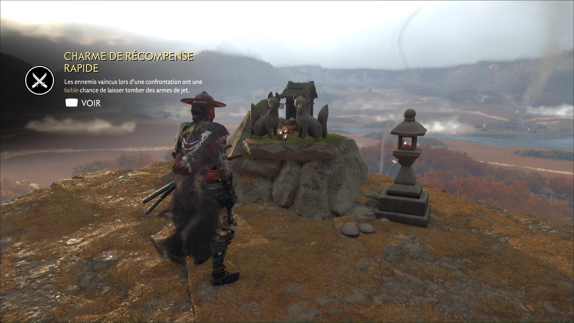 Les terriers de renard de Ghost of Yōtei vous amènent à accompagner une petite boule de poils jusqu’à un sanctuaire d’Inari. En récompense, vous obtenez un charme, parfois améliorable, à équiper pour booster vos caractéristiques ou octroyer des bonus passifs. À chaque renard, la mini-aventure à mener est un peu différente. Sauver le renard d’un danger, secourir un de ses amis, et d’autres petites subtilités vous attendent dans cette activité annexe.