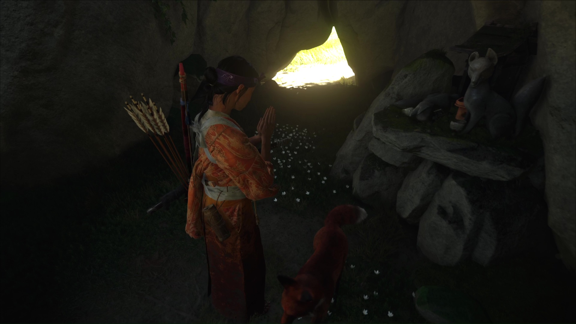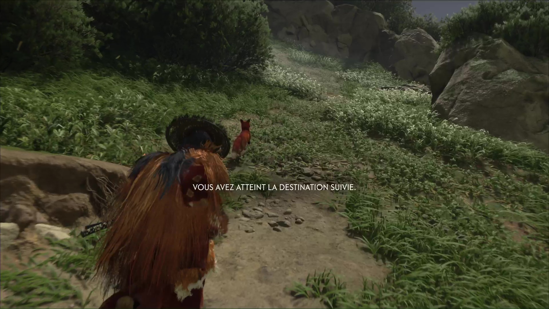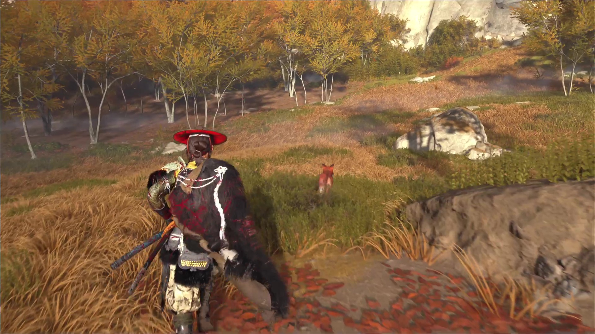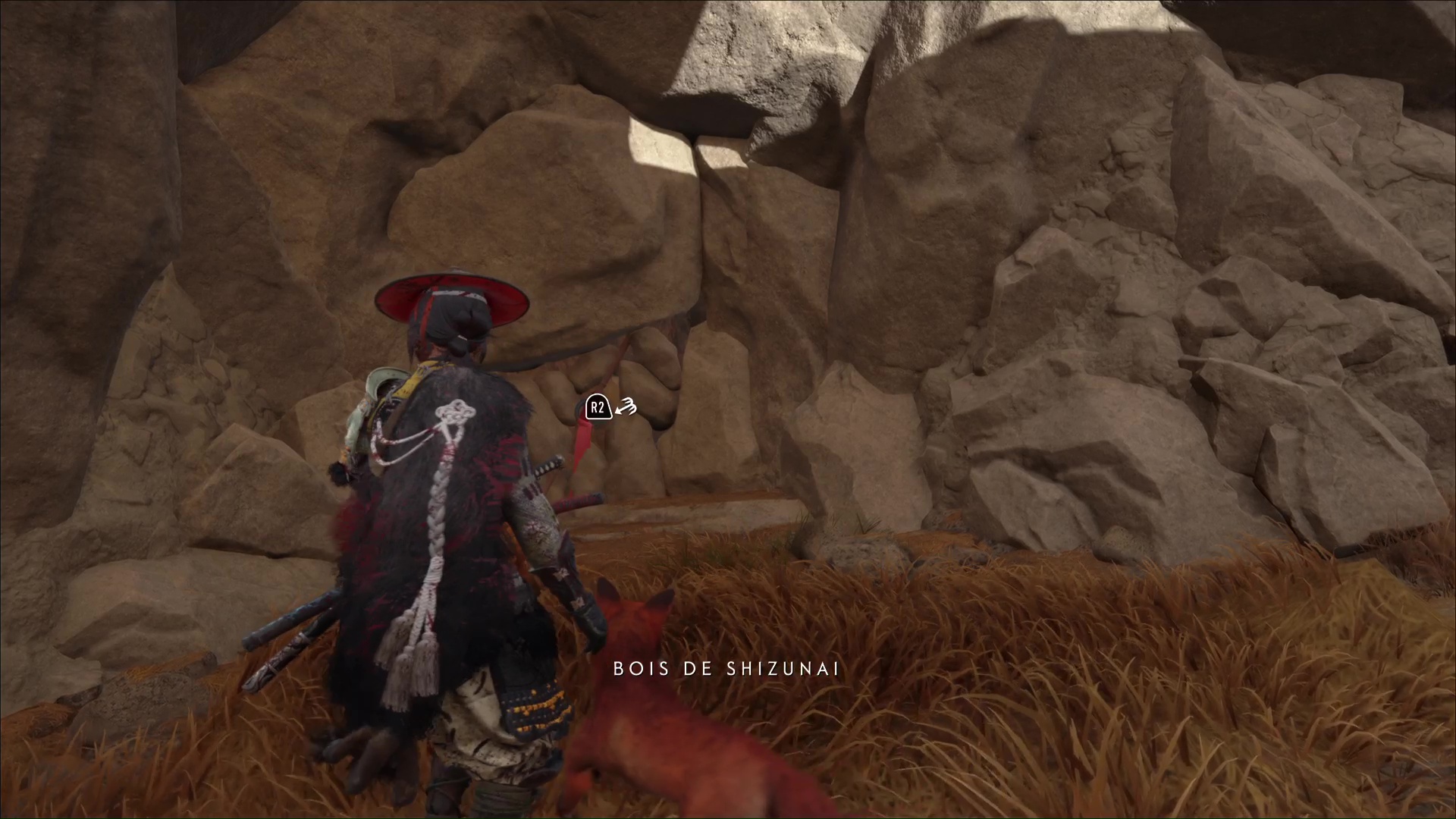 Dans les Prairies de Yōtei, rendez-vous sur la rive gauche de la rivière au nord des Chutes de la Tranquillité. Arrivé au terrier, suivez le renard.