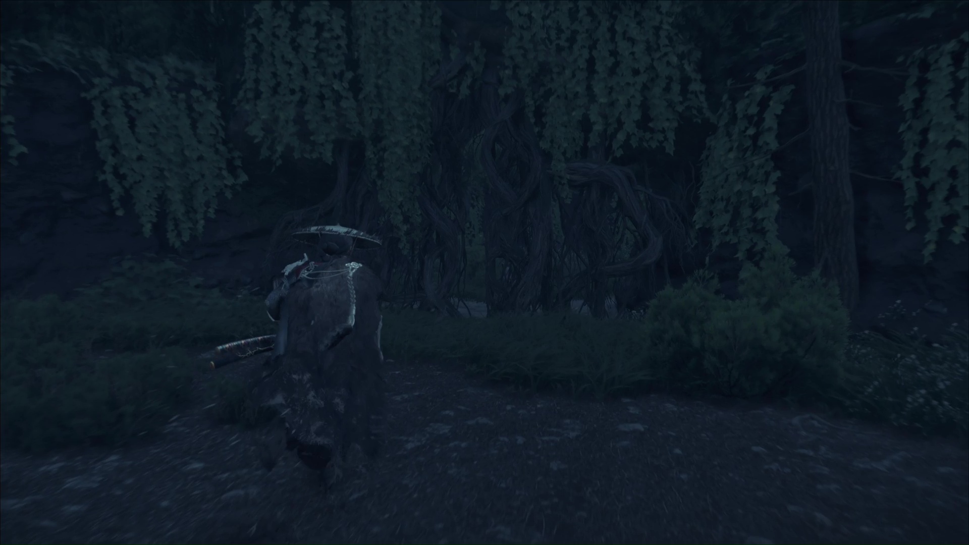 Ressortez et continuez à le suivre pendant plusieurs secondes pour finalement arriver au sanctuaire d’Inari, caché par des buissons. Priez pour gagner le Charme de détermination implacable.