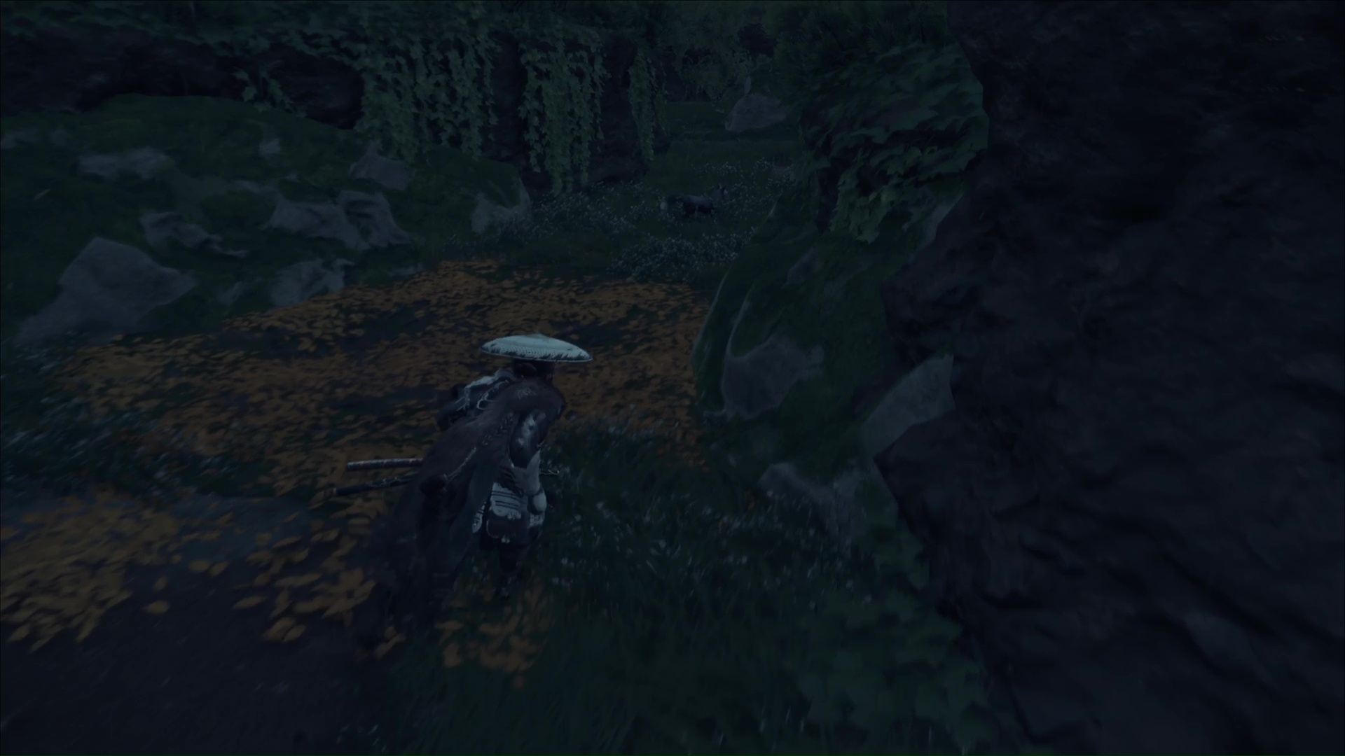 L’animal a un truc dans la gueule et pars devant. Passez dans la petite ouverture et sautez sur les rochers en pleine rivière pour rejoindre l’autre côté. Continuez encore un peu afin d’arriver à un petit passage entre des grosses racines.