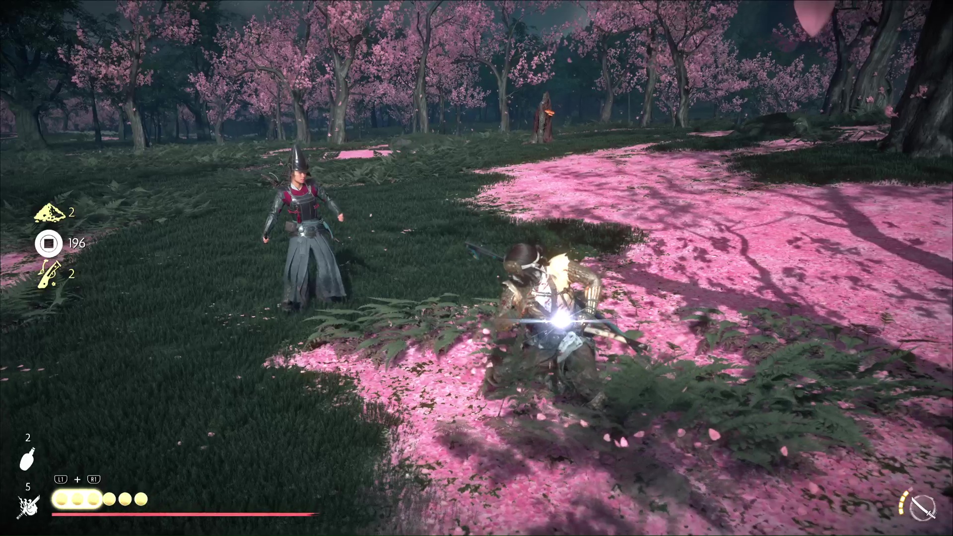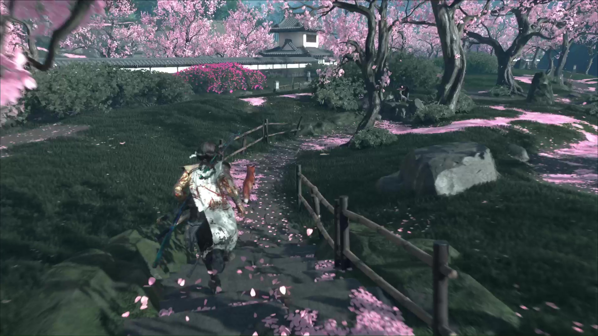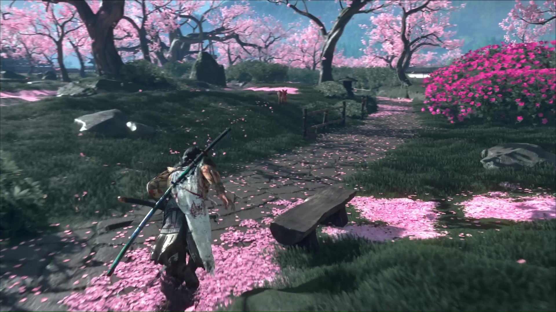 Passez à traver la brèche afin de rejoindre un parc rempli de cerisiers. Continuez de suivre la boule de poils pour découvrir l’emplacement du sanctuaire d’Inari. Priez et vous recevrez le Charme de préparation adéquate.