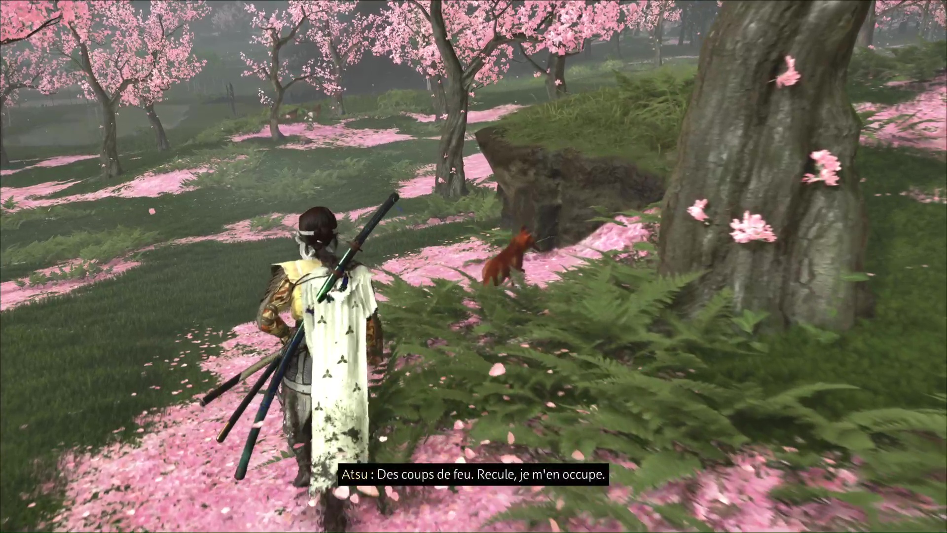 Vous finirez par arriver à une zone où retentissent des coups de feu. L’infiltration est compliquée donc tentez plutôt une Confrontation. Dès que tout le monde est mort, suivez le renard jusqu’à arriver au niveau d’une brèche dans les murs des Résidences des Matsumae.