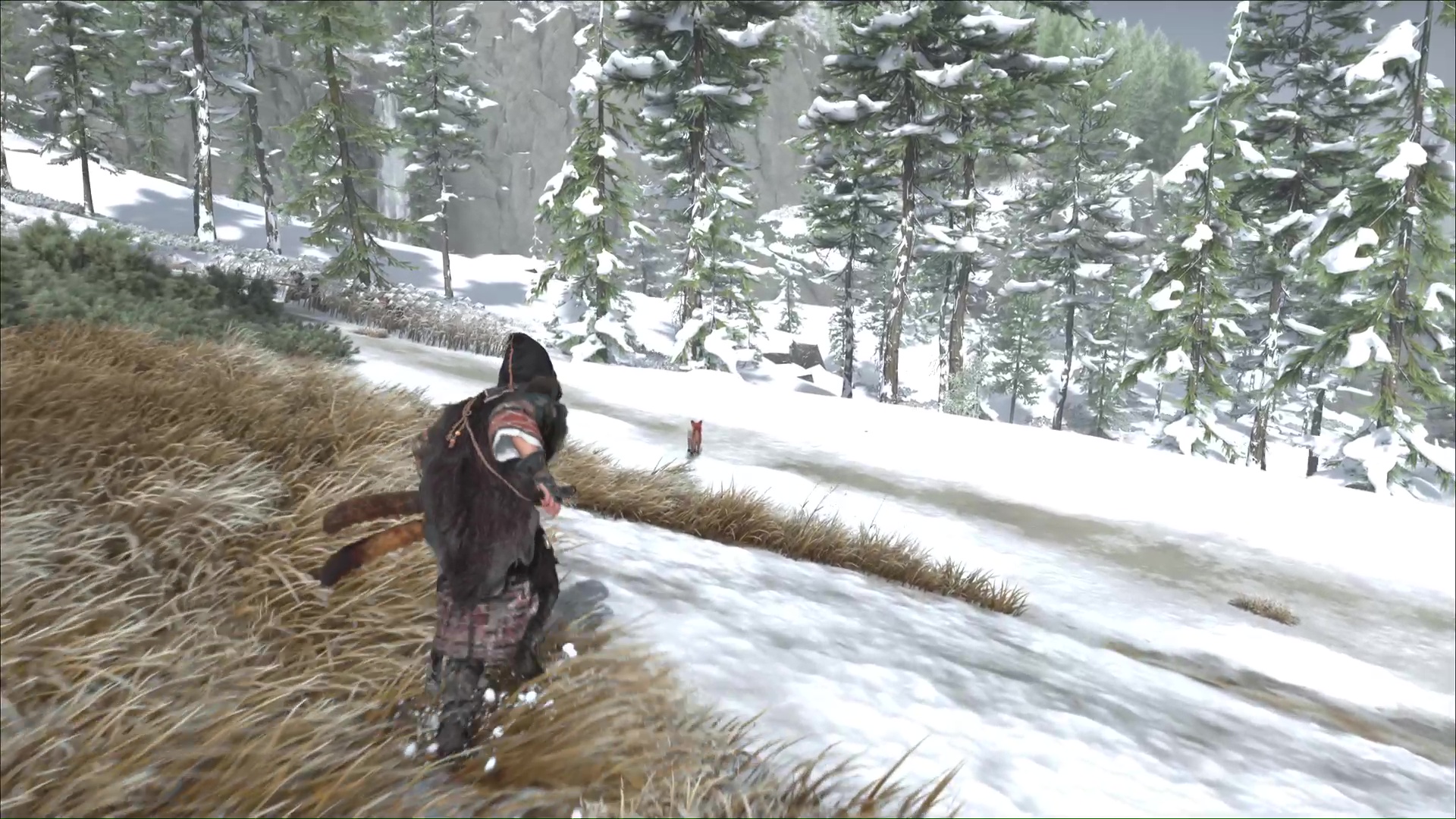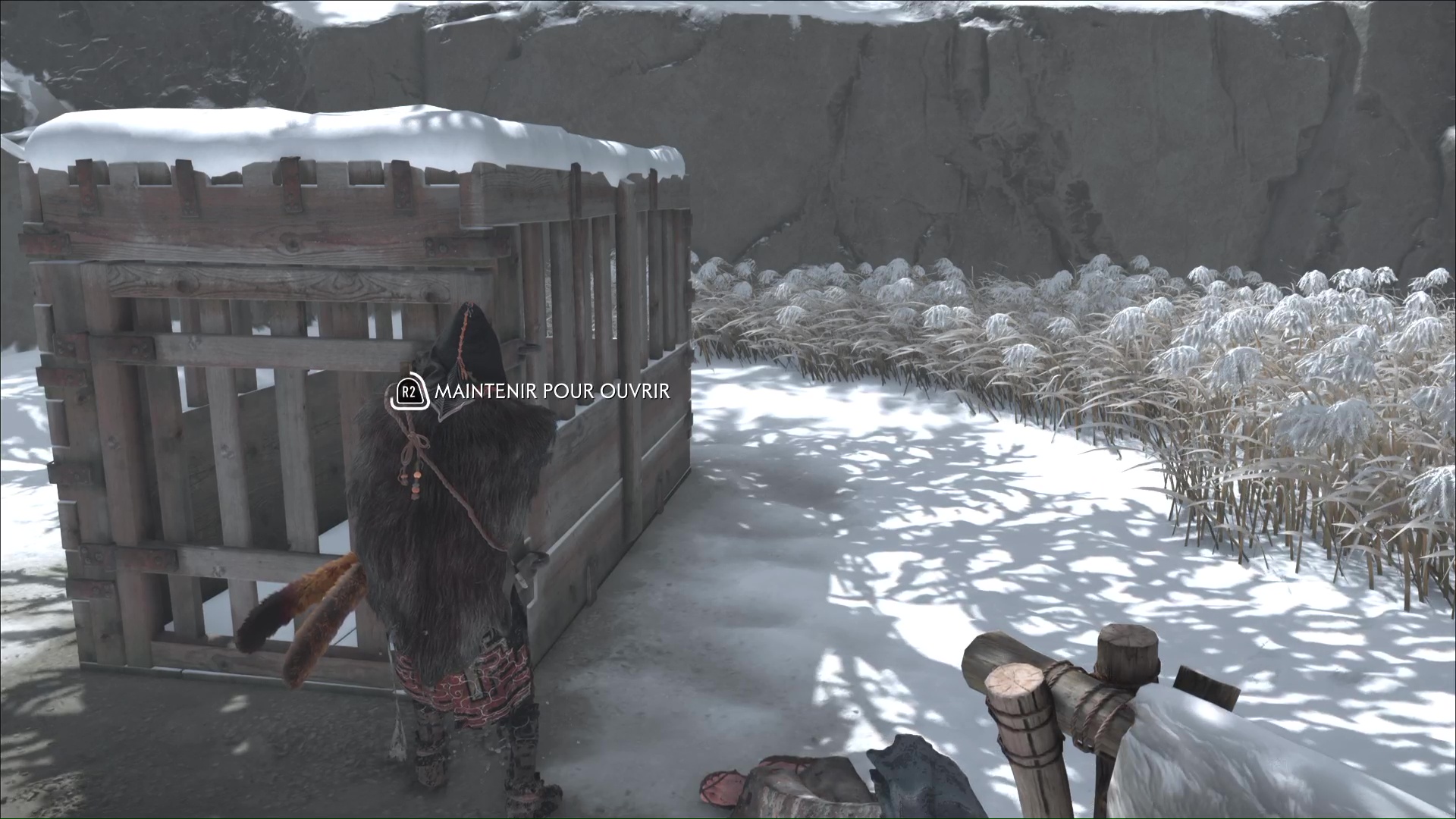 Vous traverserez la rivière gelée et continuerez votre chemin jusqu’à atteindre des débris à déblayer avec votre grappin. Un autre renard en sortira. Continuez de suivre le duo.