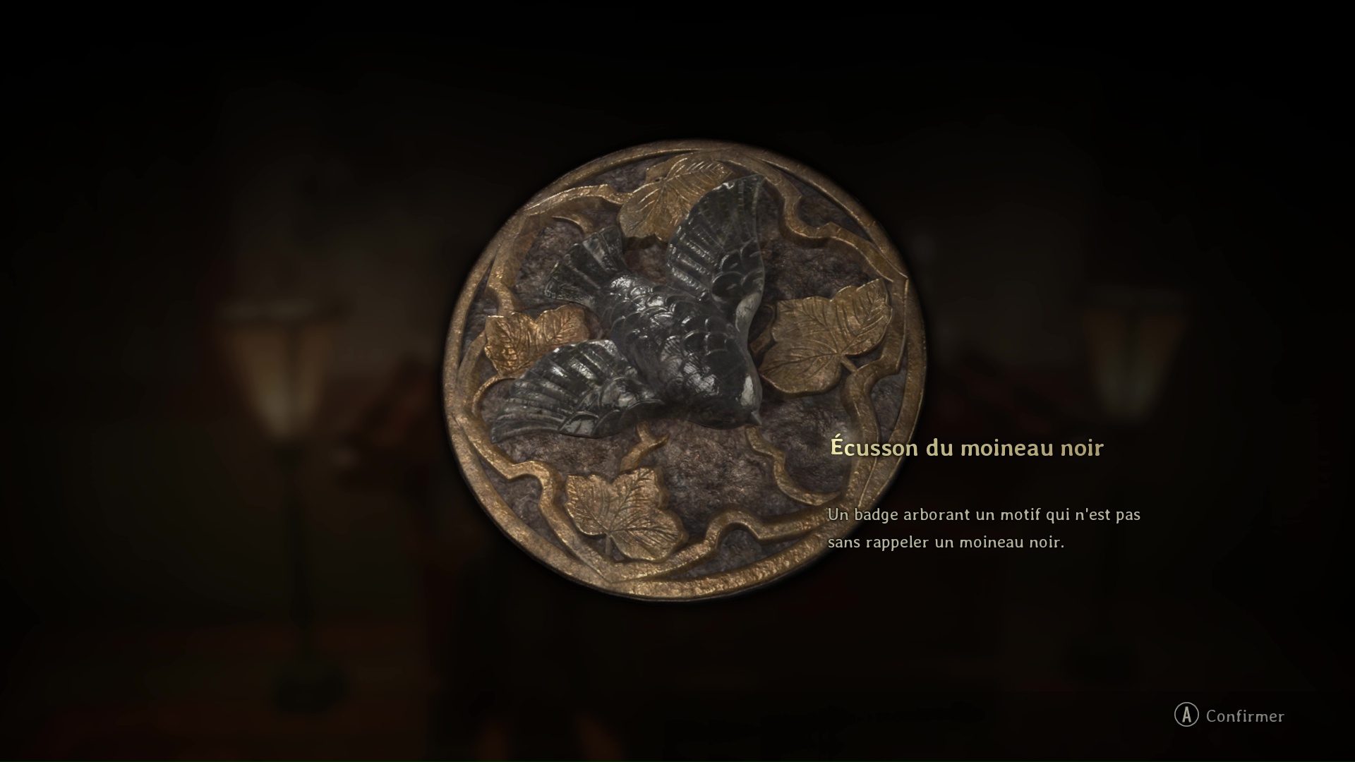 - Écusson de moineau noir : lanterne en bas à gauche