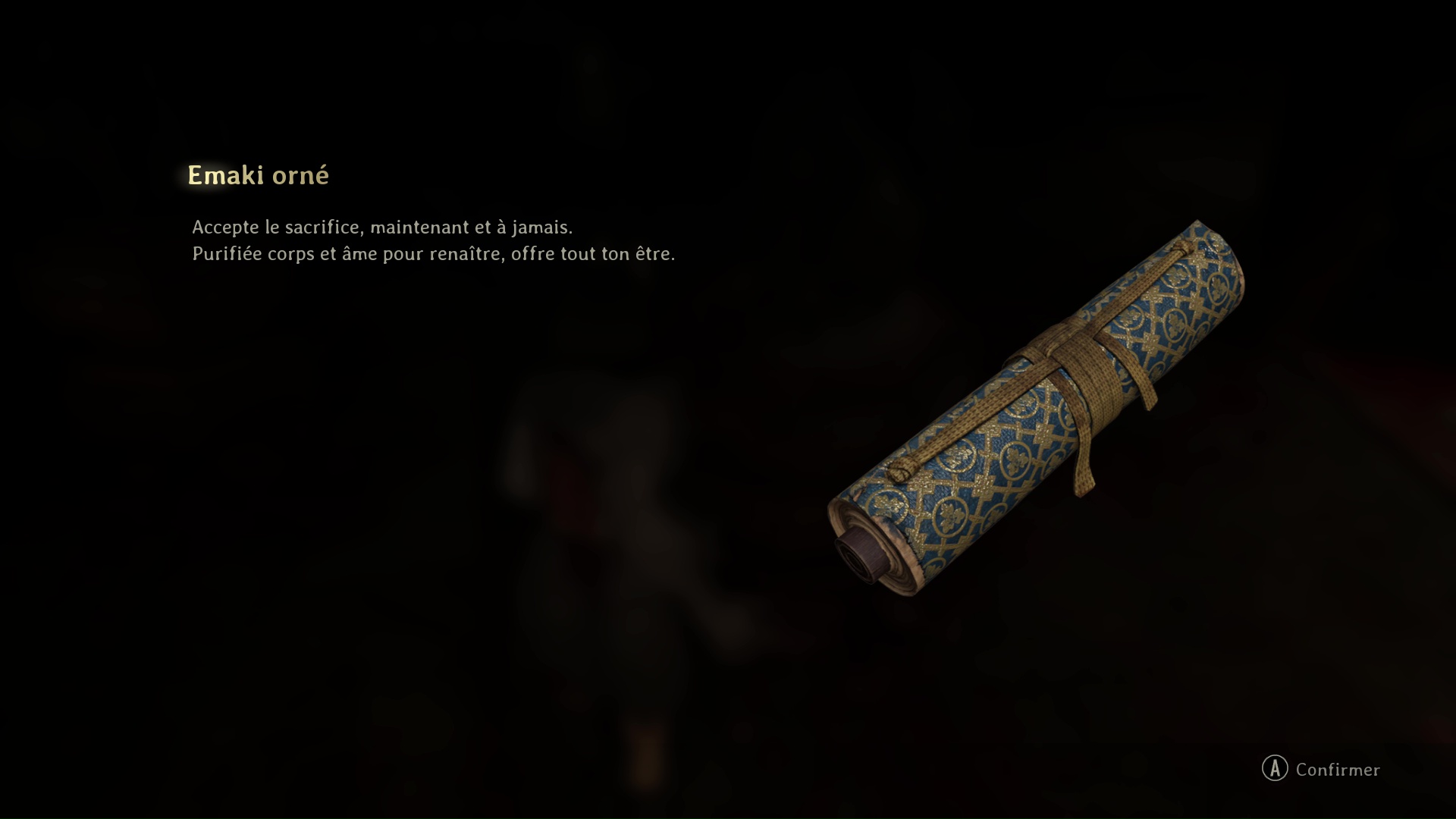 Une fois tous bannis, rejoignez le fond de la salle pour trouver dans une boite l’Écusson du moineau noir. Dans une pièce à gauche, vous trouverez un exemplaire de la Note d’une femme de chambre (utile pour le même trophée concernant la famille Tsuneki). Allez ensuite à droite du coffre pour ouvrir un mur grâce à votre masque de sang et enfin revenir dans la pièce de la fresque. Profitez-en pour sauvegarder.