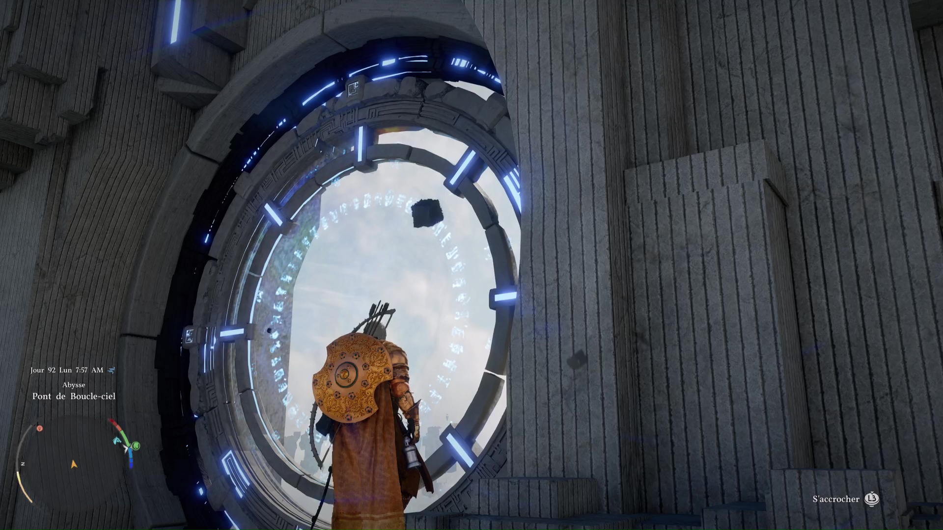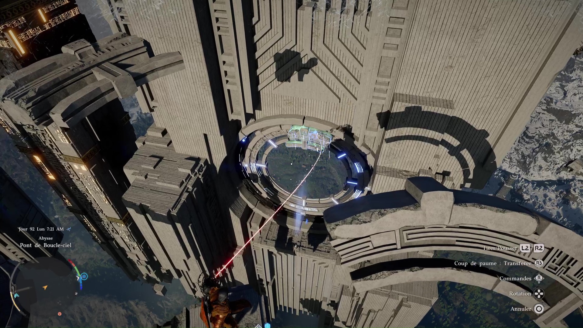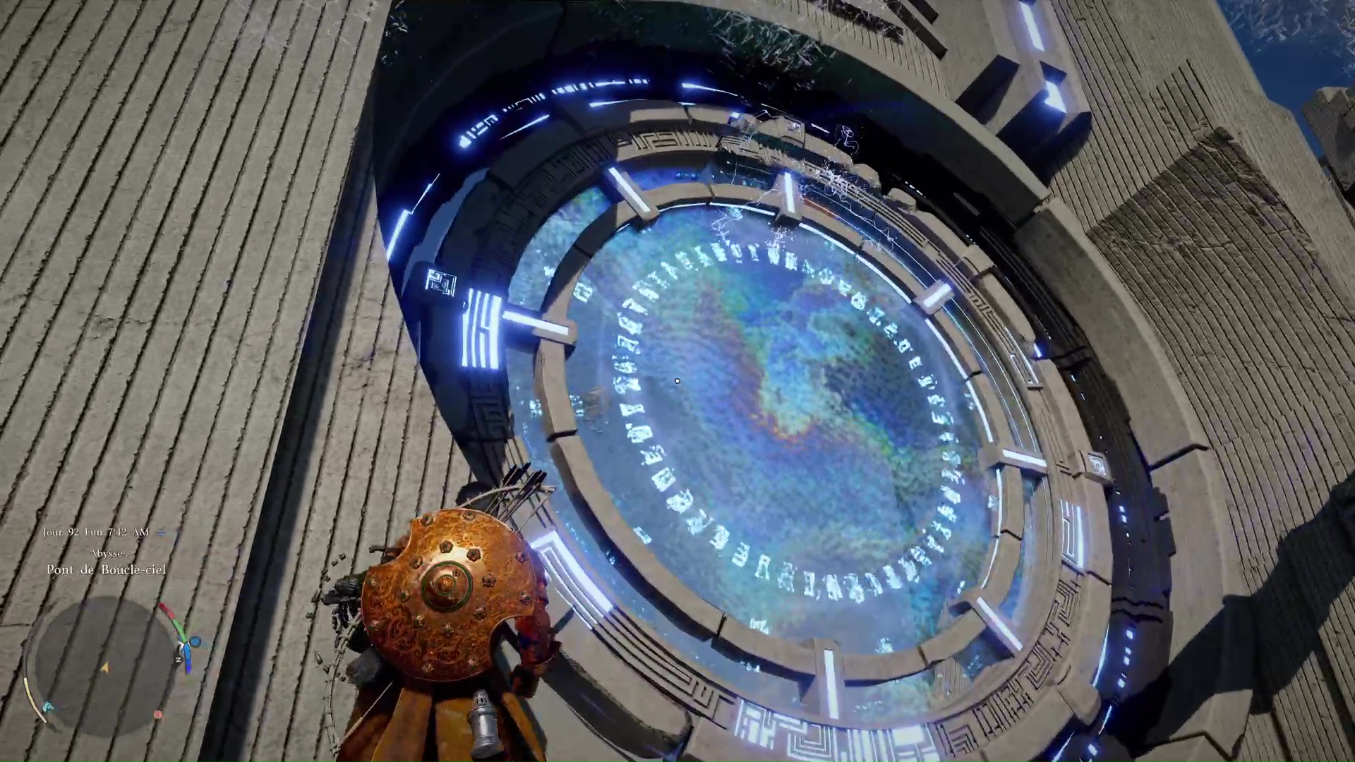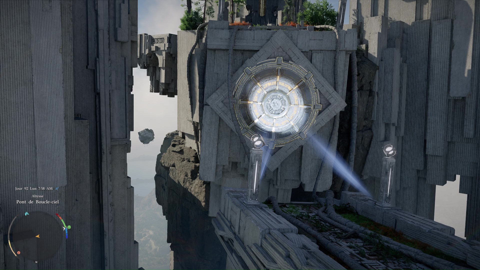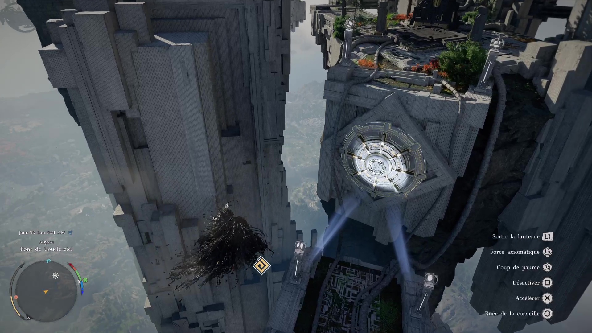 Planez jusqu’au mécanisme, grimpez dessus et, en son centre, réalisez un coup de paume pour l’activer tout en maintenant L2/LT. Le monolithe va se remettre en marche et vous donner accès à l’artefact abyssal de fin de parcours.