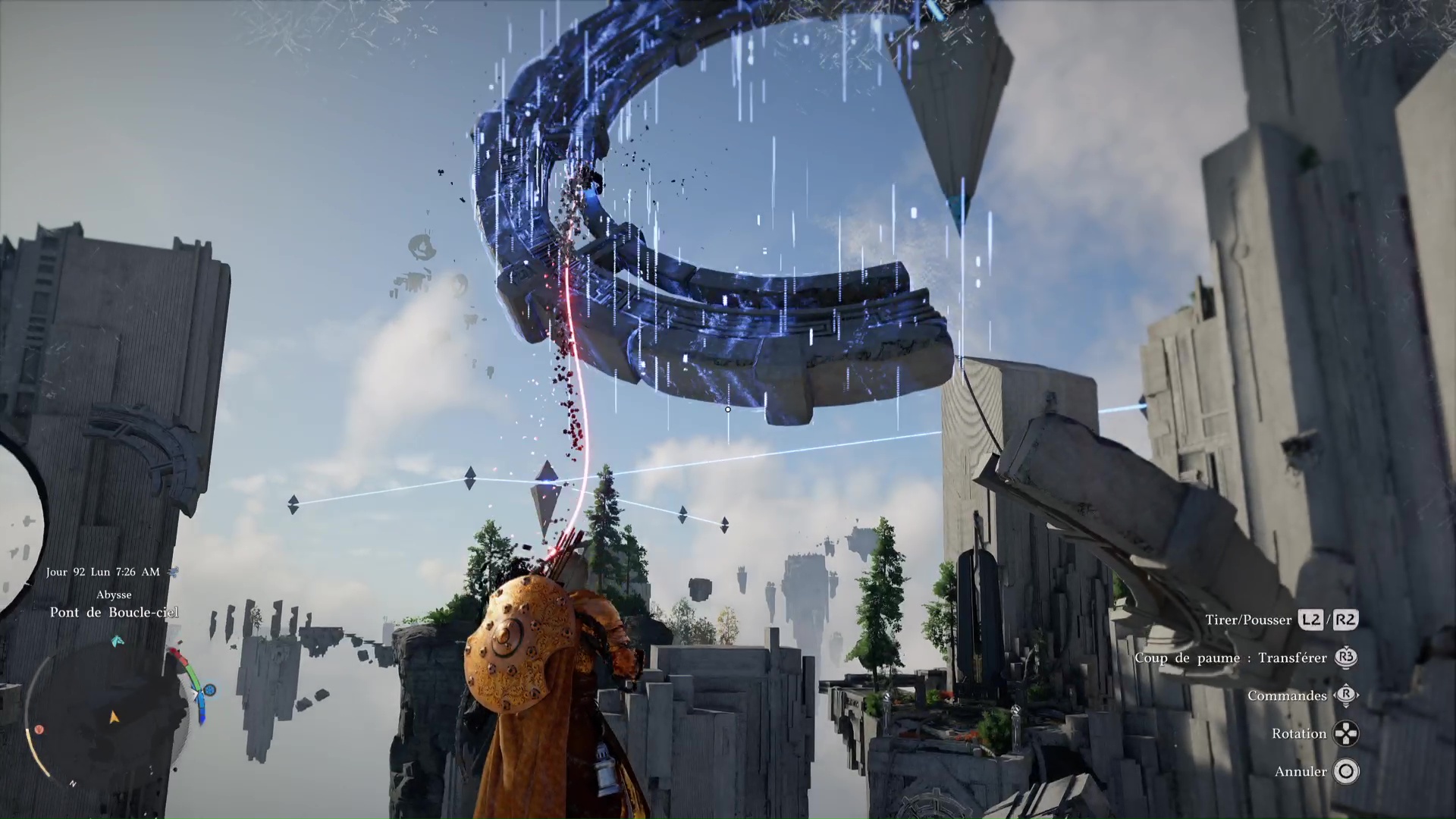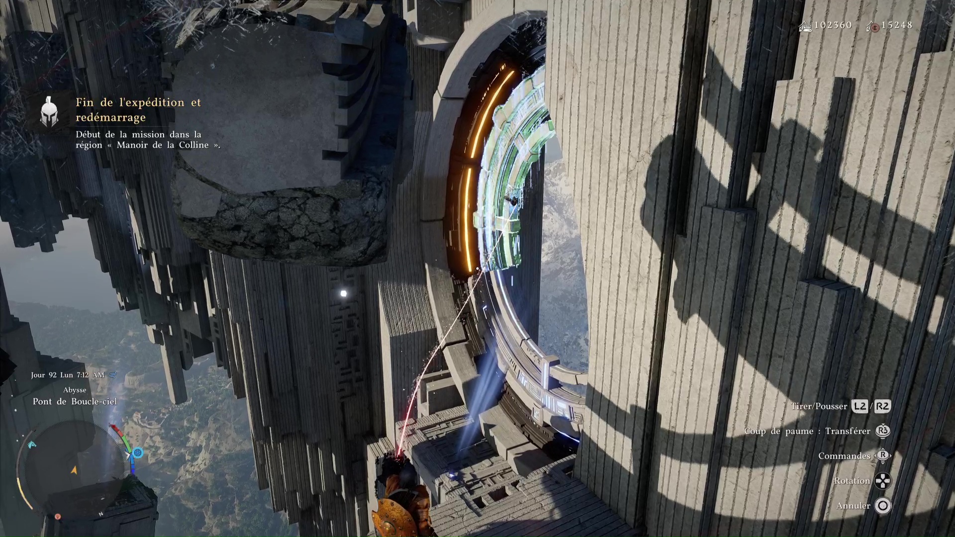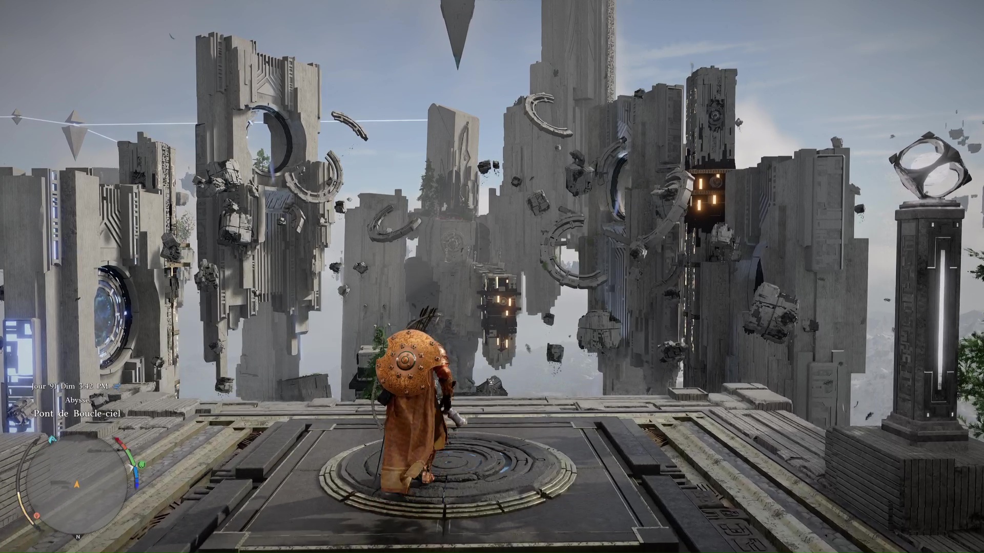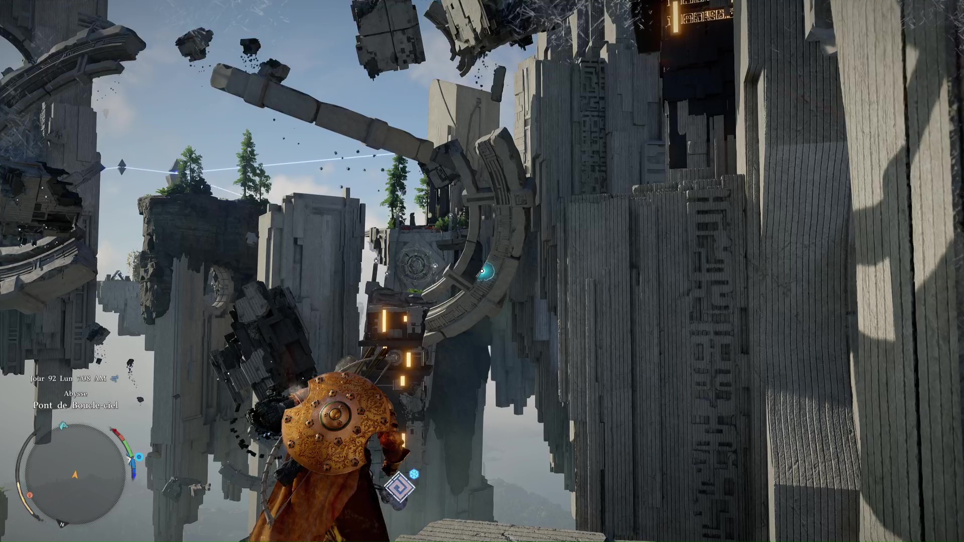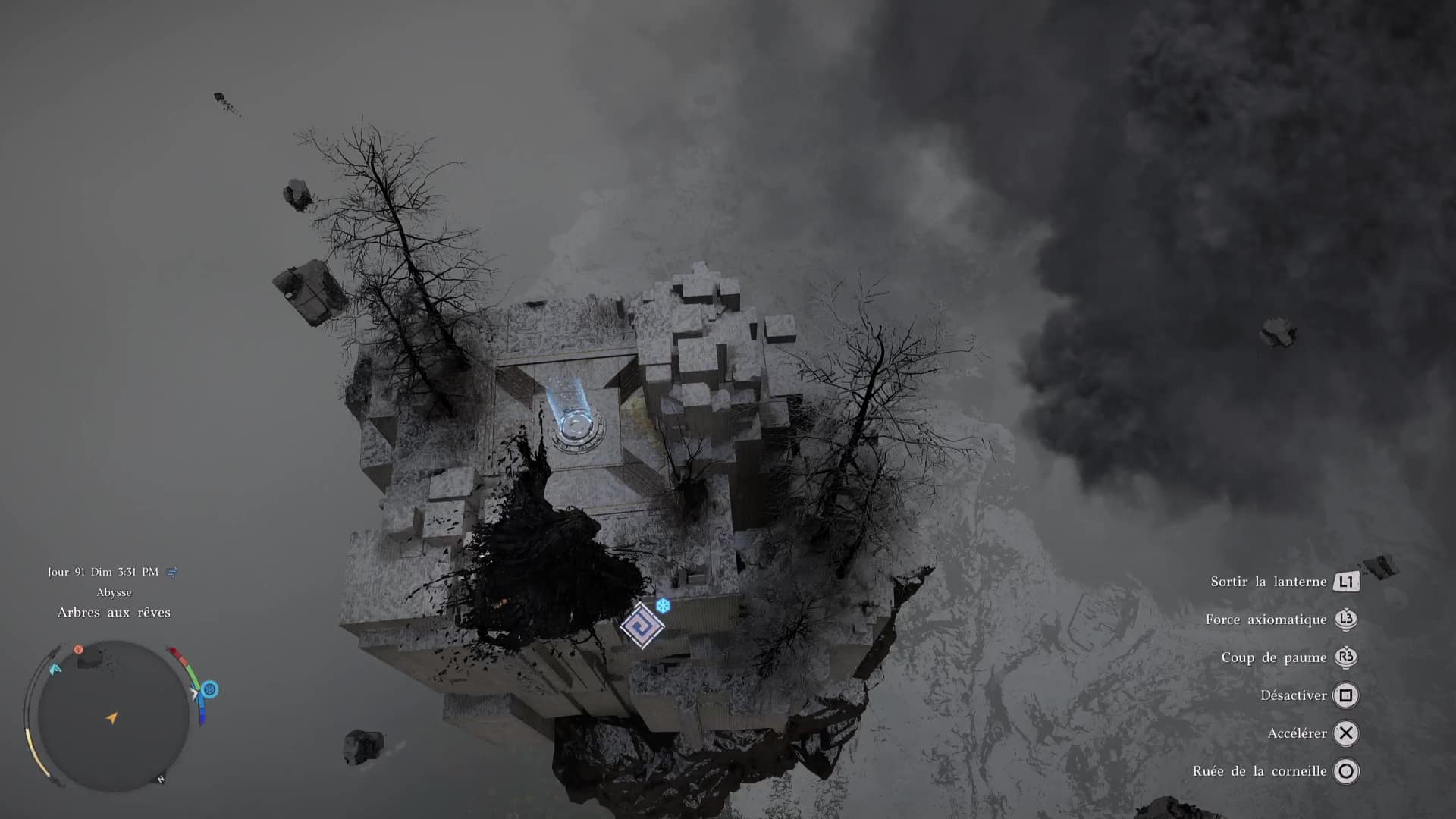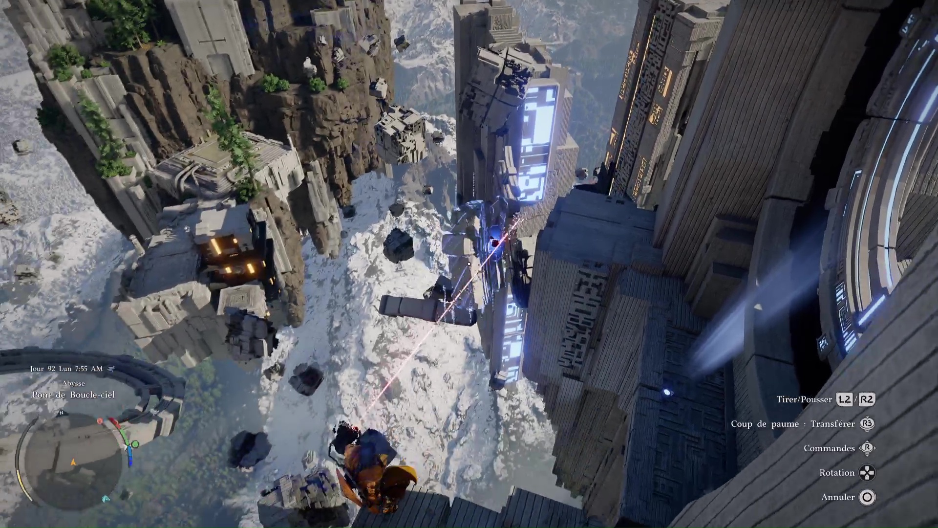 Planez jusqu’au mécanisme, grimpez dessus et, en son centre, réalisez un coup de paume pour l’activer tout en maintenant L2/LT. Le monolithe va se remettre en marche et vous donner accès à l’artefact abyssal de fin de parcours.