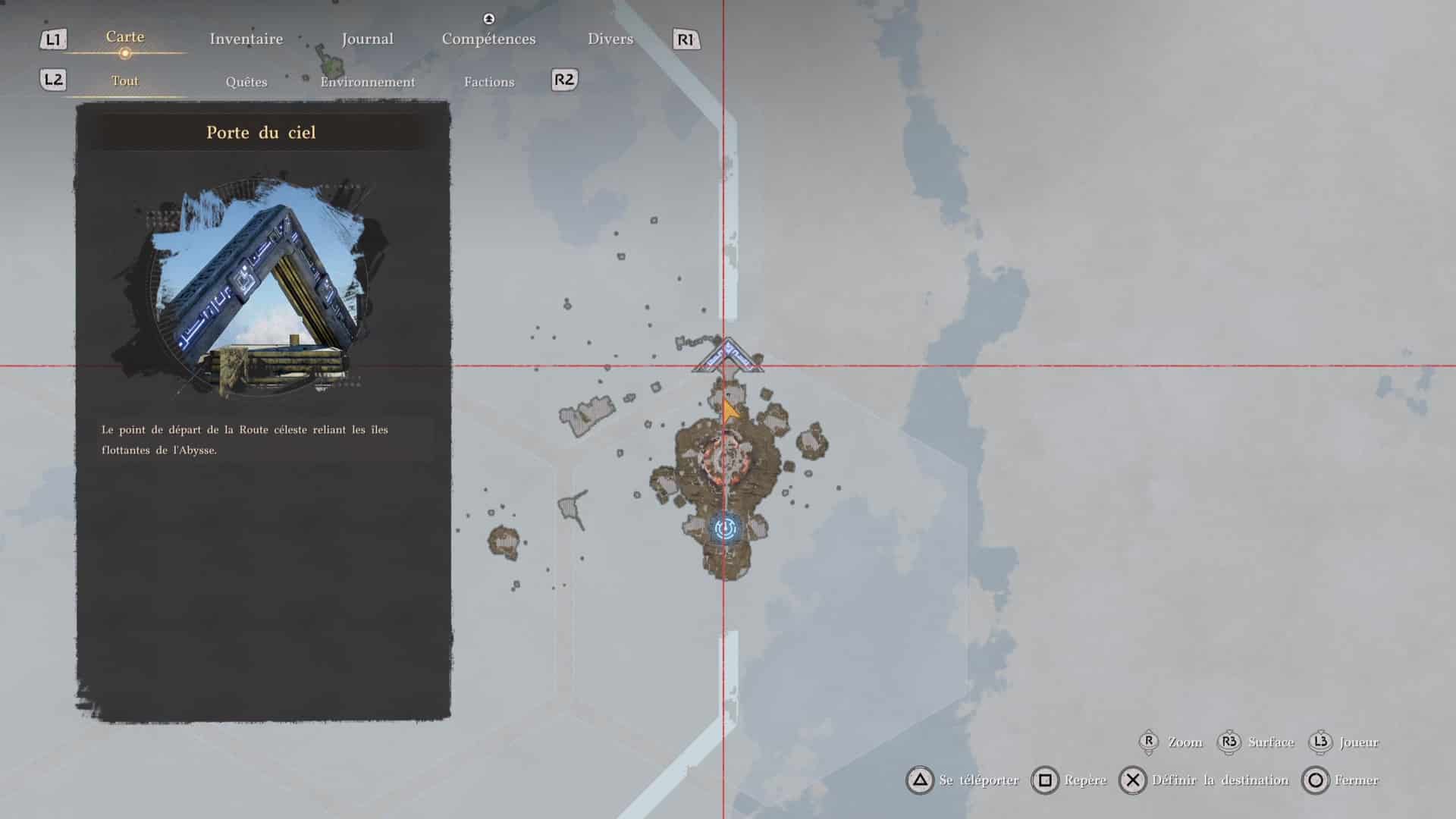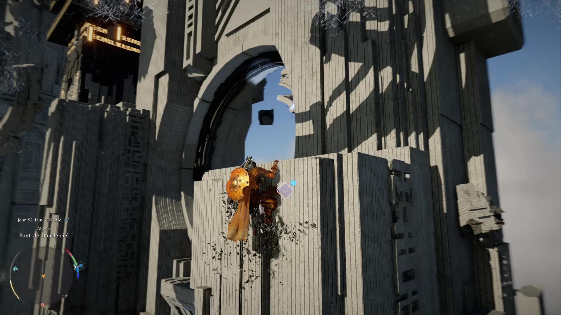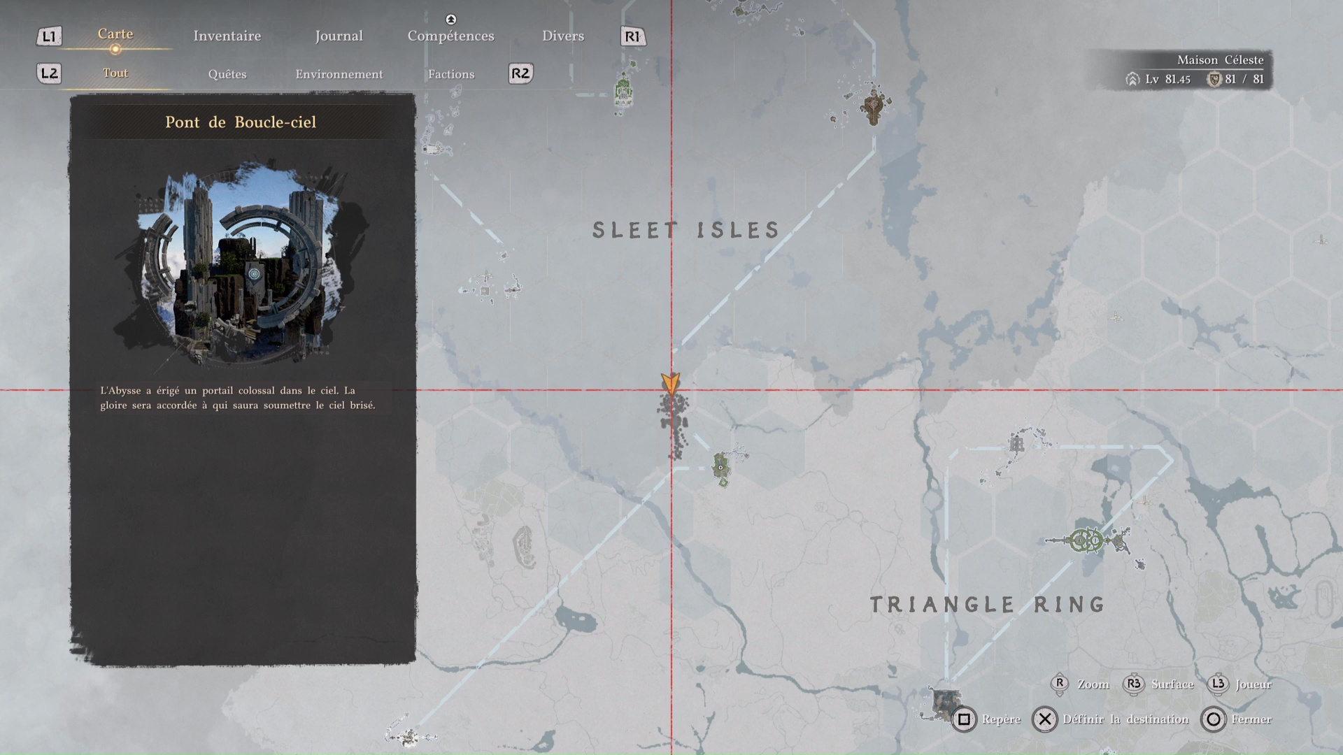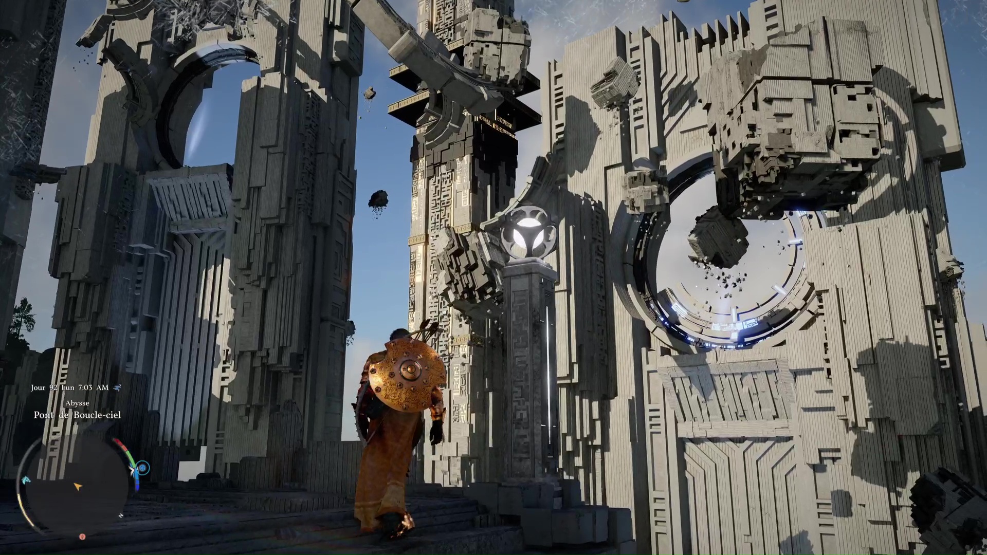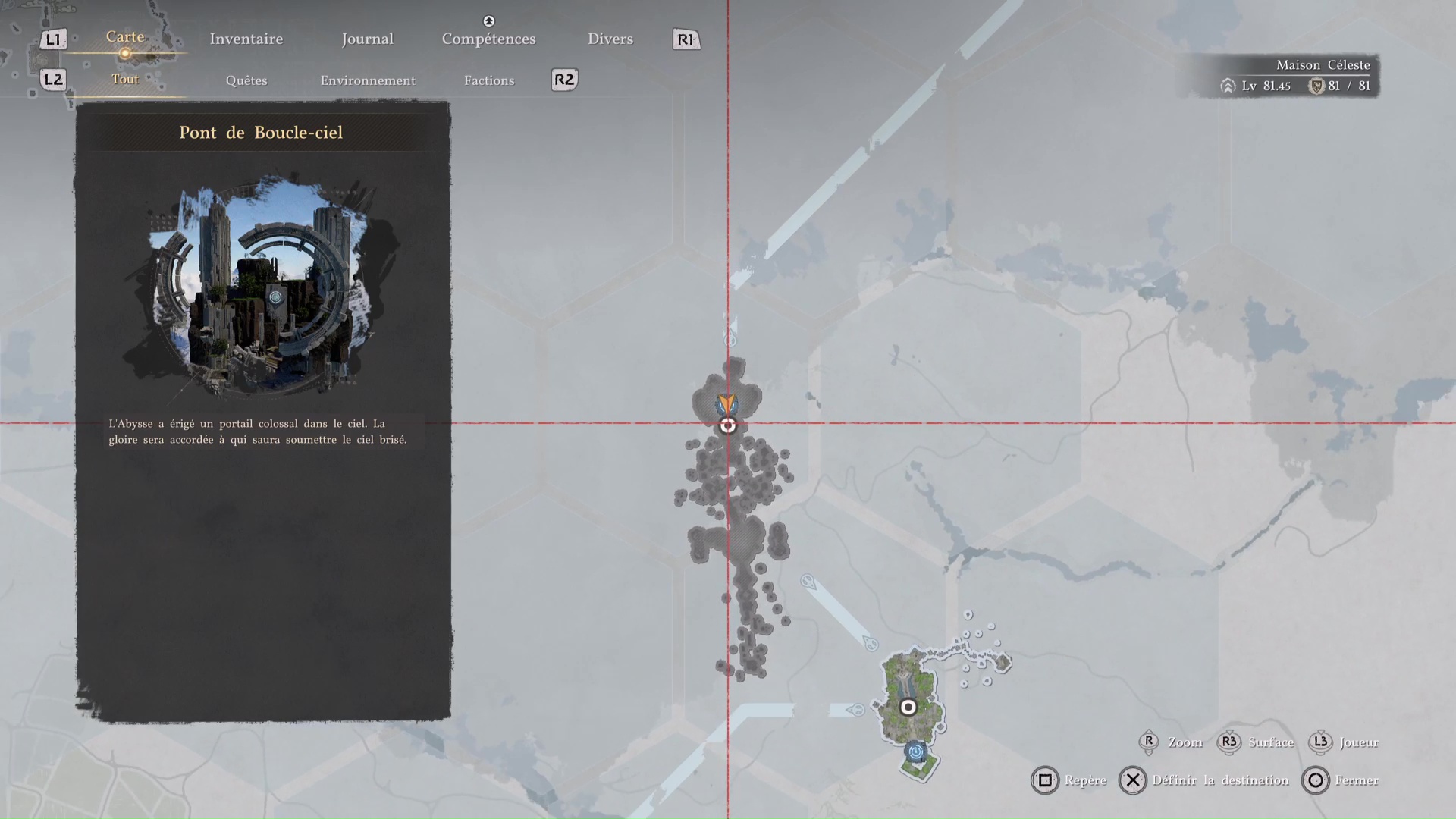 Planez jusqu’au mécanisme, grimpez dessus et, en son centre, réalisez un coup de paume pour l’activer tout en maintenant L2/LT. Le monolithe va se remettre en marche et vous donner accès à l’artefact abyssal de fin de parcours.