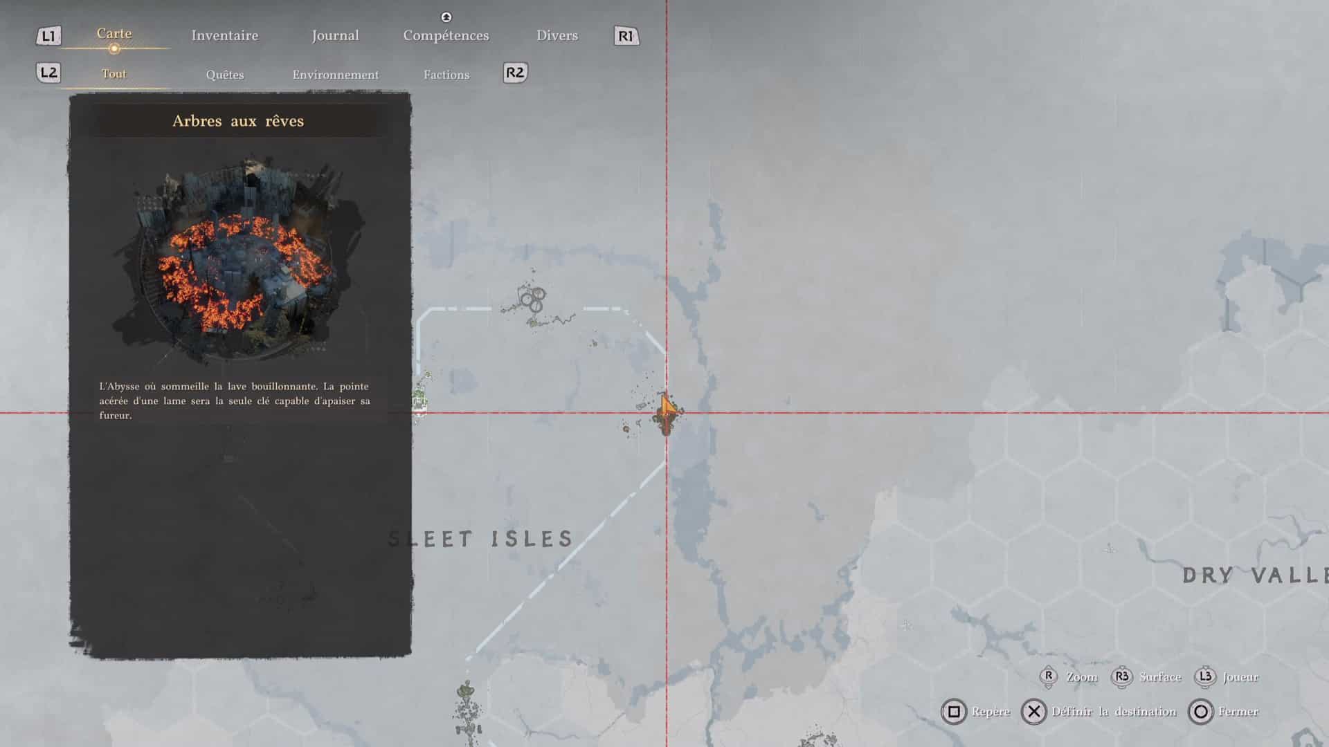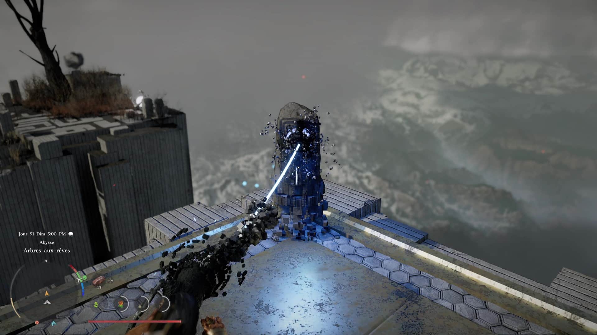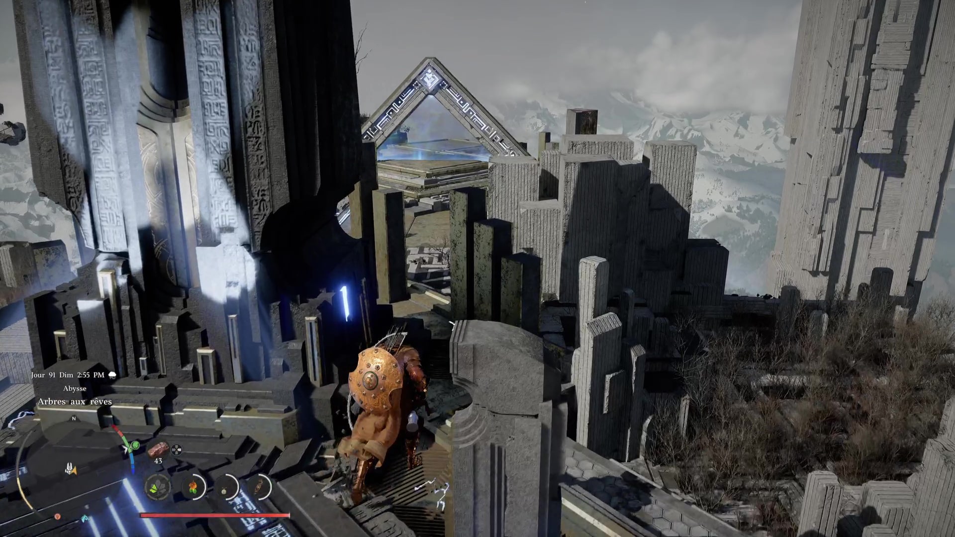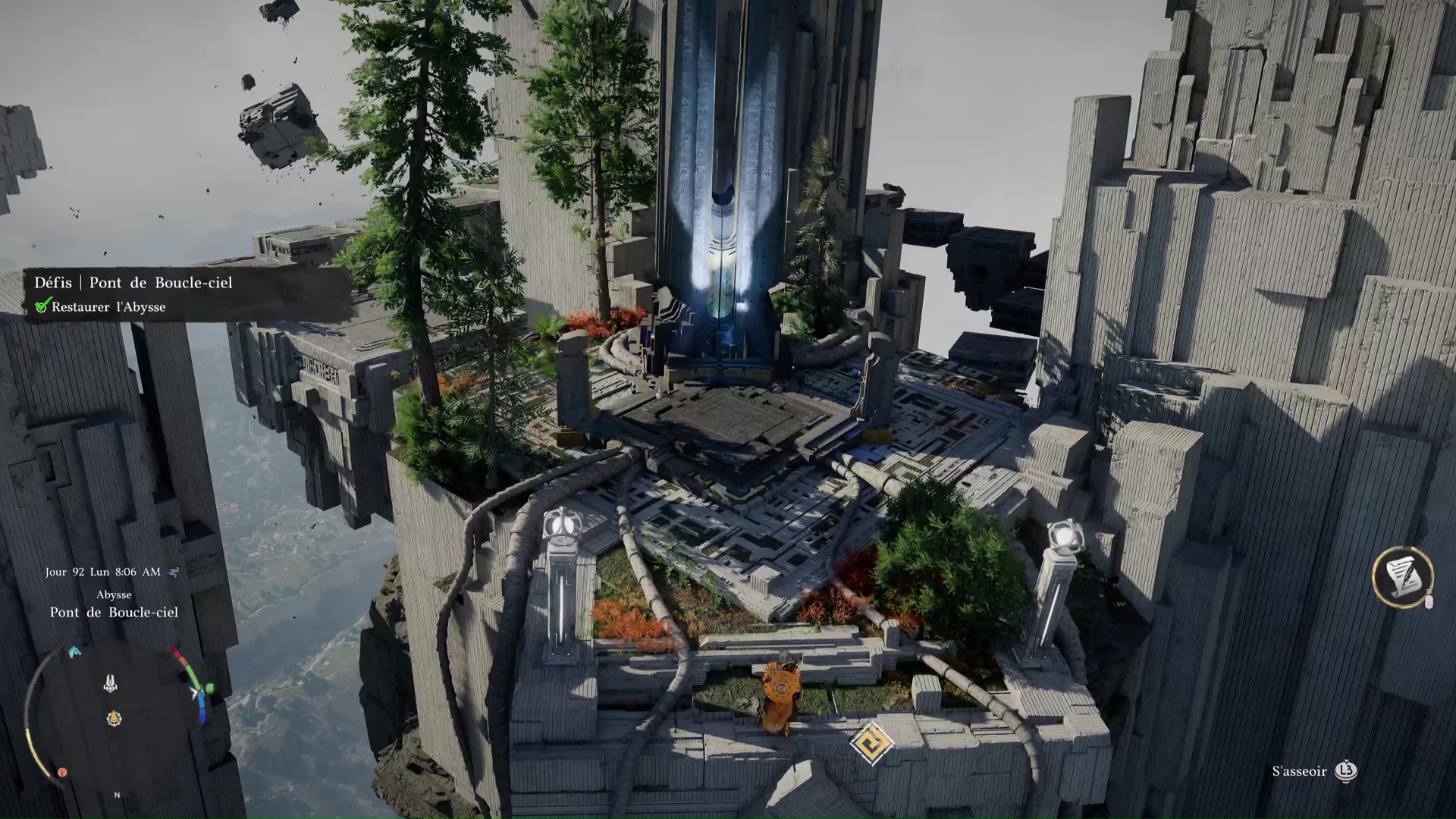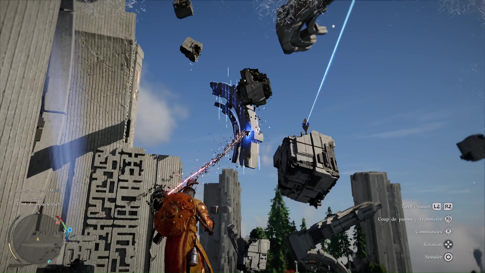 Planez jusqu’au mécanisme, grimpez dessus et, en son centre, réalisez un coup de paume pour l’activer tout en maintenant L2/LT. Le monolithe va se remettre en marche et vous donner accès à l’artefact abyssal de fin de parcours.