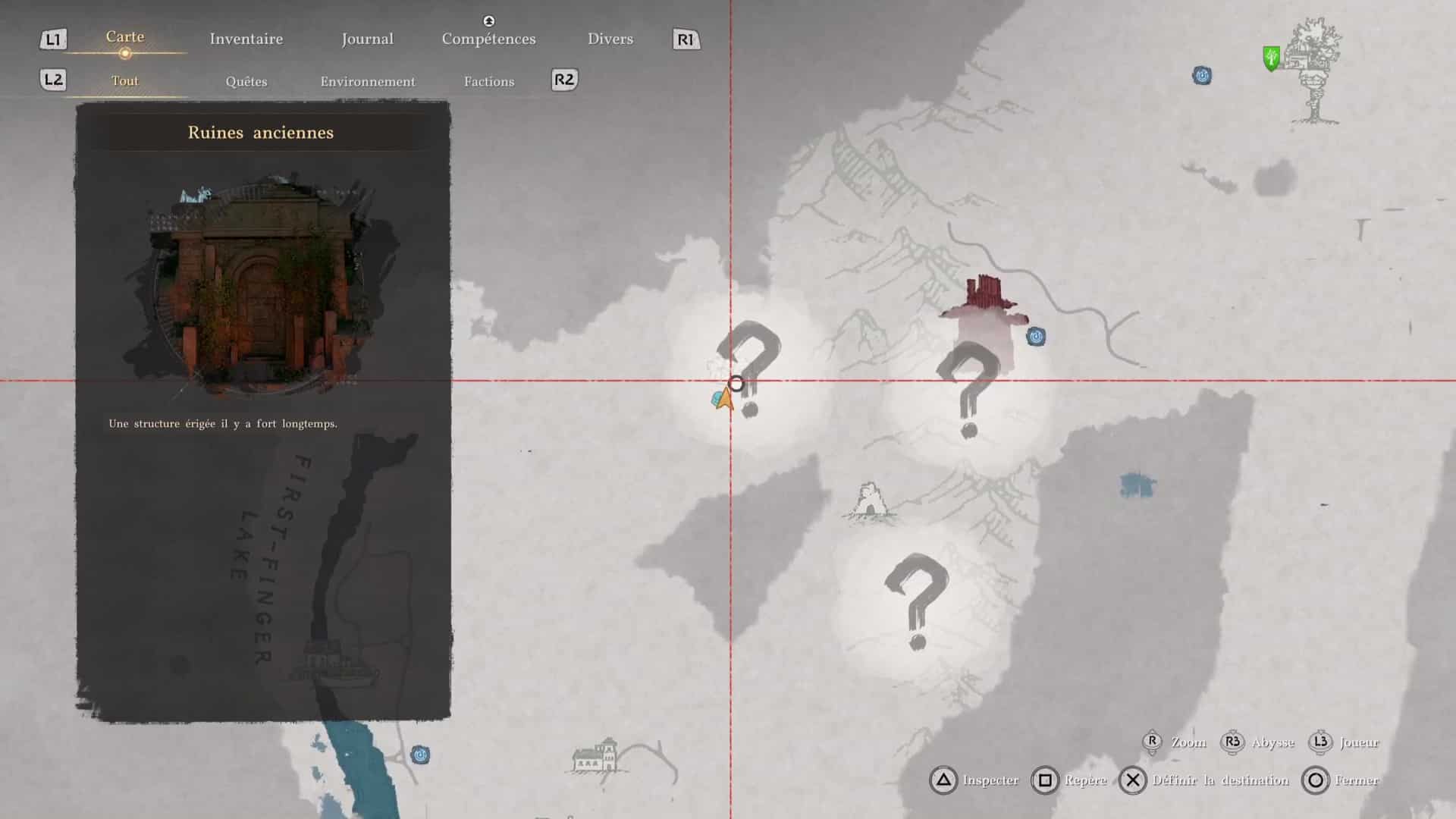 Rendez-vous au nord-ouest du monde ouvert de Crimson Desert, dans la région de Pailune, entre le Cloître de la Ruine et l’inscription « First-Finger Lake » sur la map.