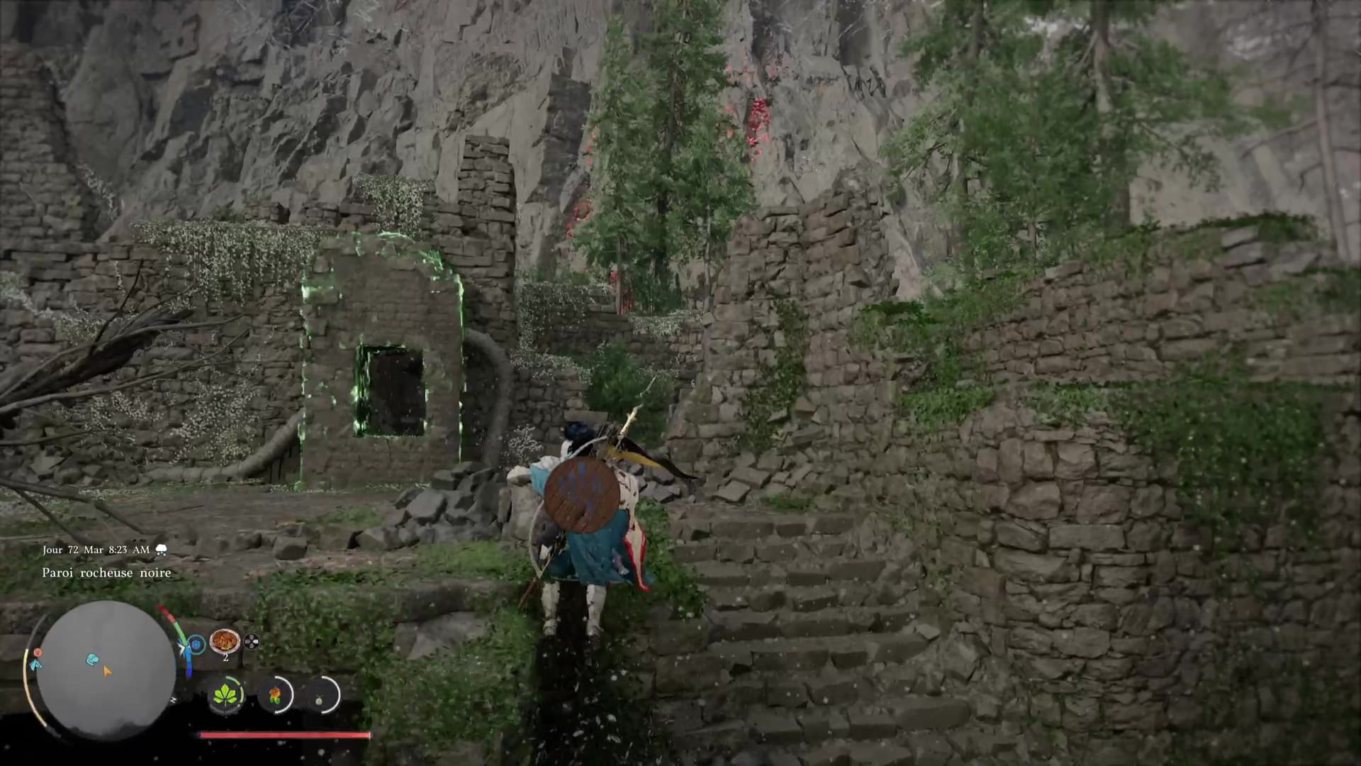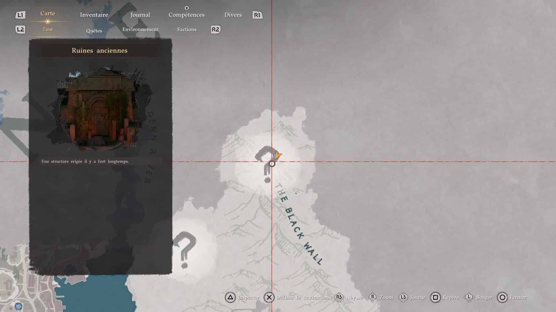 Littéralement dans le secteur de la Paroi rocheuse noire (l’inscription « The Black Wall » sur la map), à l’est de la région de Pailune, vous arriverez devant les Ruines de la Paroi rocheuse noire.