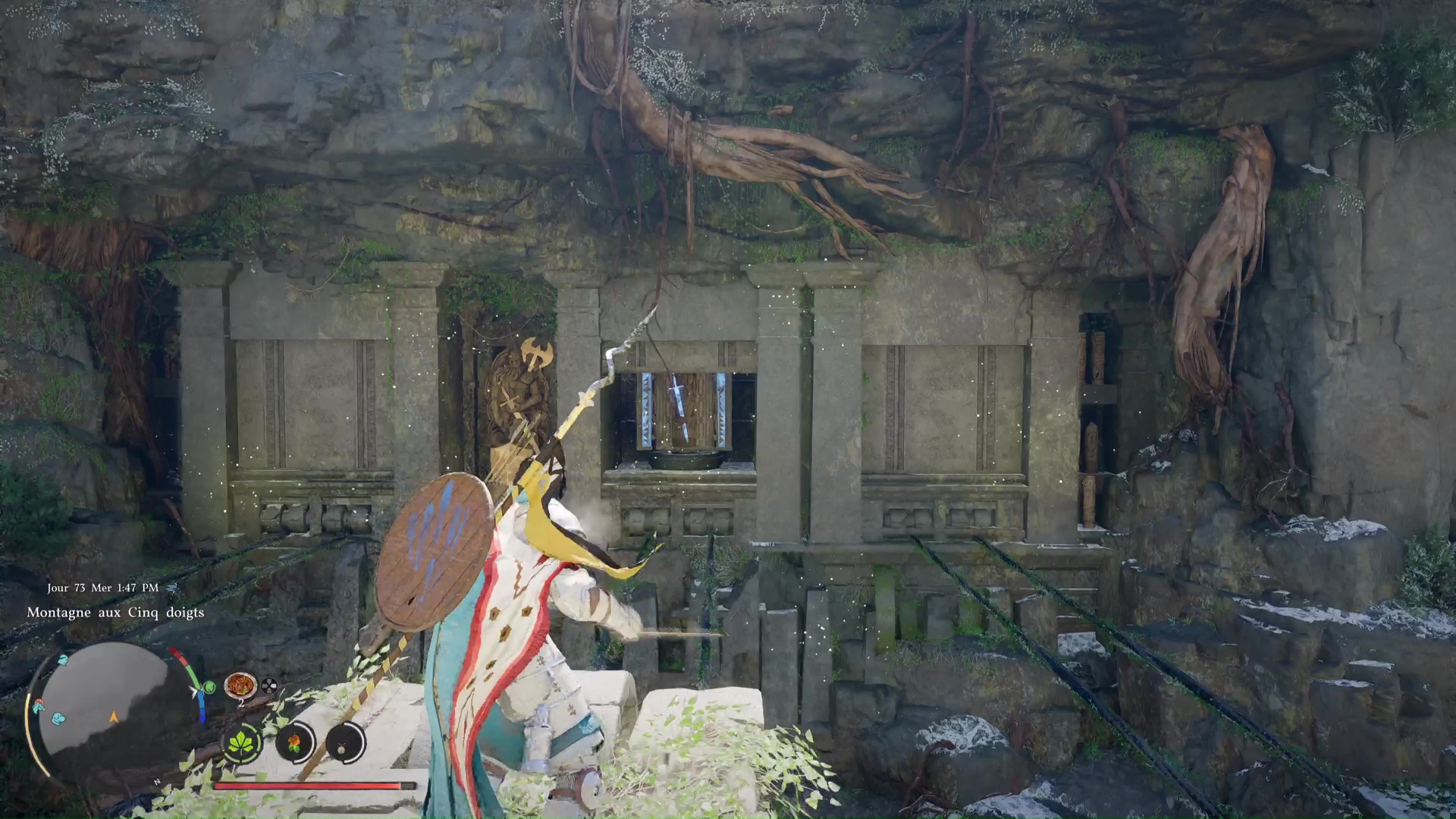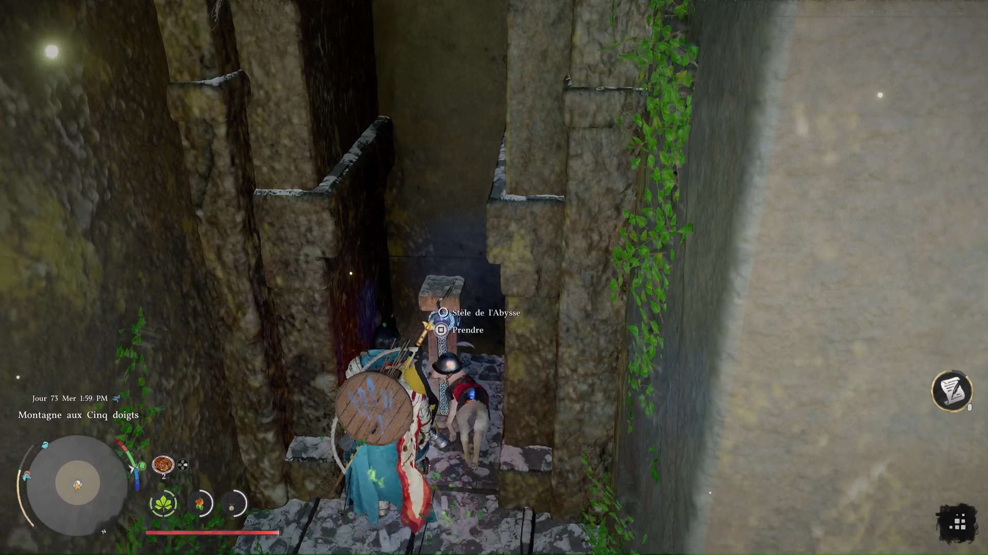Rares sont les Ruines anciennes de Crimson Desert qui demandent de la dextérité et des réflexes pour venir à bout de leur énigme. Les Ruines de la vallée de la Montagne aux Cinq doigts en sont un exemple, et il va falloir à la fois jouer des muscles et sortir son arc pour faire pivoter des symboles. Un puzzle à la résolution un brin poussive, mais on vous explique comment s’en sortir afin d’activer la Stèle d’Abysse.