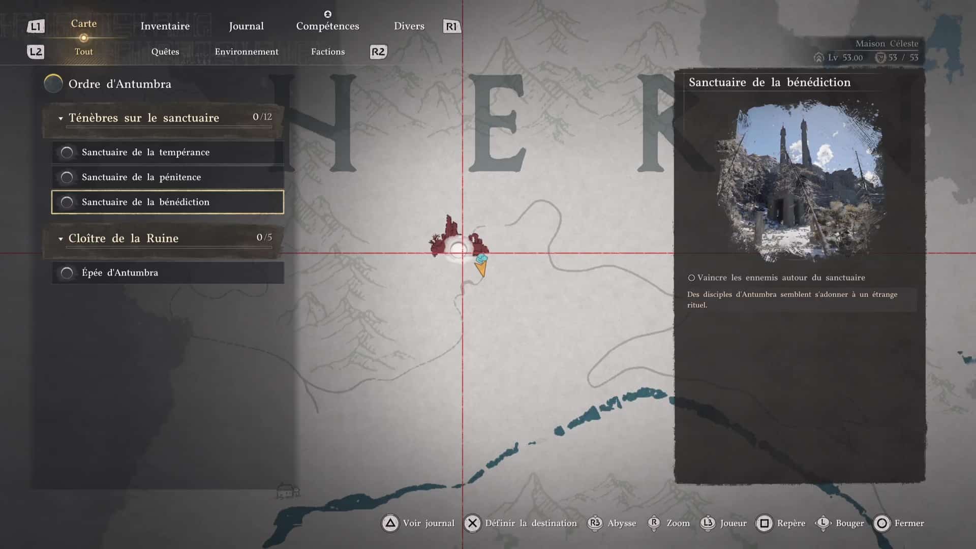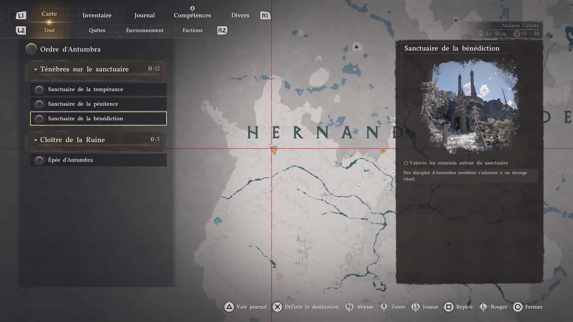 Pour repérer l’emplacement du Sanctuaire de la bénédiction, il faut tout simplement se rendre à quelques dizaines de mètres sous le « E » de Hernand, lorsque l’on regarde la map.