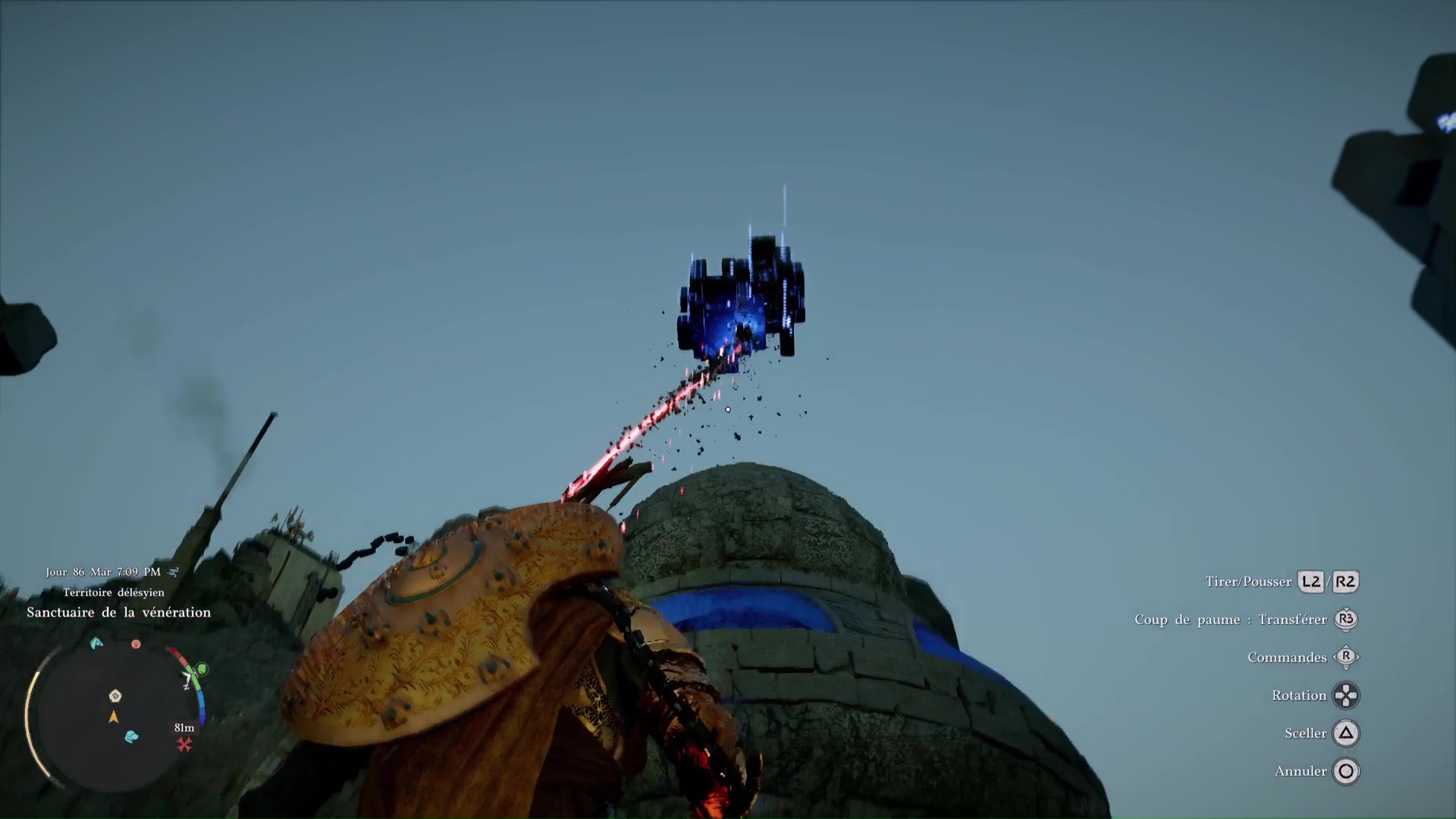 Procédez ainsi jusqu’à éclairer tous les petits points pour faire apparaître l’effigie de la vénération au sommet du réacteur. Vous n’aurez plus qu’à la sceller en utilisant la force axiomatique dessus puis en appuyant sur Triangle/Y.