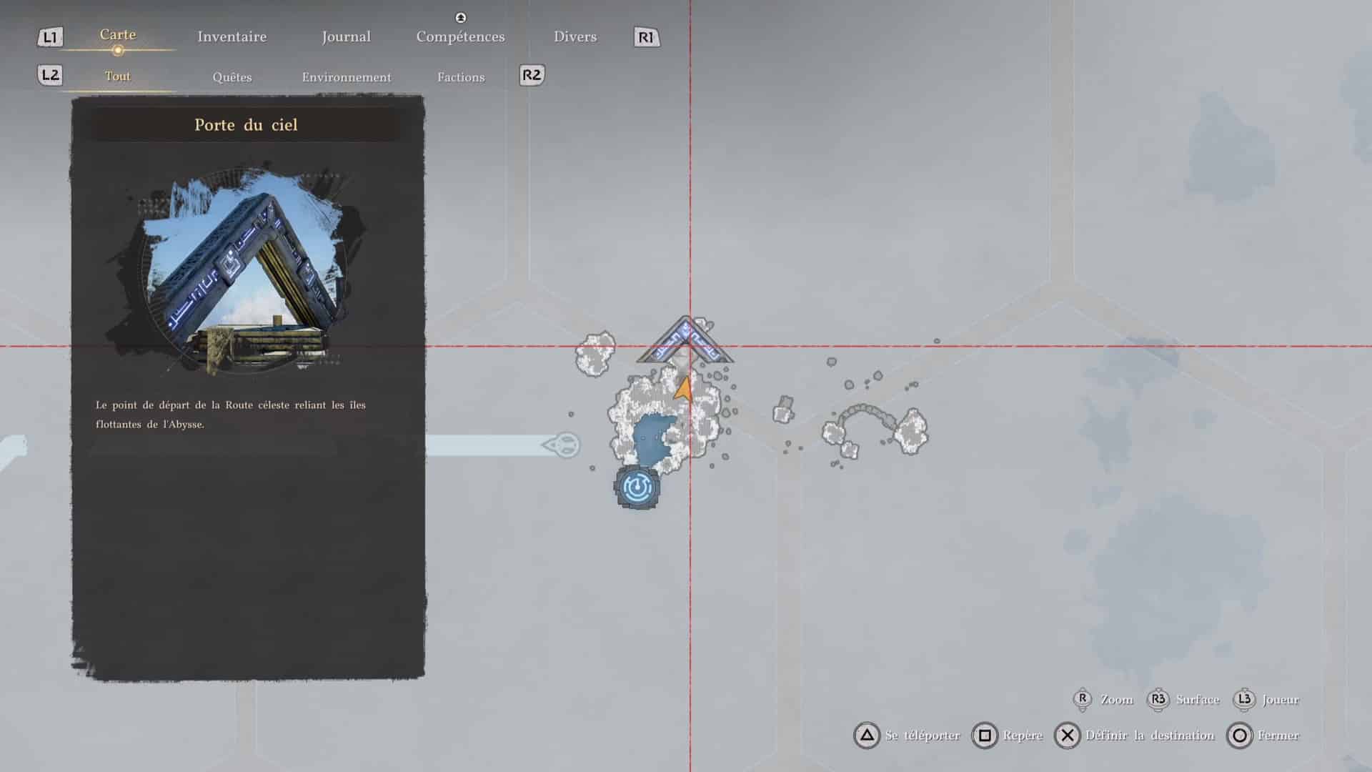 Montez sur quelques plateformes supplémentaires et accéder au niveau supérieur de l’île céleste grâce à une plateforme mobile pour arriver sur la dalle de Nexus abyssal.
