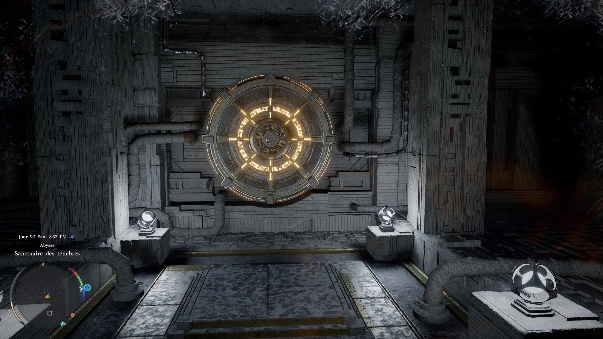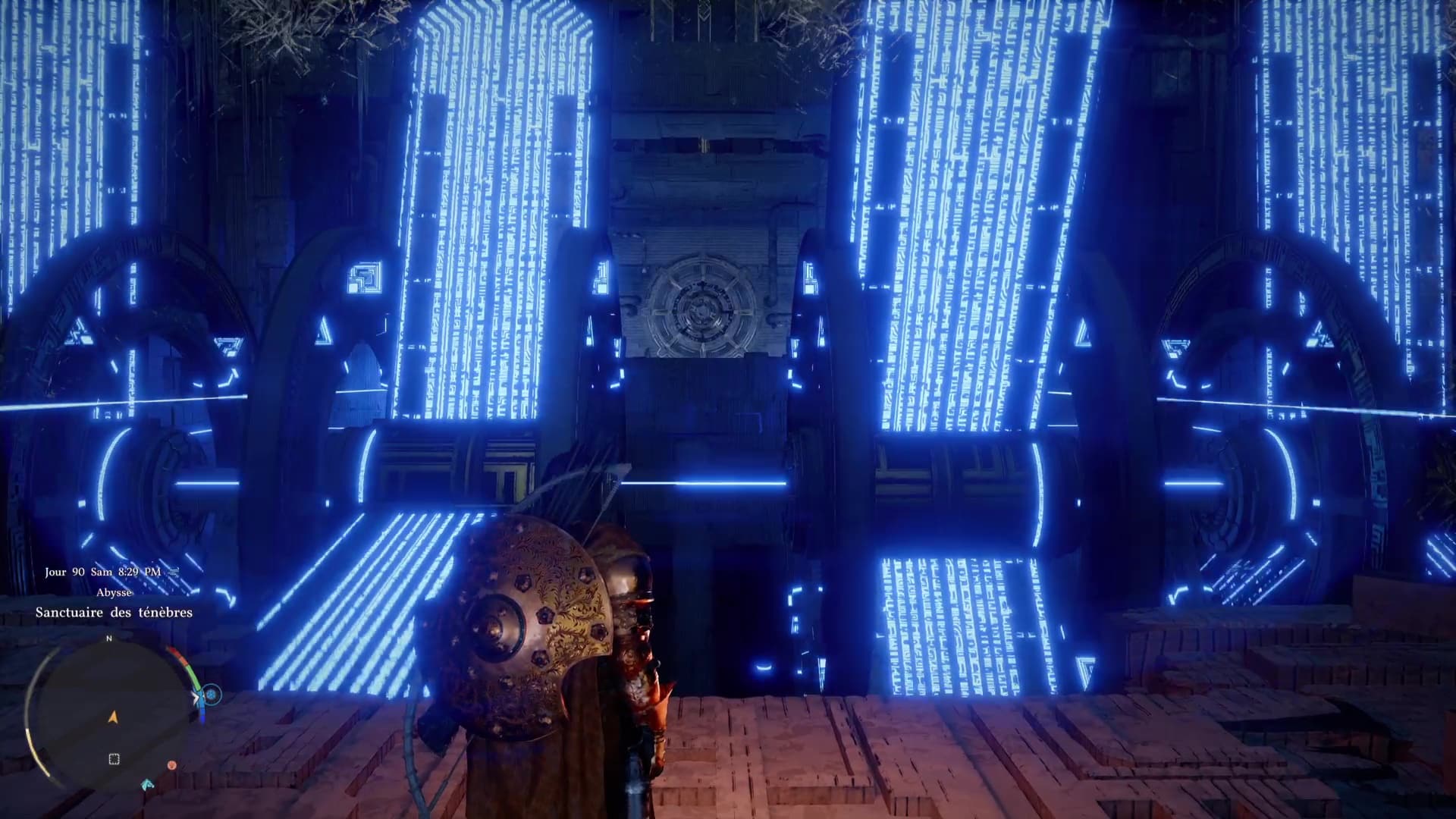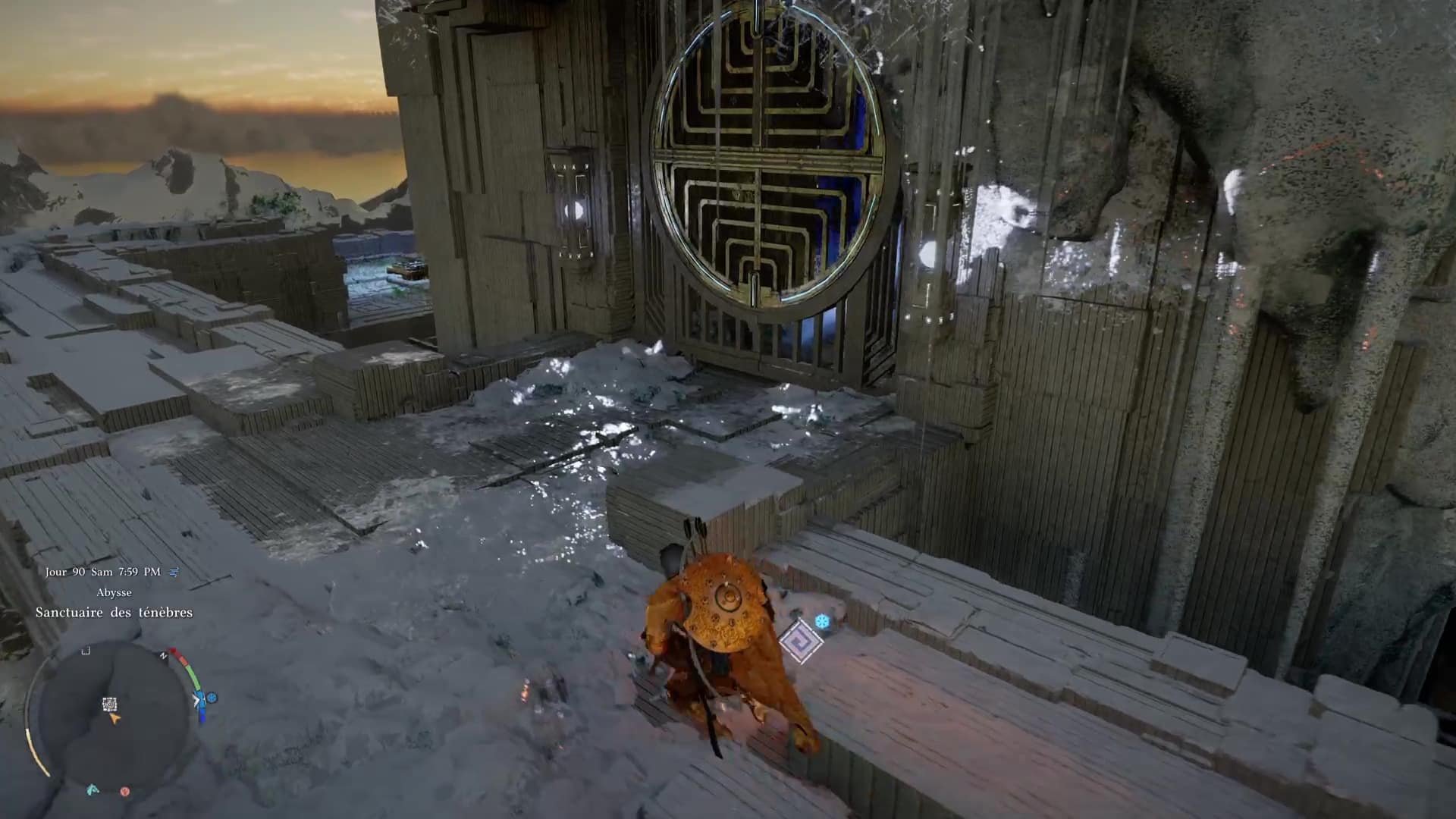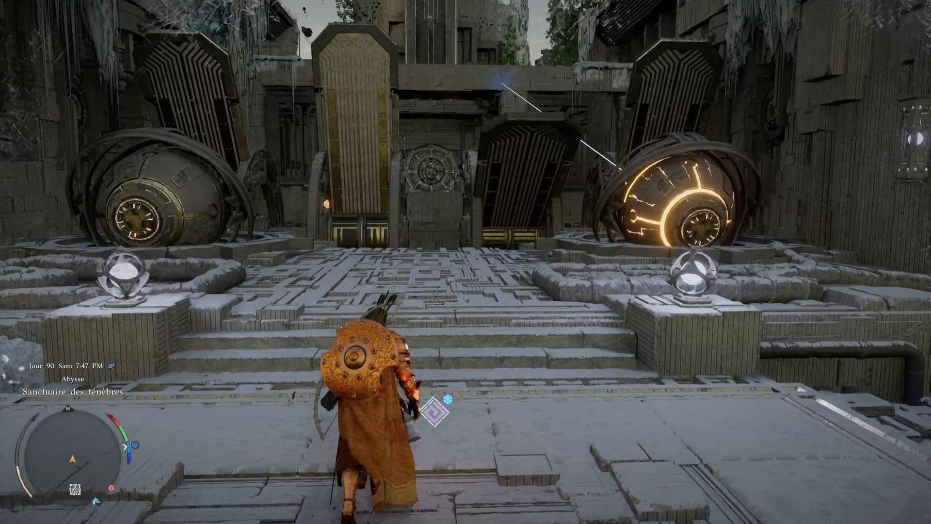 Après avoir bravé le Chemin des épreuves et son froid glacial, direction la Porte du ciel de la zone pour commencer le chemin menant au Sanctuaire des ténèbres. Comme d’habitude, passez à travers pour faire apparaître le mécanisme à tourner avec la force axiomatique (L3/LS).