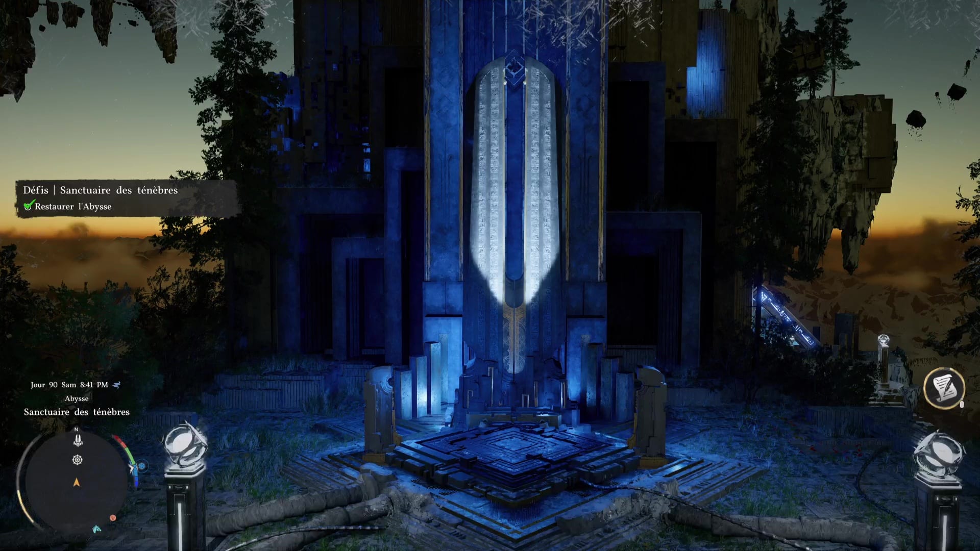 Derrière le monolithe de fin de parcours, vous trouverez la Porte du ciel menant au départ du défi de l’Abysse « Le cycle de la vie ».