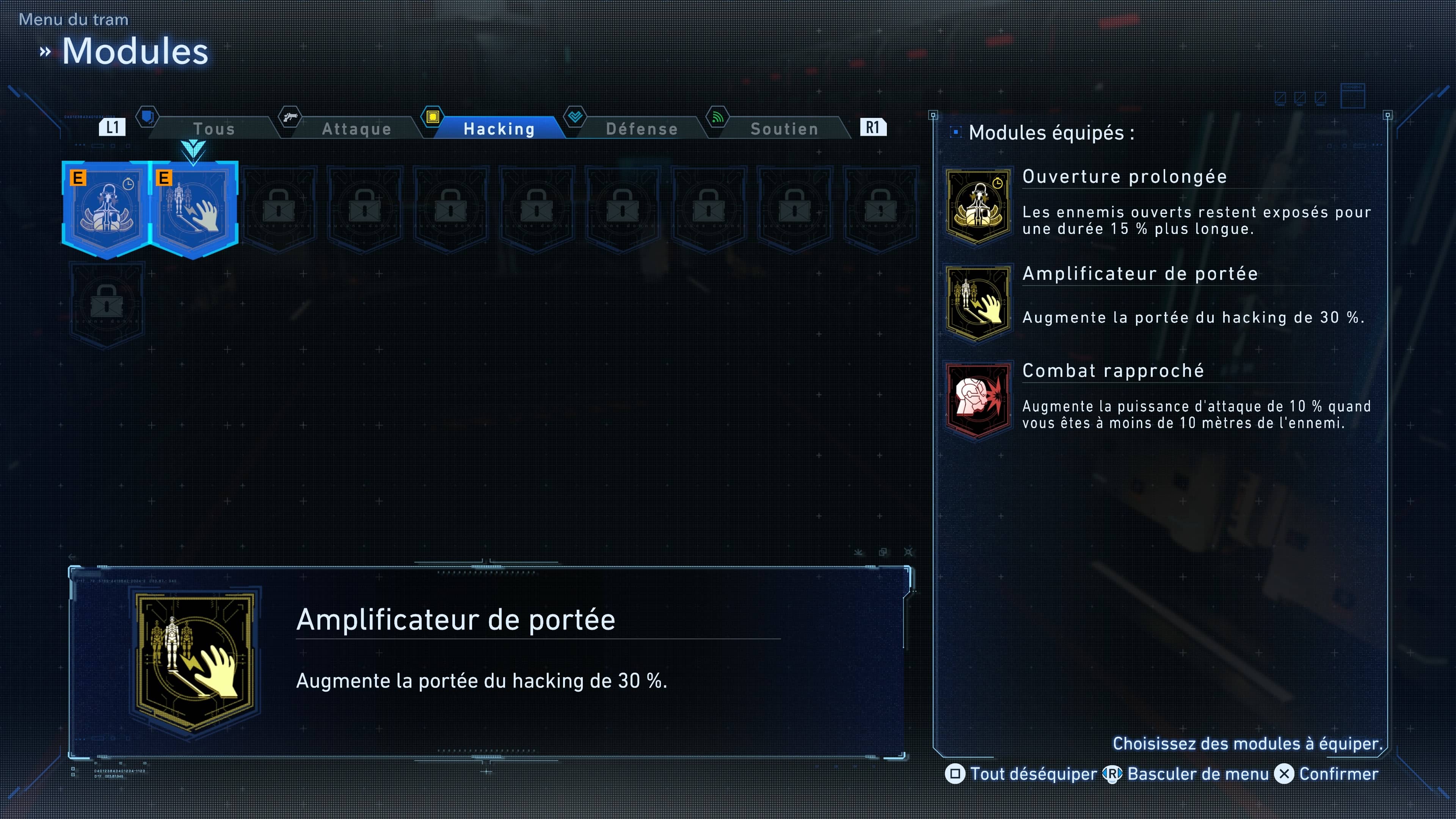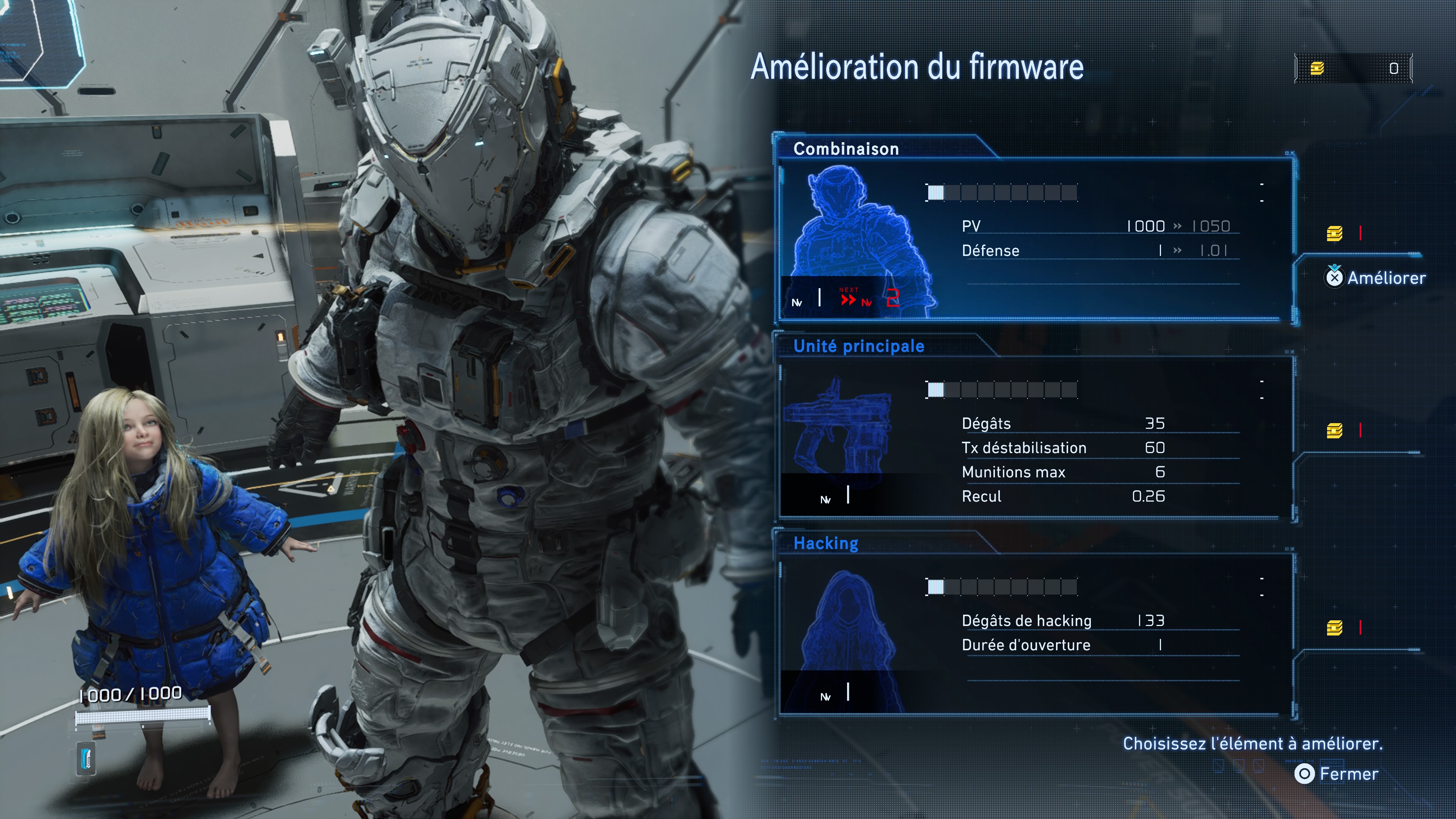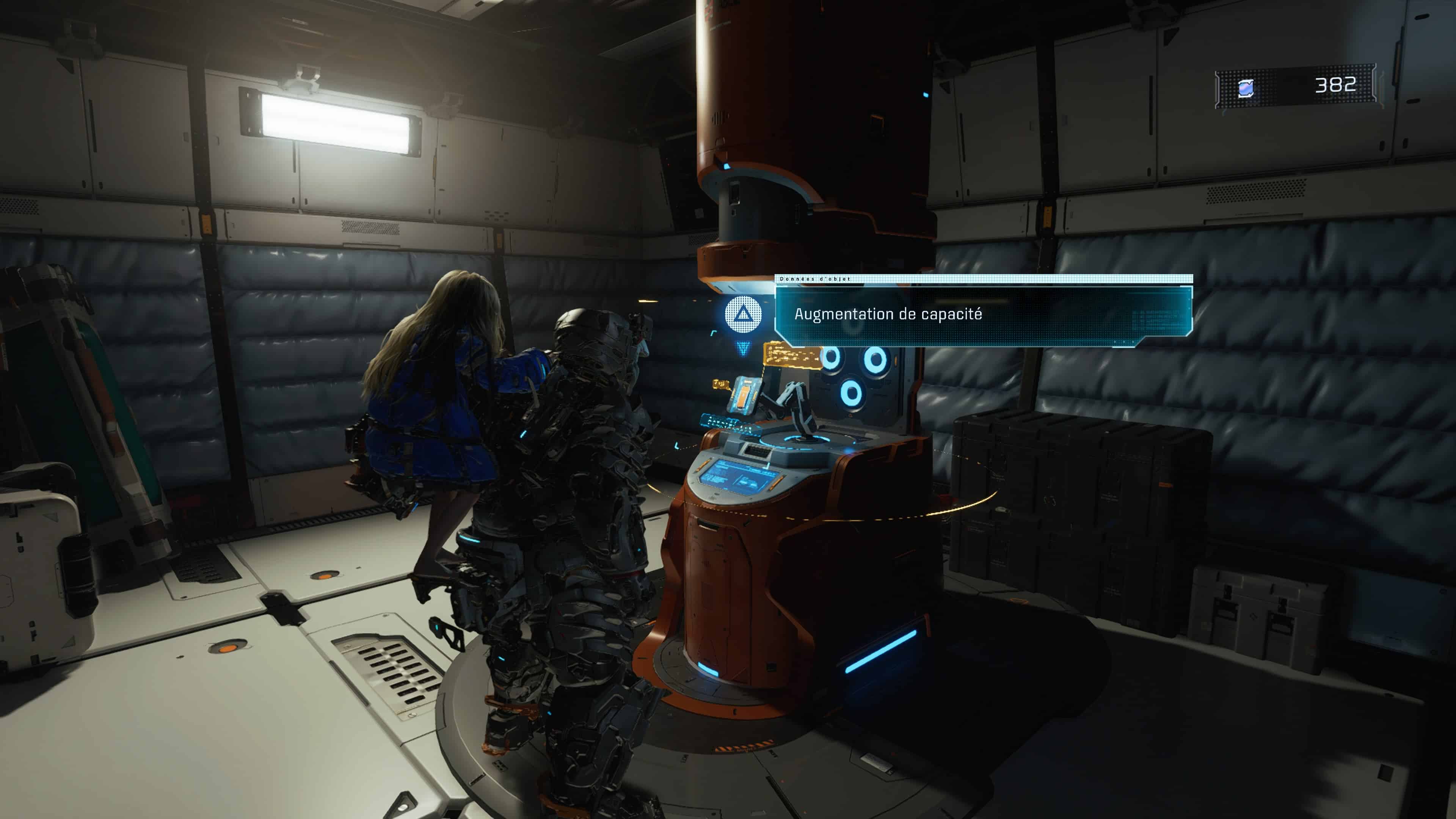 De plus, sachez que vous aurez l’occasion de récupérer des Modules de piratage et des programmes d’Augmentation de capacité en cours de partie. A équiper ensuite à la combinaison de Hugh depuis le menu du Tram au Refuge, les premiers attribueront différents bonus passifs à l’androïde. Quant aux seconds, ils viendront améliorer ses aptitudes de diverses manières.