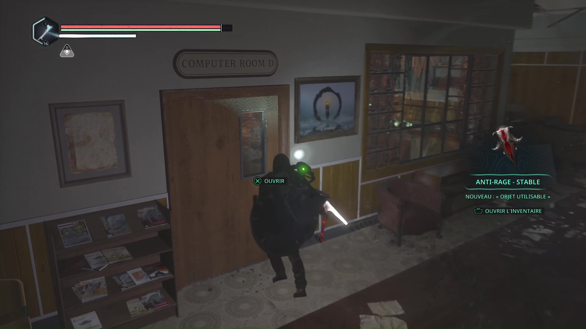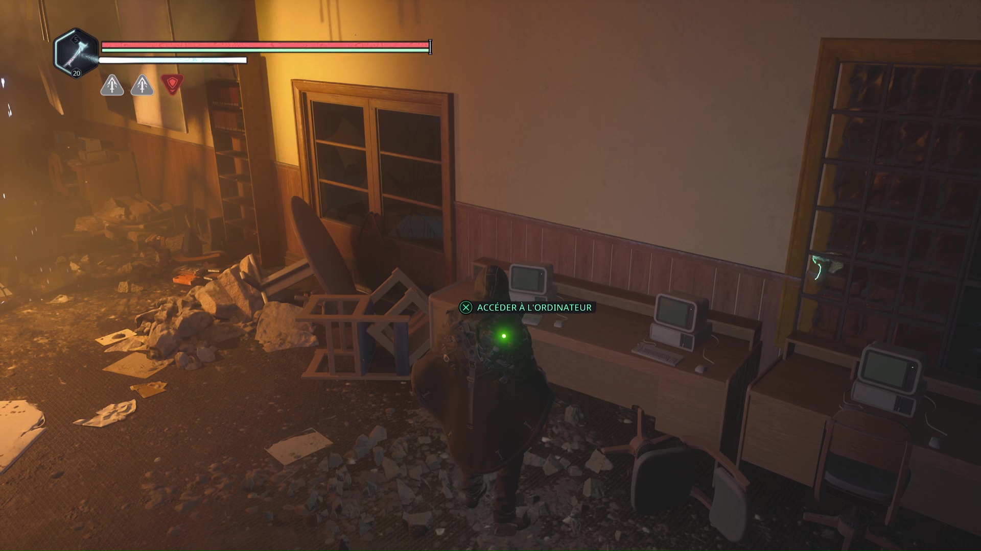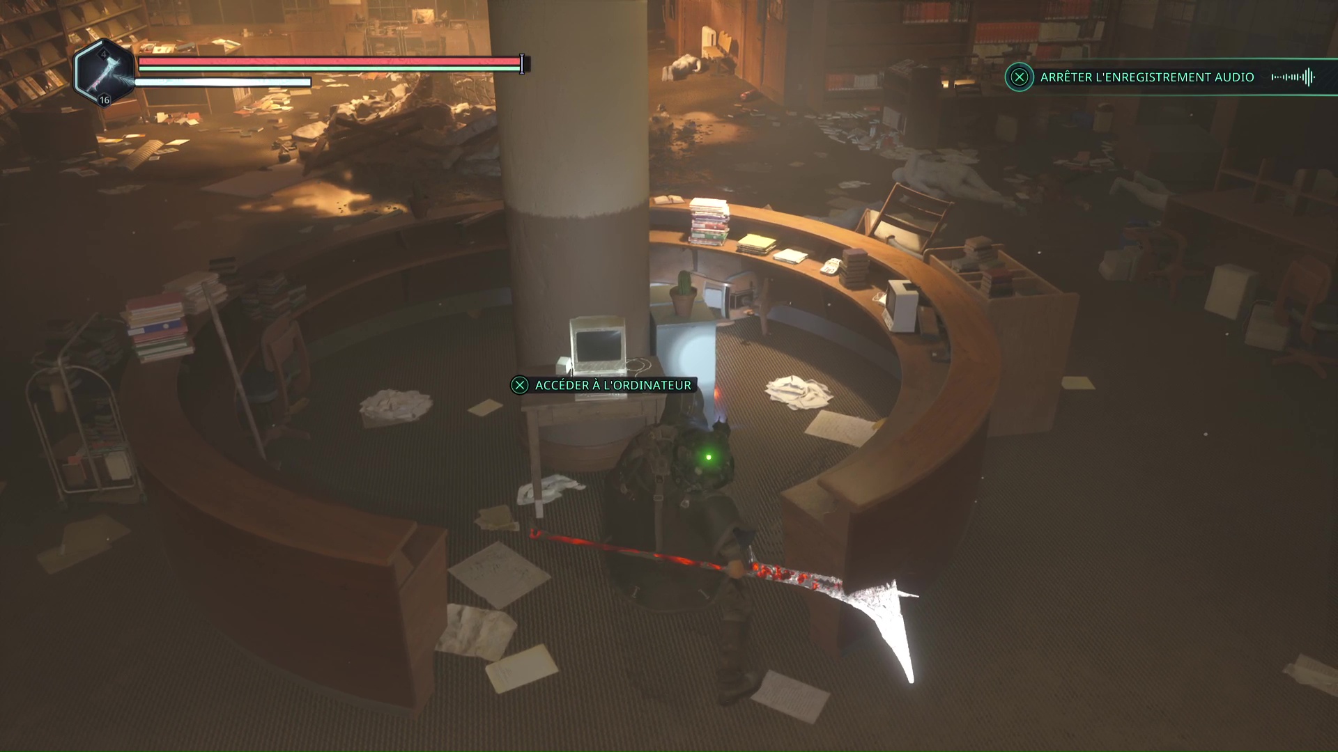 Dans le niveau Lethé – Bibliothèque nationale, vous devrez pénétrer dans la salle principale de la bibliothèque. Pour ce faire, il faut tomber depuis l’étage via un trou béant dans le sol. Une fois arrivé dans la salle, consultez l’ordinateur.