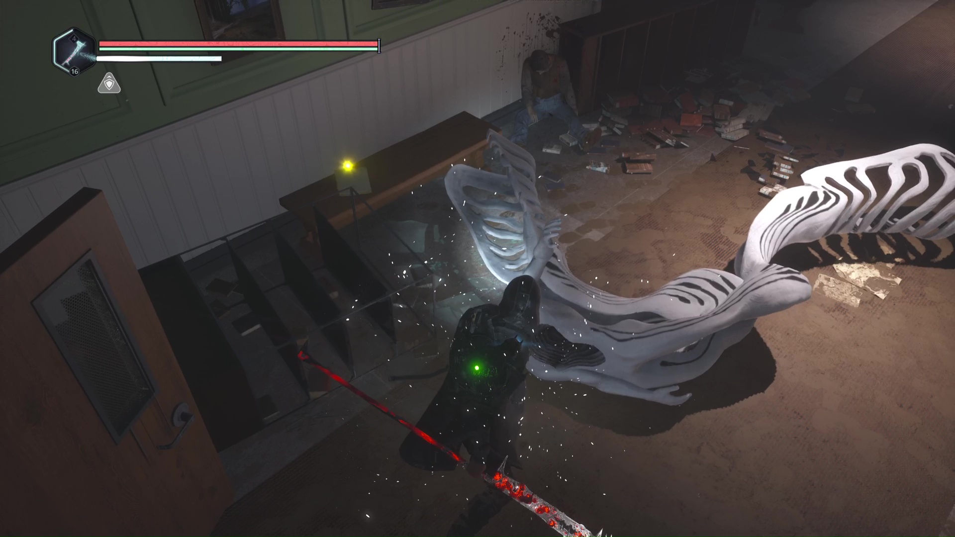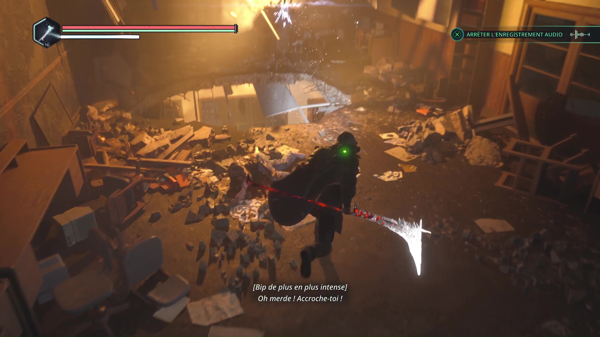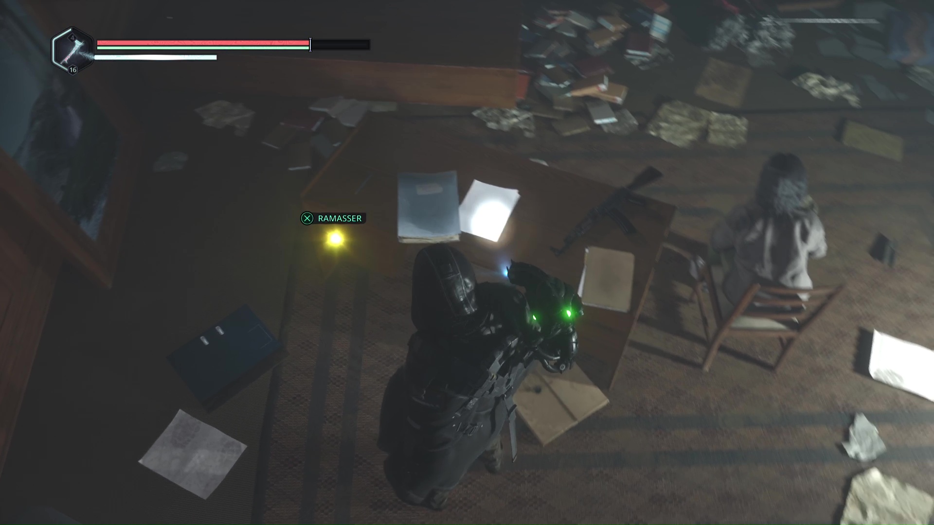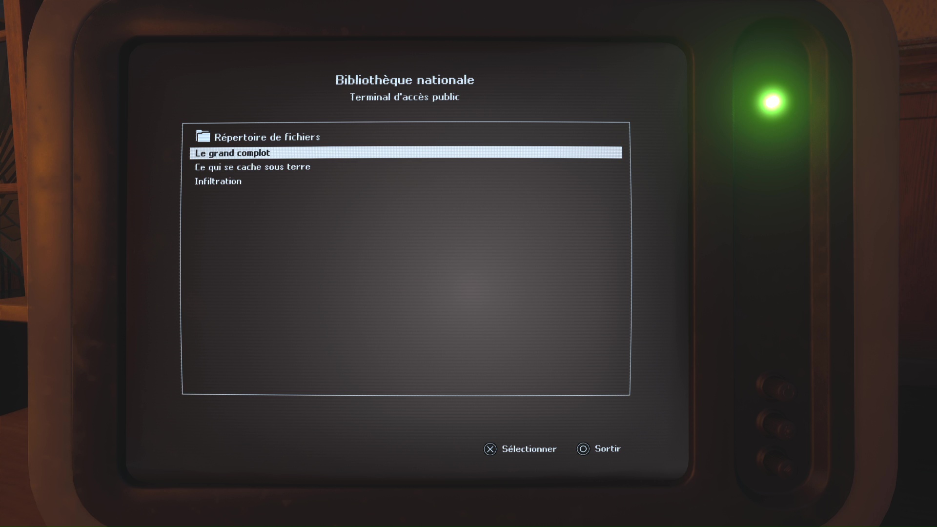 Dans le niveau Lethé – Bibliothèque nationale, vous devrez pénétrer dans la salle principale de la bibliothèque. Pour ce faire, il faut tomber depuis l’étage via un trou béant dans le sol. Une fois arrivé dans la salle, consultez l’ordinateur.