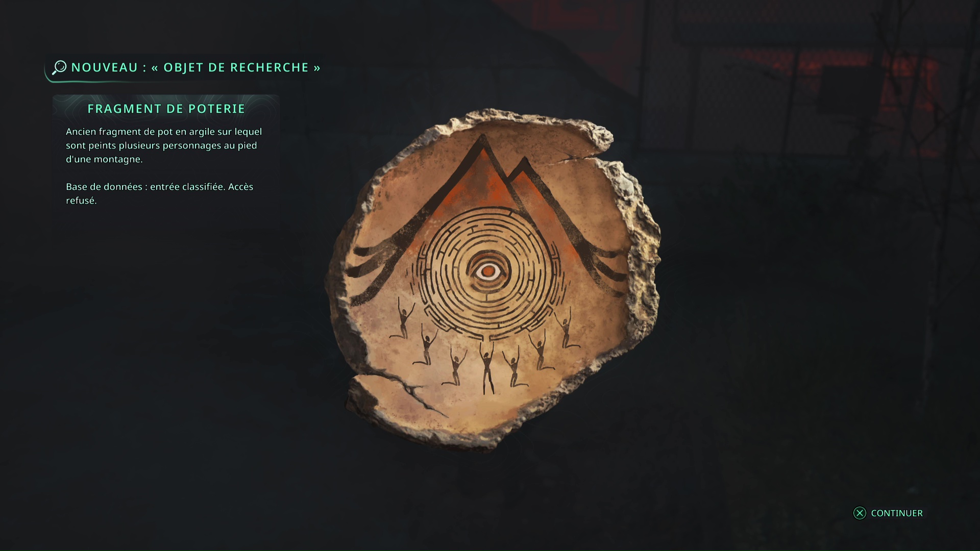 A présent, quittez le bâtiment et revenez au parking. Dans le coin inférieur droit du parking, lorsque vous faites face au bâtiment, il y a une voiture bleue isolée. Approchez du coffre et insérez les Clés – Voiture pour récupérer à l’intérieur la Casquette – Extase et l’objet de recherche Fragment de poterie. Le mystère est terminé.
