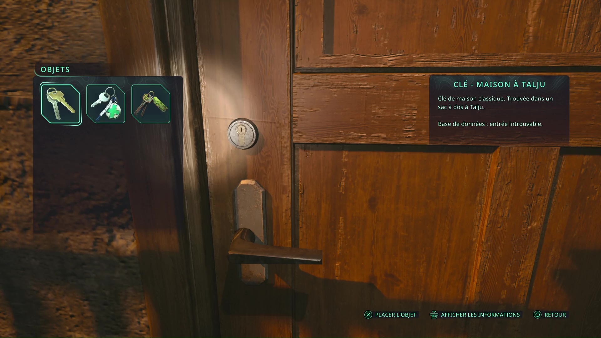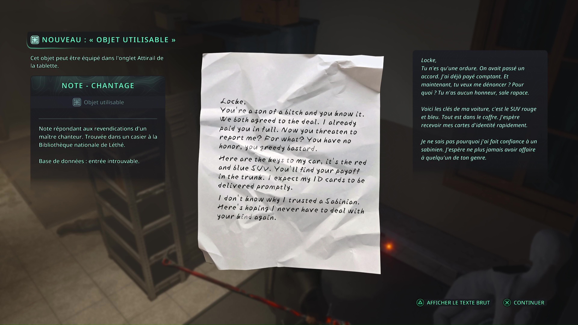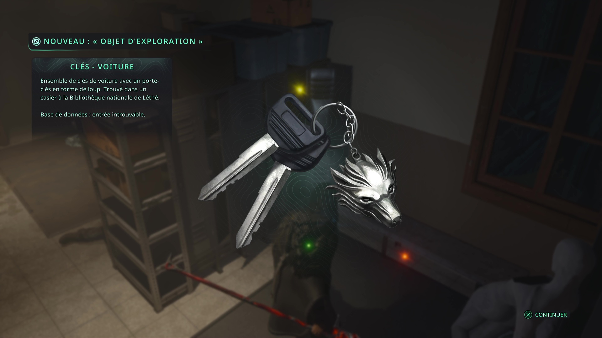 Ensuite, remarquez l’objet brillant doré dans un casier ouvert. Il s’agit d’une Note – Chantage et de Clés – Voiture.