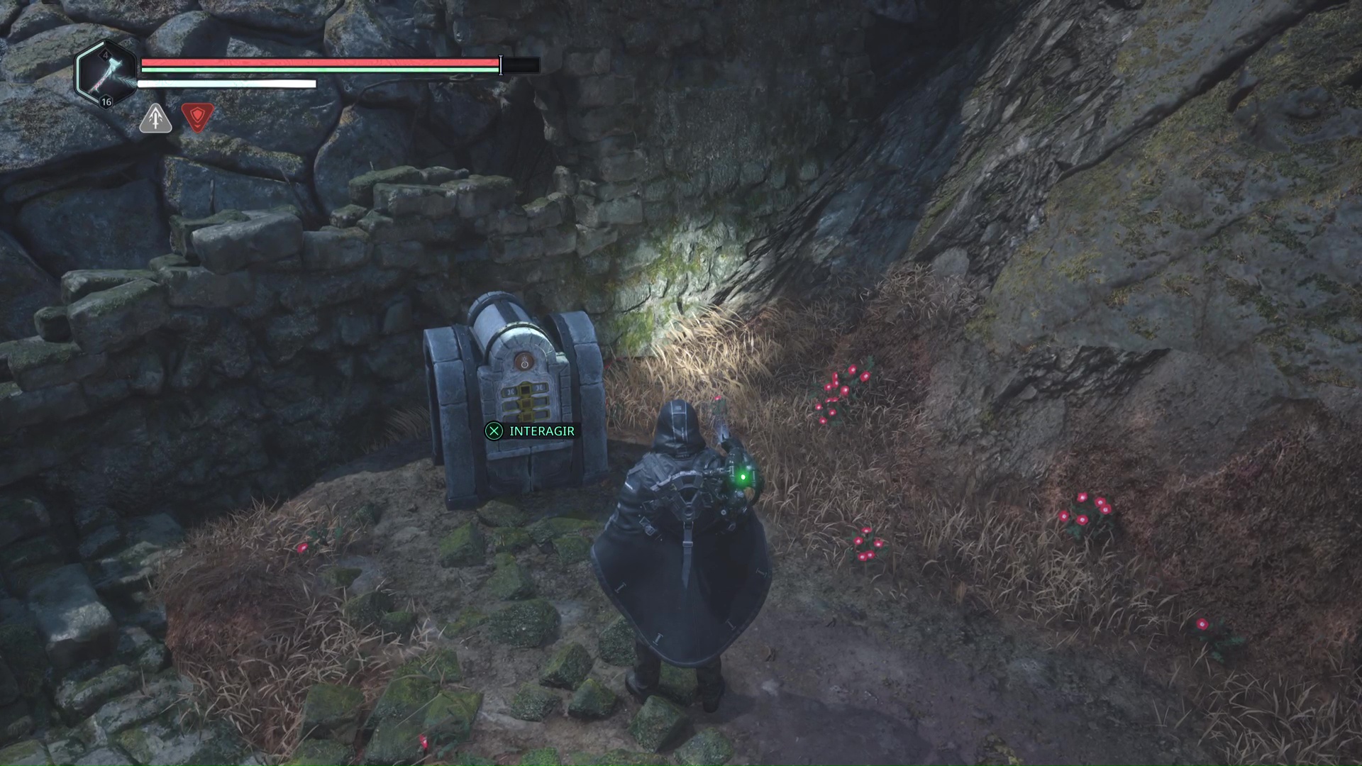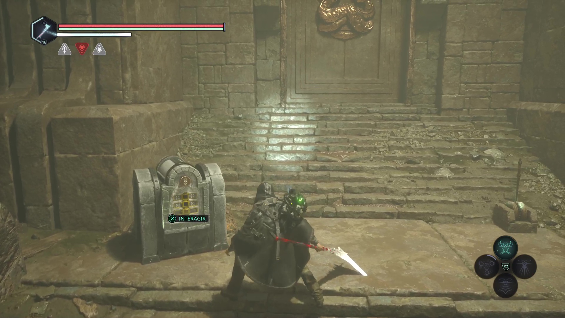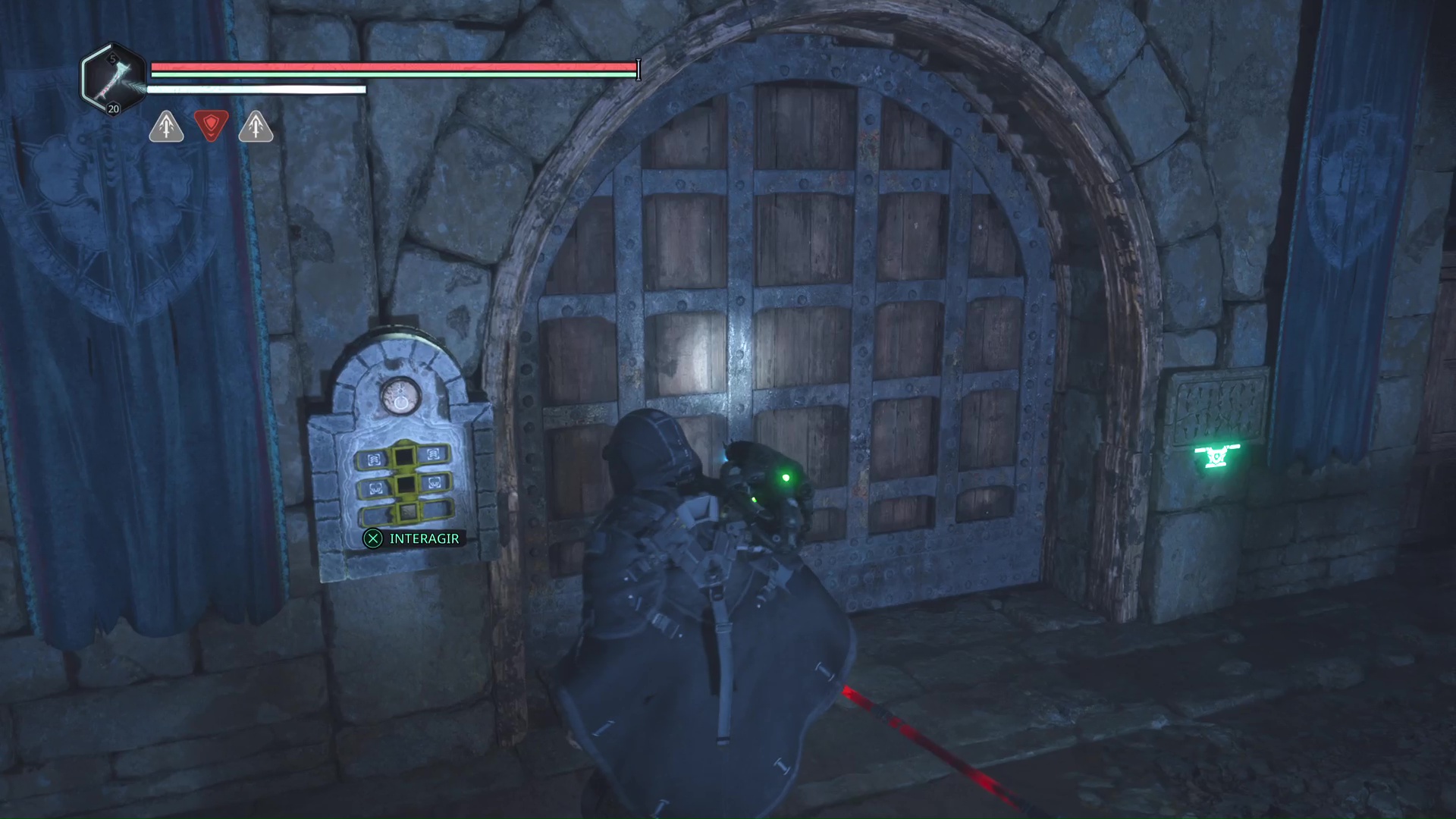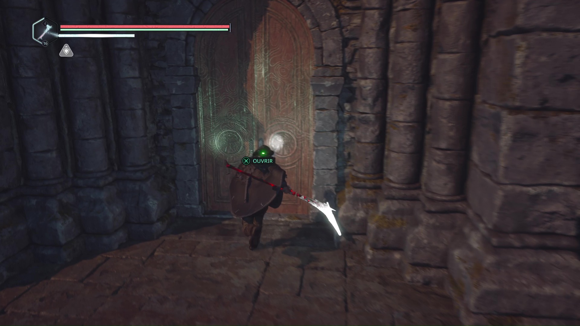 Les deux médaillons en votre possession, revenez devant la porte secrète dans les souterrains. Placez le Médaillon Bélier – Émeraude sur l’emplacement de gauche et le Médaillon Bélier – Pourpre sur celui de droite pour que la porte s’ouvre. Faites attention à l’Hollow Walker qui en surgit.