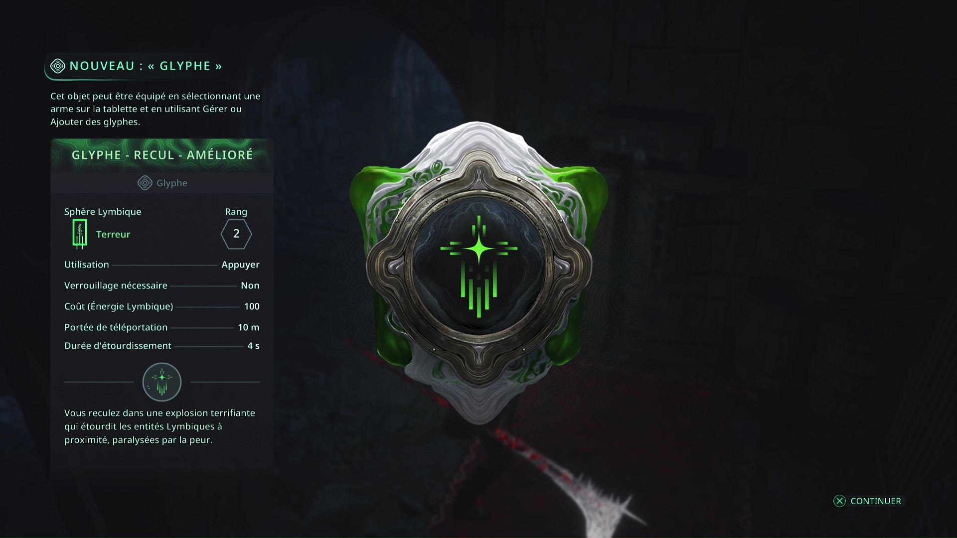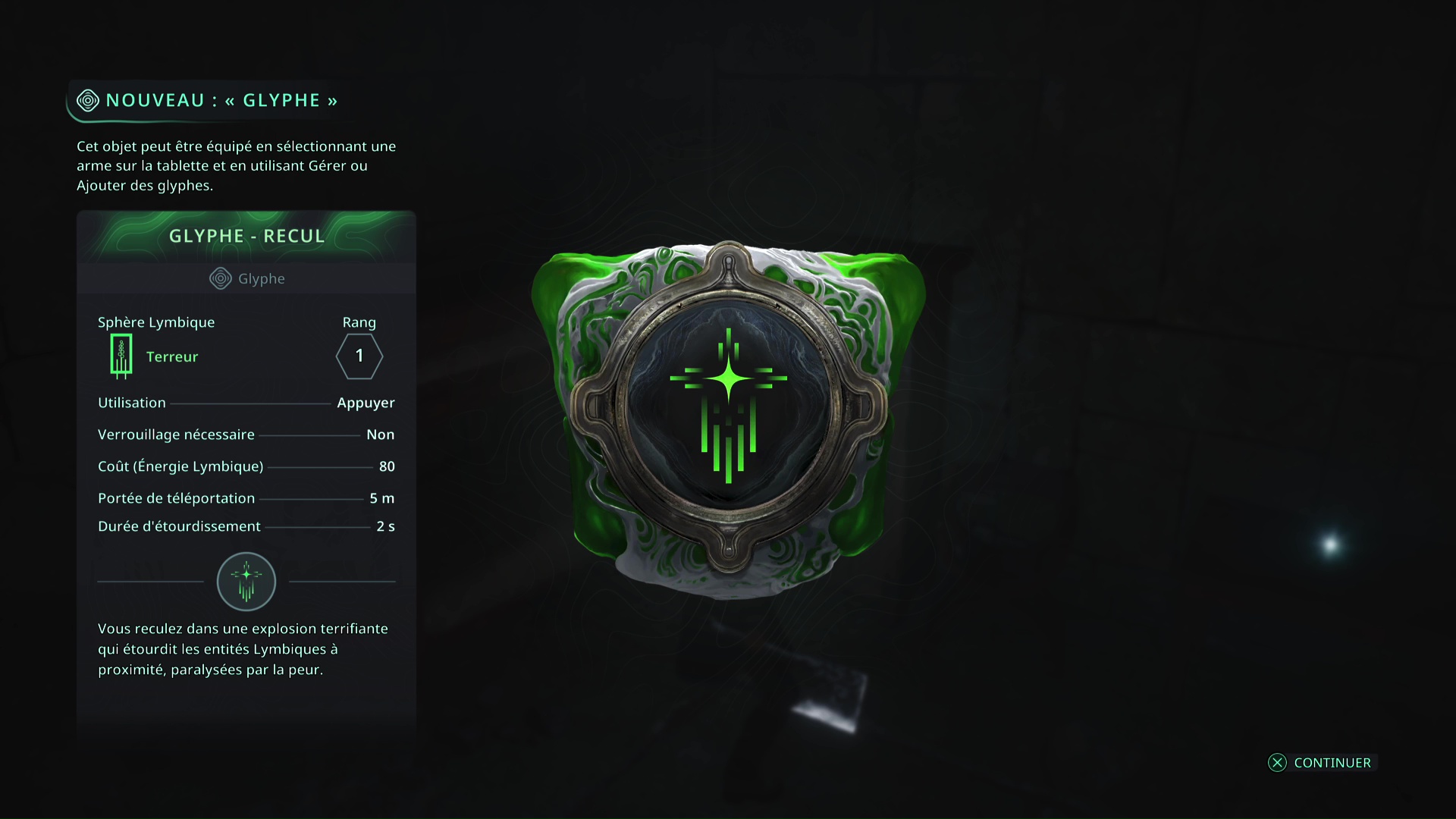 Le mystère est désormais résolu, et vous pourrez notamment mettre la main sur un Glyphe vert – Recul (Rang 1).