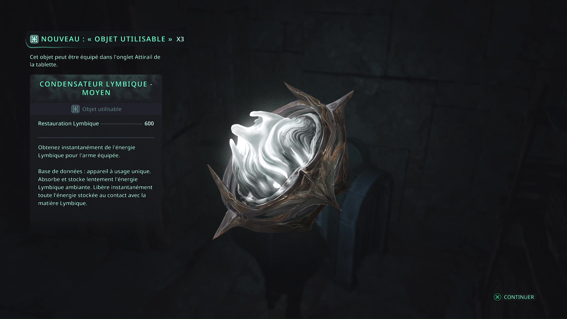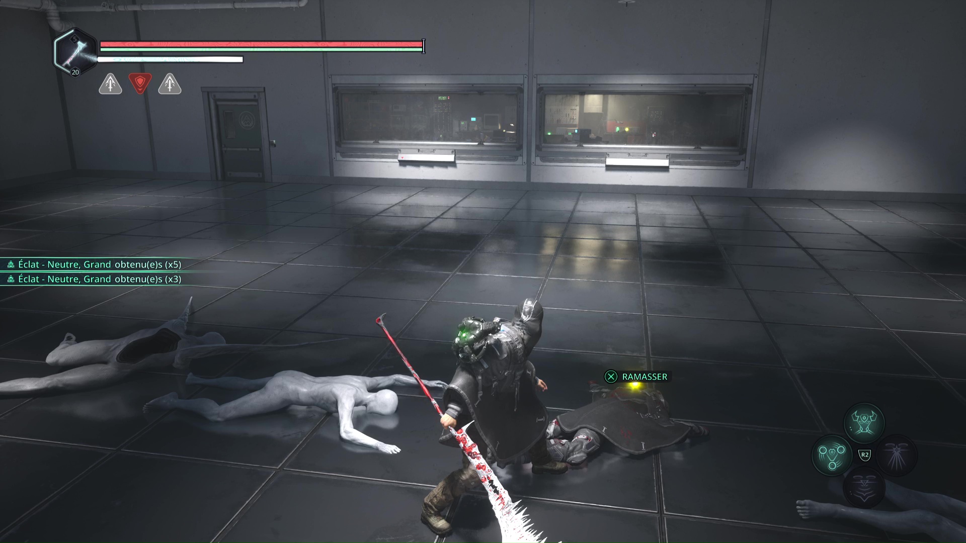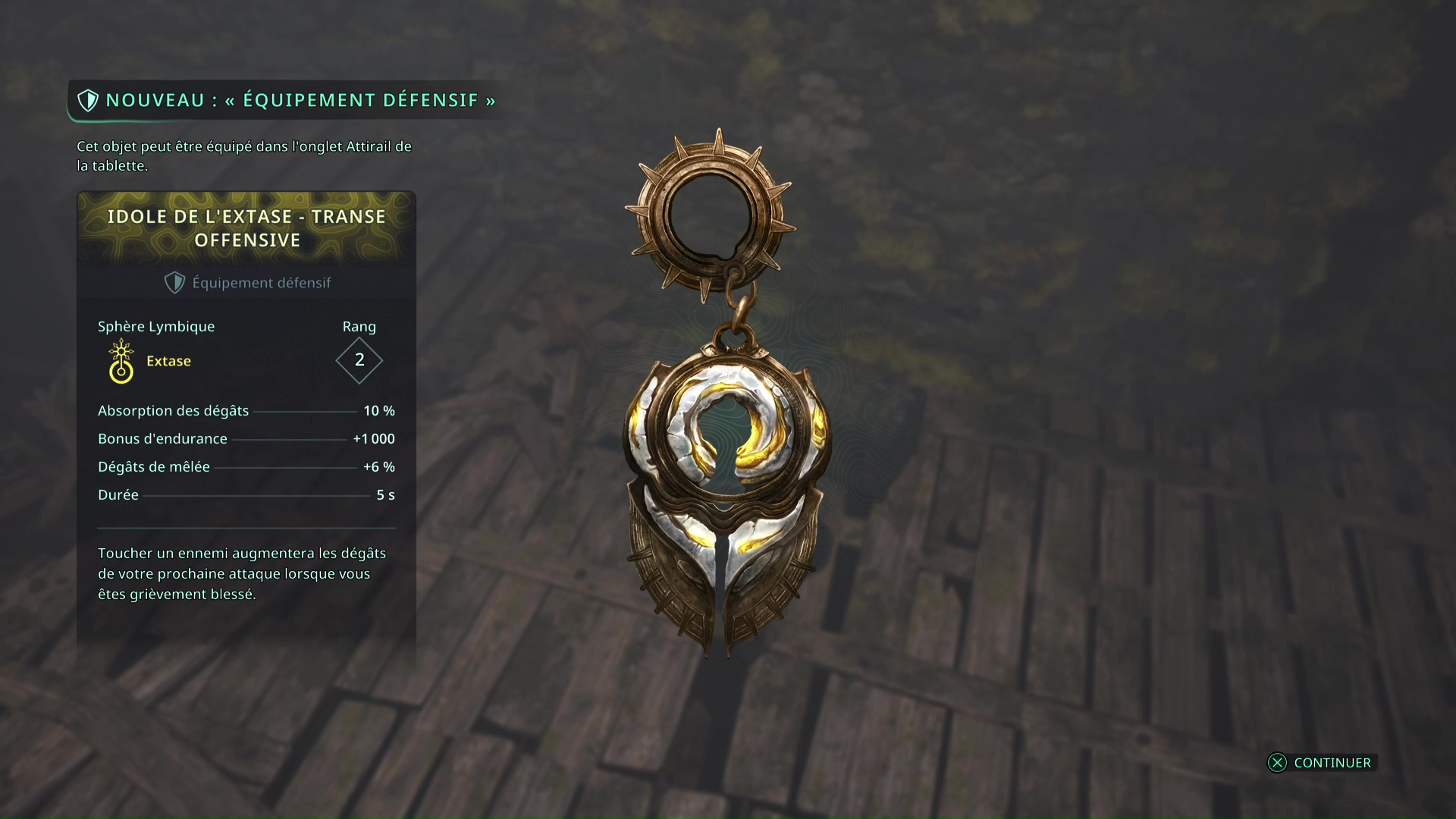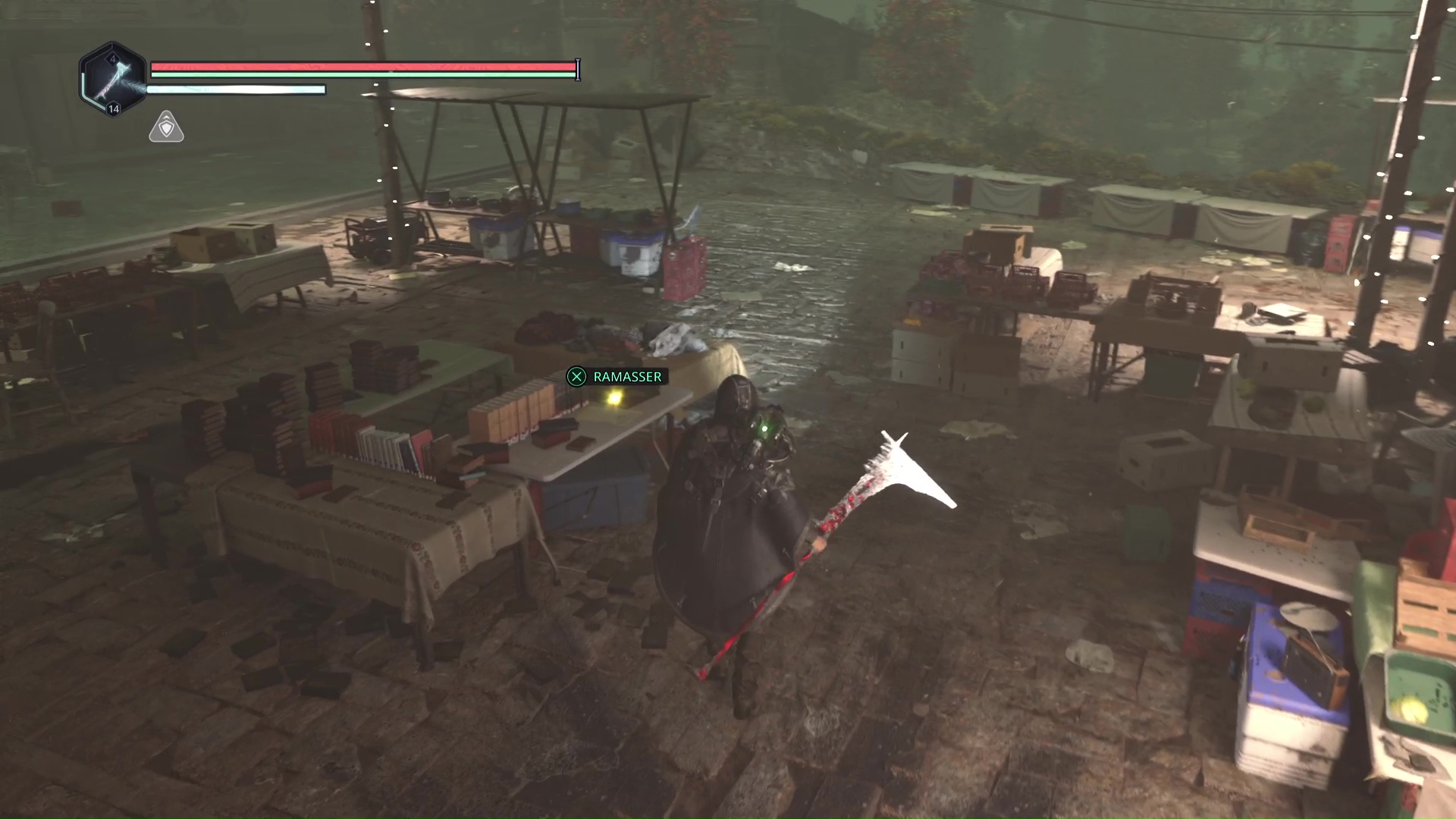 Il va falloir faire le tour par la droite en faisant attention à l’ennemi qui vous tire dessus et à un autre qui ne va pas tarder à vous sauter dessus. Une fois tranquille, ramassez l’objet, il s’agit du Bâton Lymbique – Extase, V.