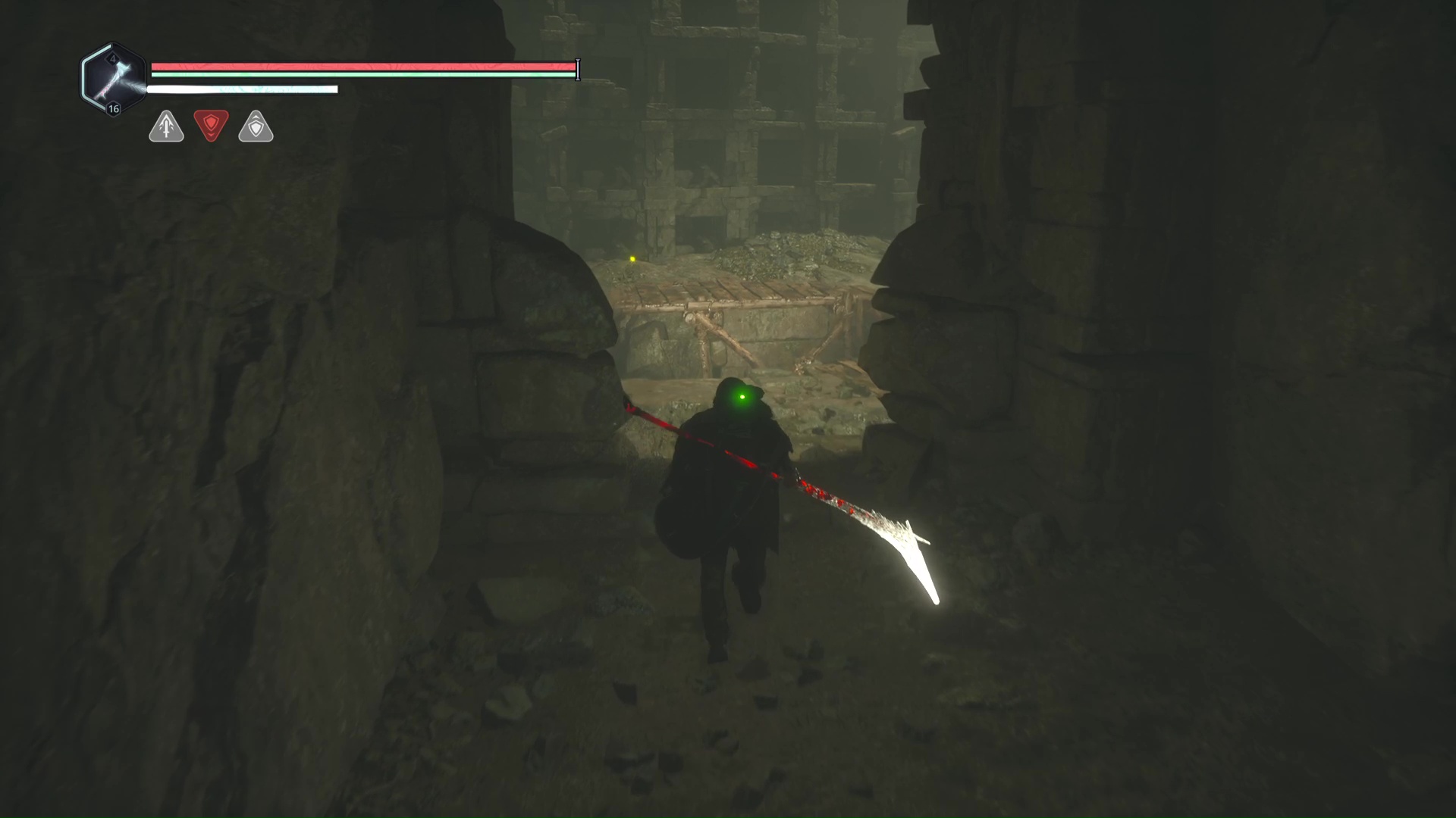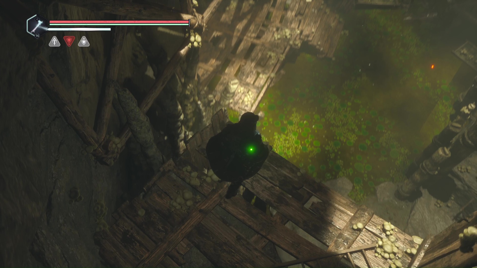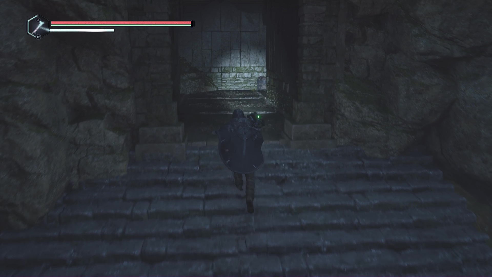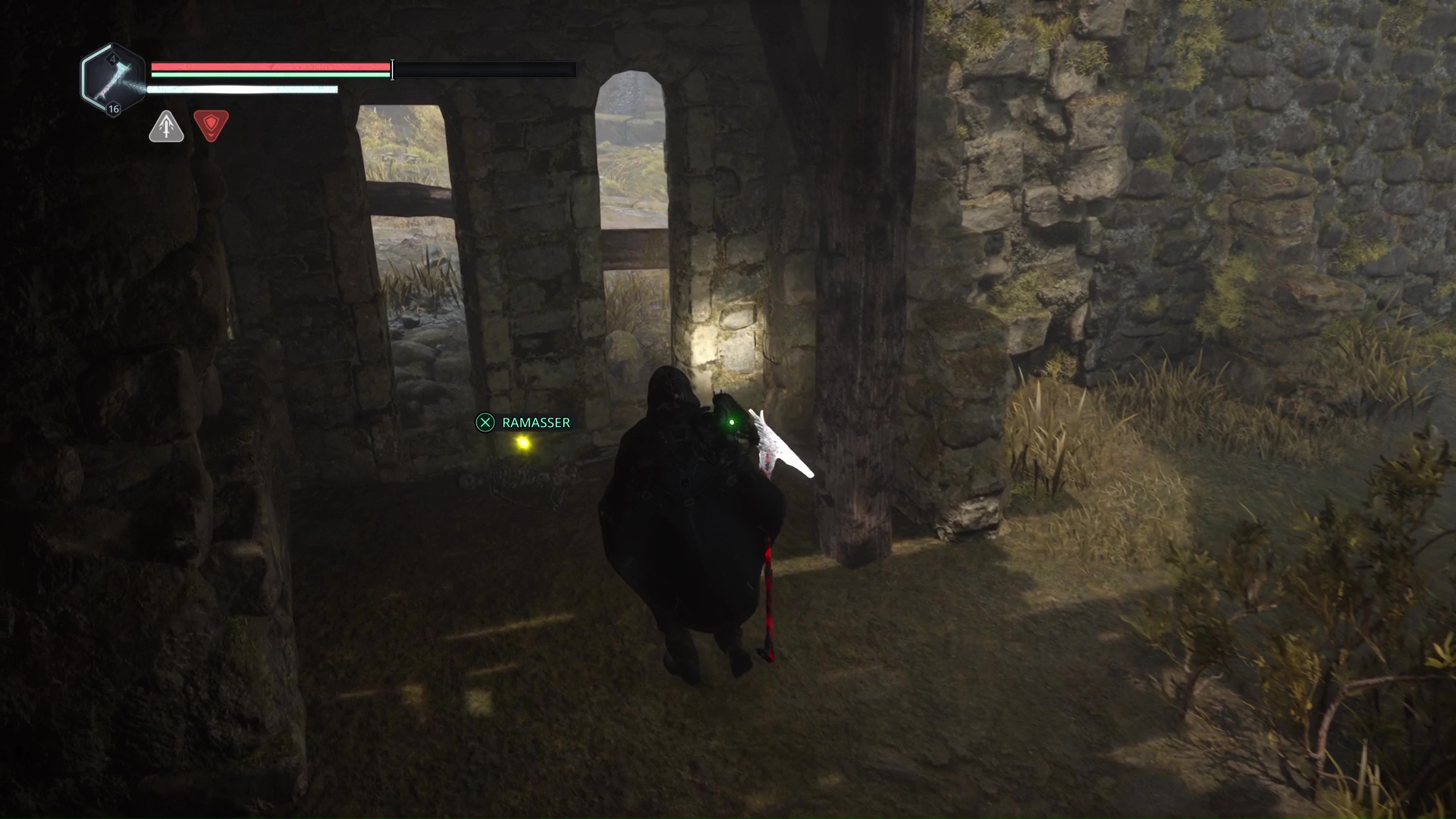 Continuez ensuite le donjon tranquillement jusqu’à atteindre un Hollow Walker protecteur. Battez-le et approchez-vous de l’échaffaudage en bois sur la droite. Montez à l’échelle et, une fois en haut, allez sur la droite. Un autre Hollow Walker portecteur viendra vous embêter.