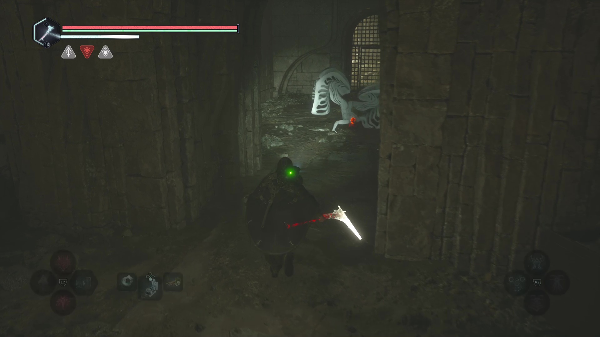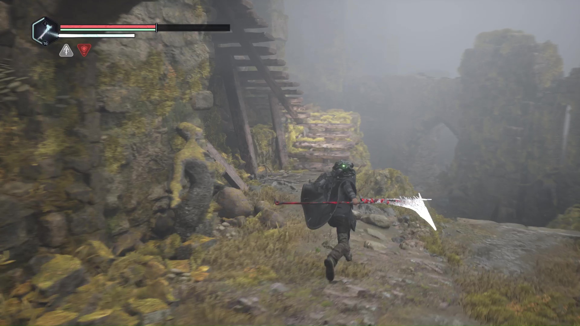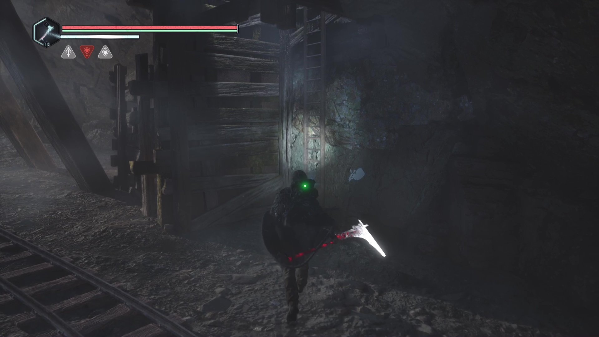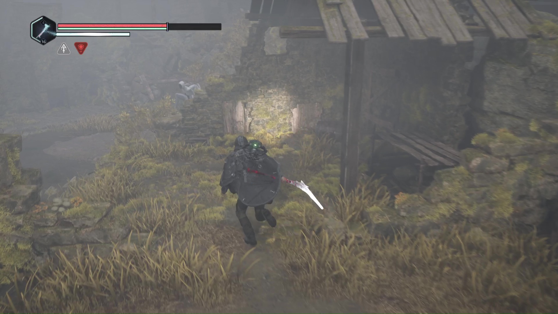Continuez ensuite le donjon tranquillement jusqu’à atteindre un Hollow Walker protecteur. Battez-le et approchez-vous de l’échaffaudage en bois sur la droite. Montez à l’échelle et, une fois en haut, allez sur la droite. Un autre Hollow Walker portecteur viendra vous embêter.