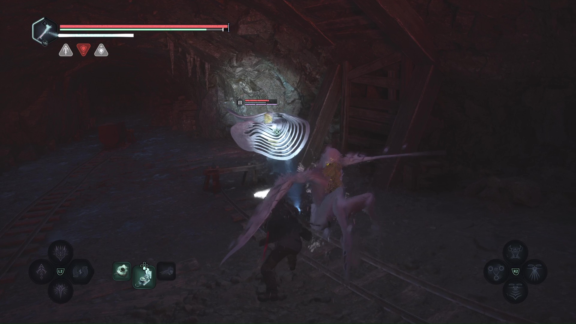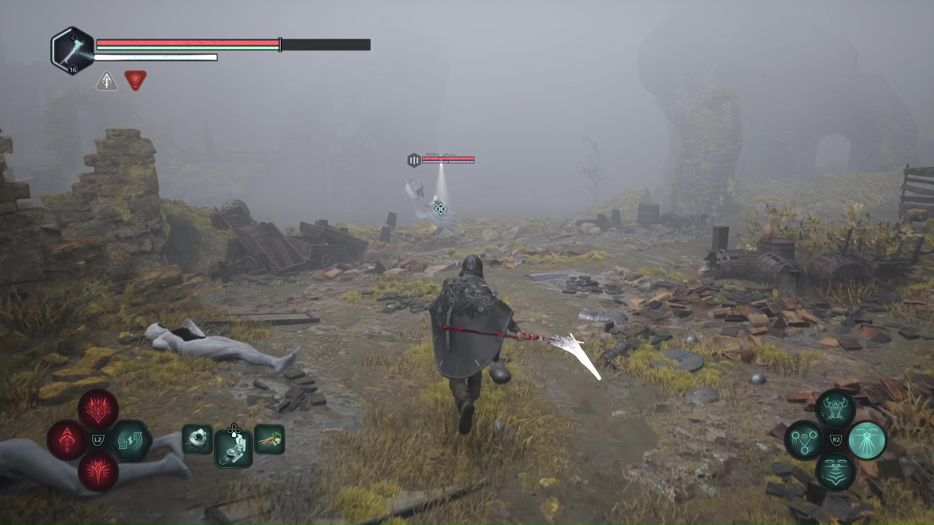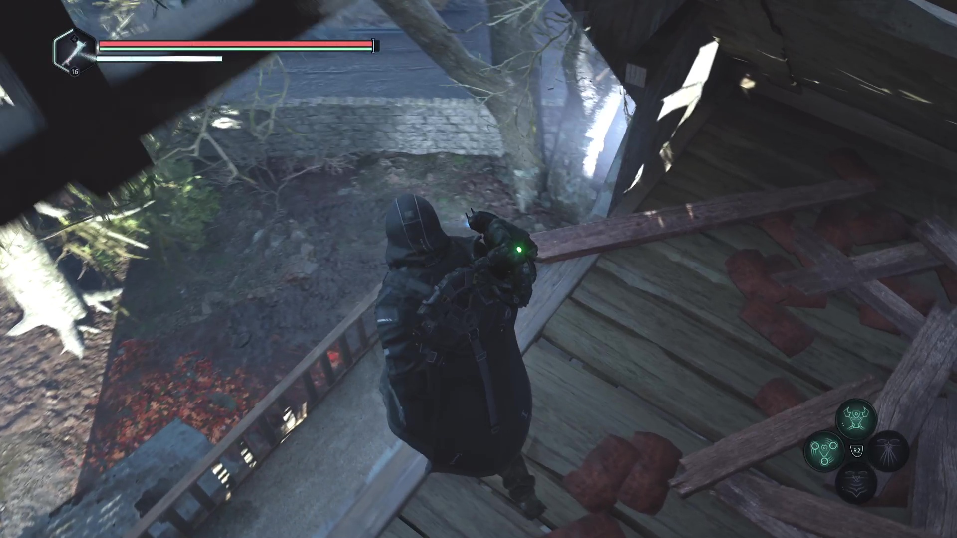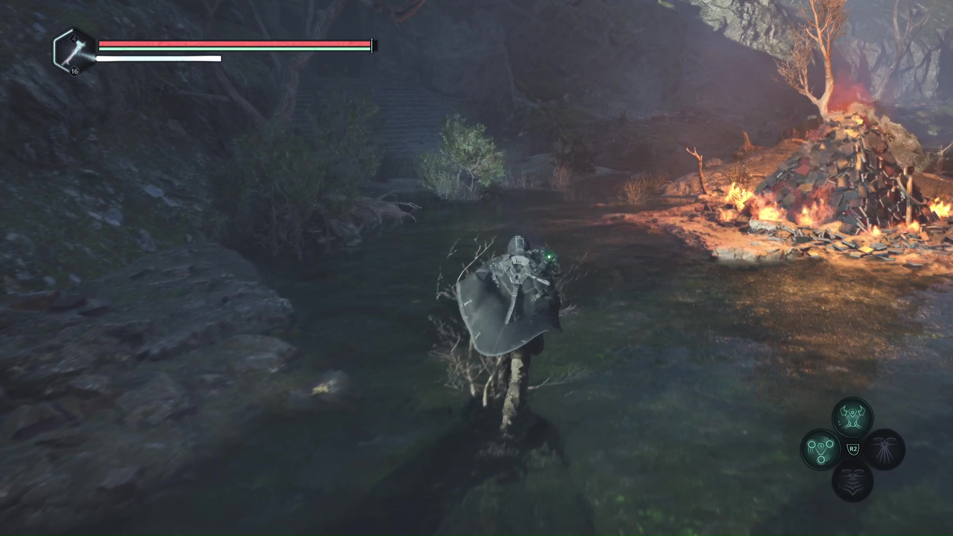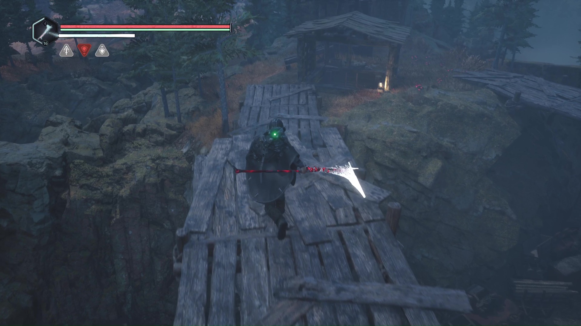 Continuez ensuite le donjon tranquillement jusqu’à atteindre un Hollow Walker protecteur. Battez-le et approchez-vous de l’échaffaudage en bois sur la droite. Montez à l’échelle et, une fois en haut, allez sur la droite. Un autre Hollow Walker portecteur viendra vous embêter.
