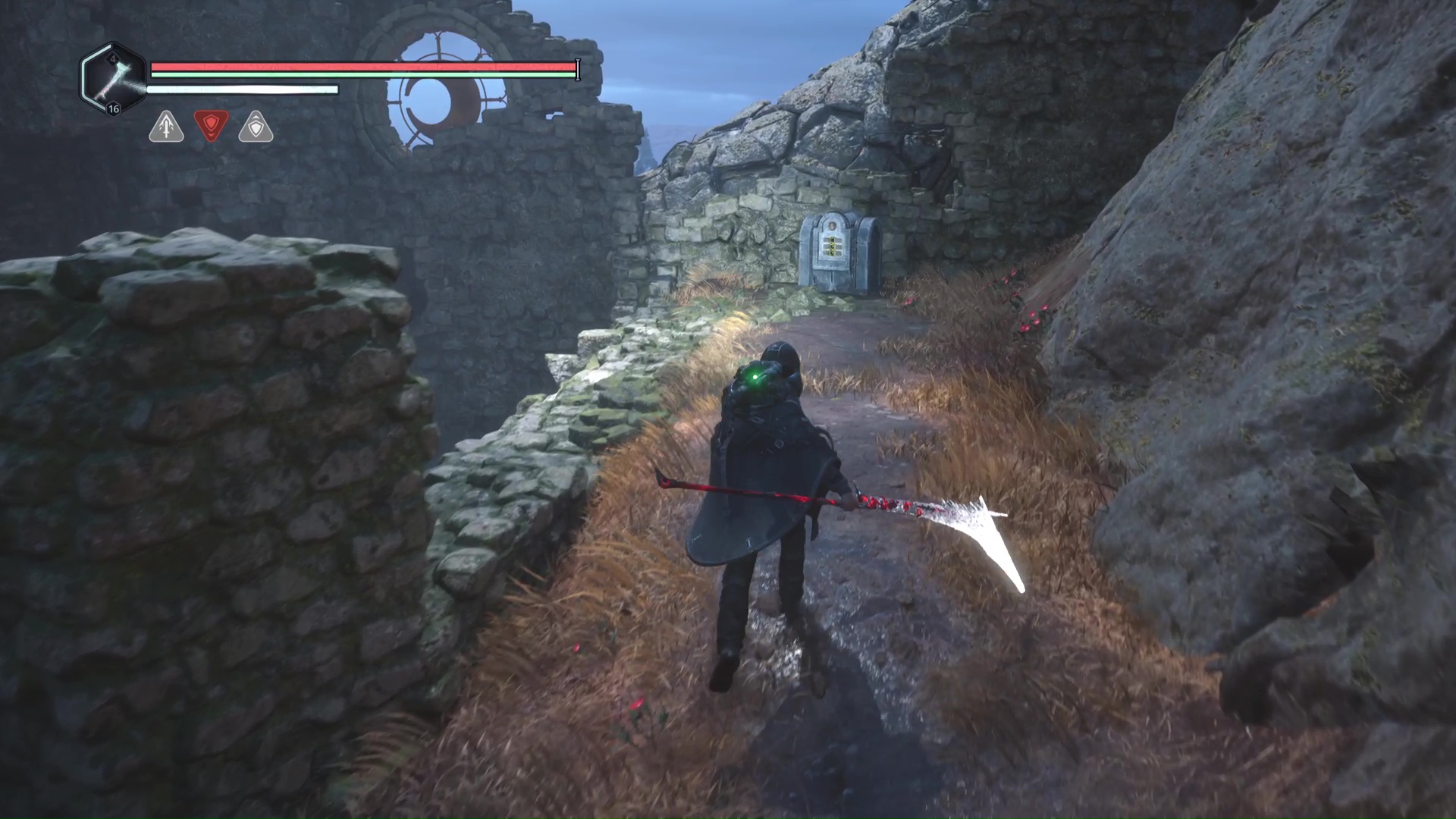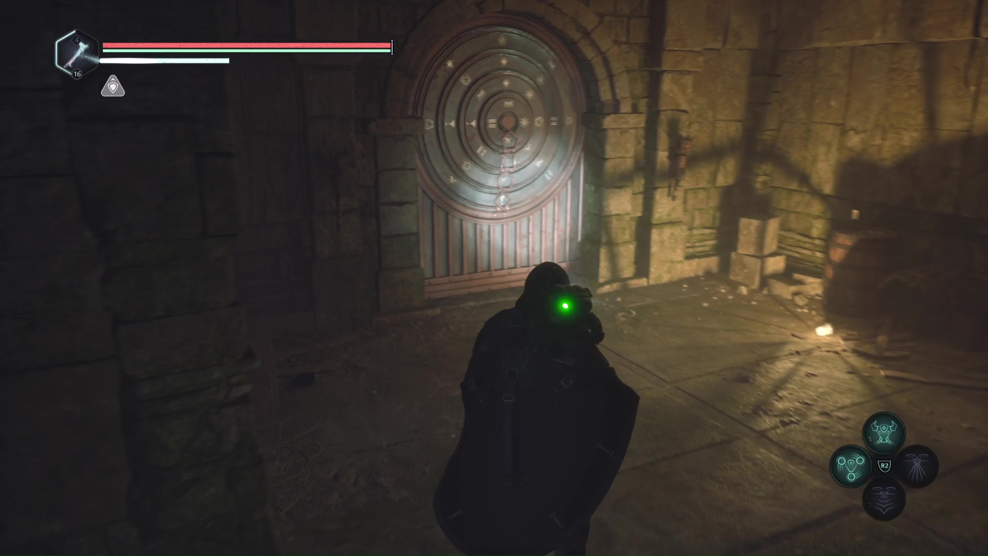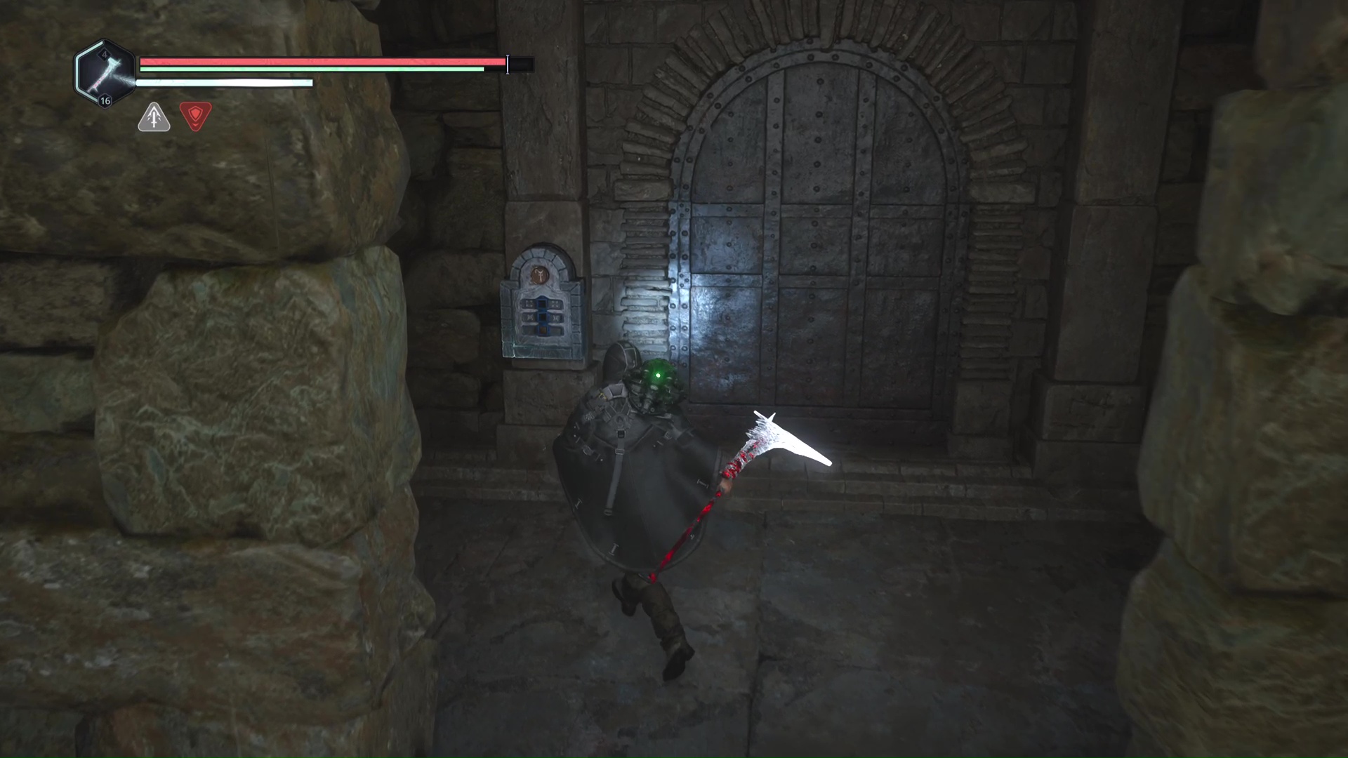 Dans le souterrain de Senedra, vous finirez par ramasser des doubles haches niveau 1. Grimpez quelques marches, battez le Hollow Walker devant vous et tournez la tête sur la gauche. Une porte est verrouillée et ne s’ouvrira que grâce à deux médaillons.